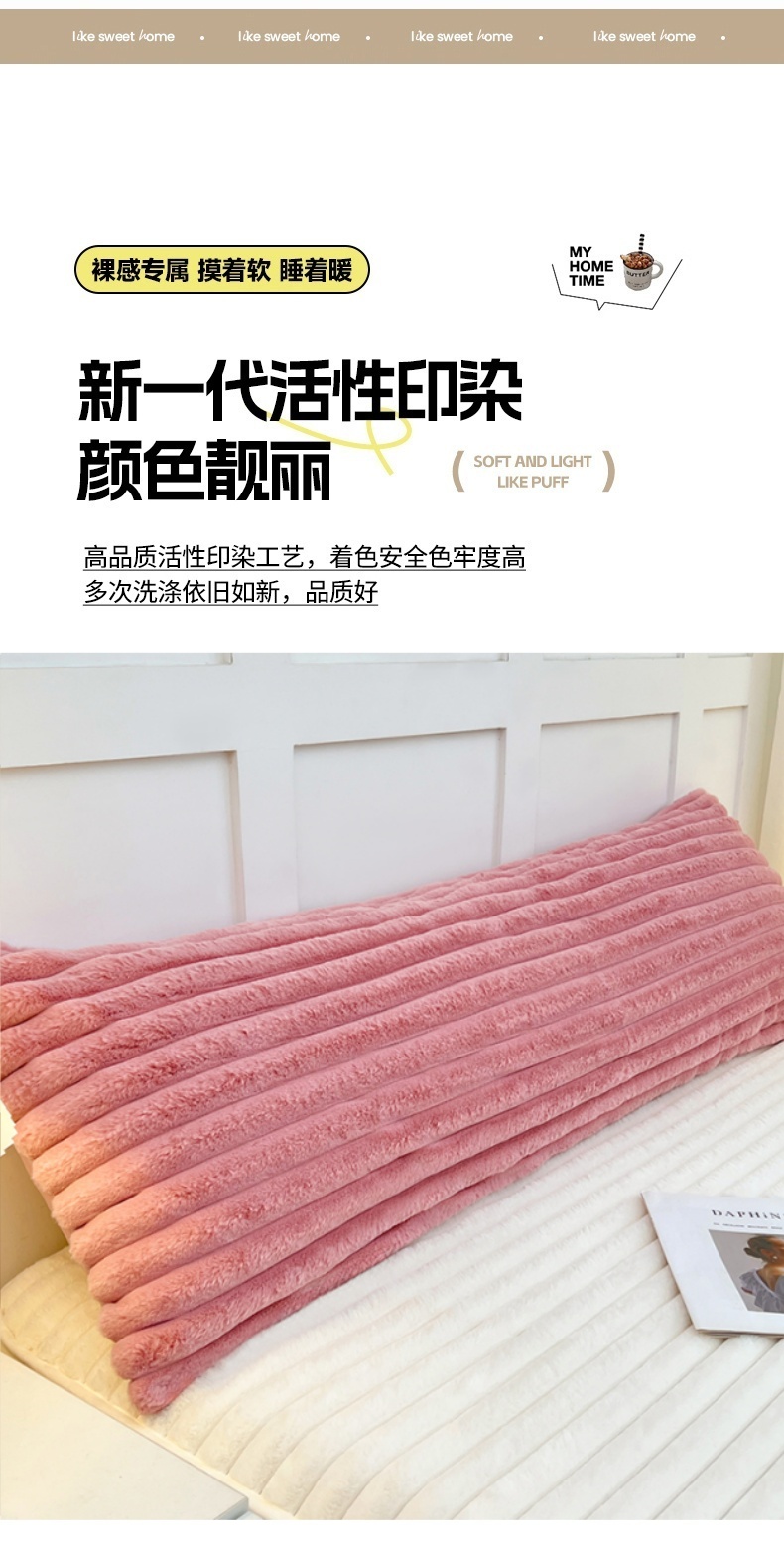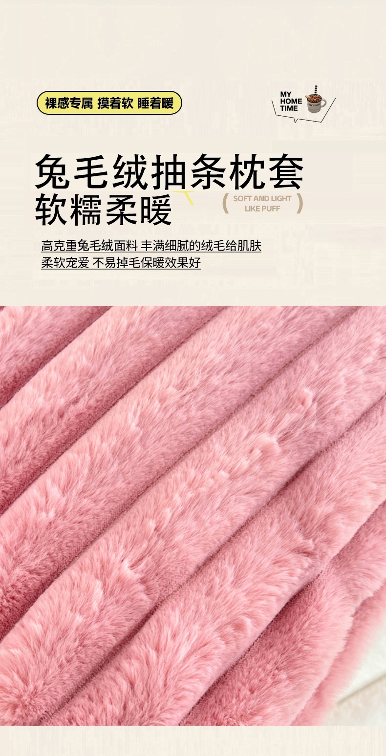 • 91家纺网 家纺一手货源 找家纺 圣比熊 2025新款兔毛绒双人枕套牛奶绒加长法兰绒枕芯套法莱绒枕头套-抽条 兔毛绒抽条-云梦粉
