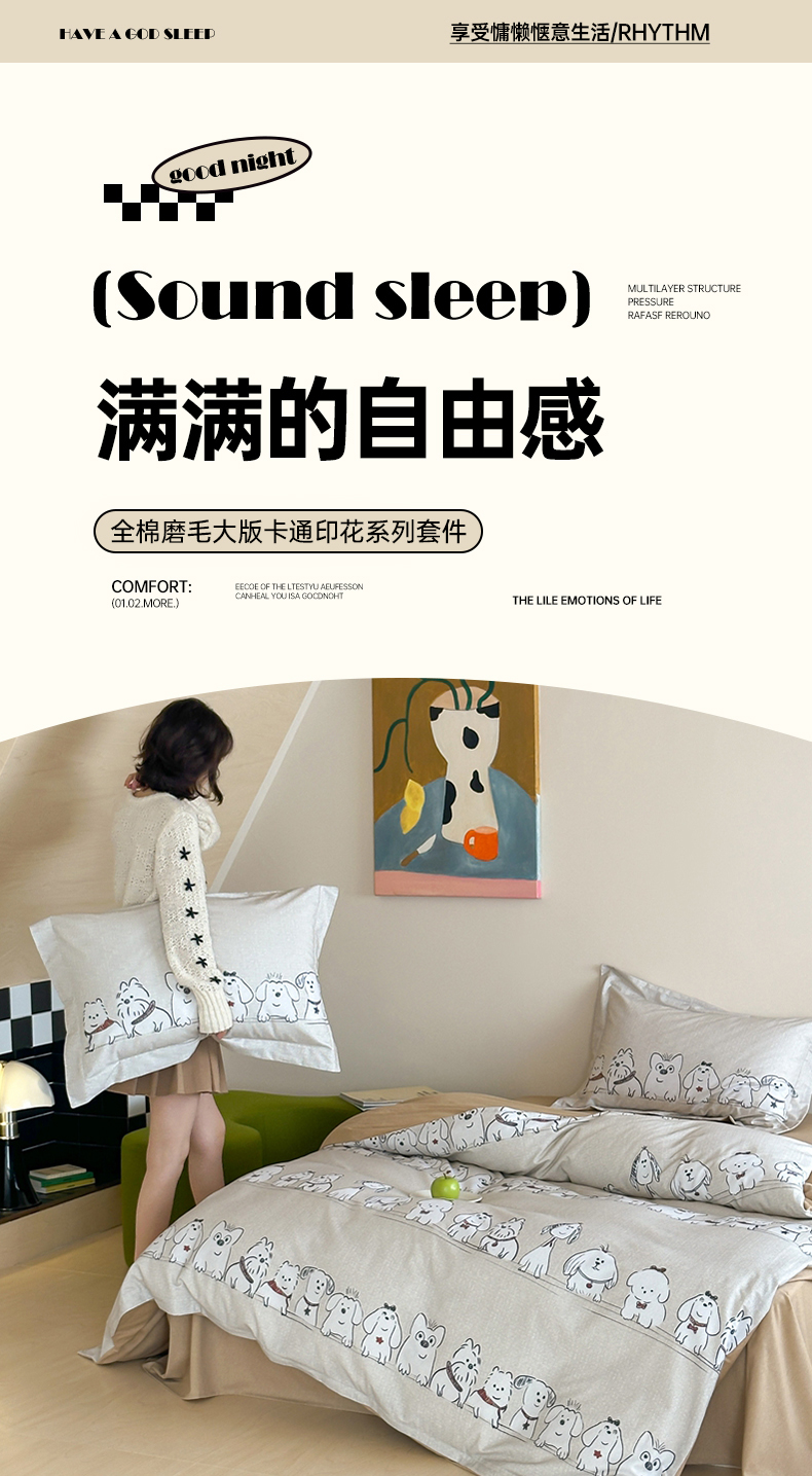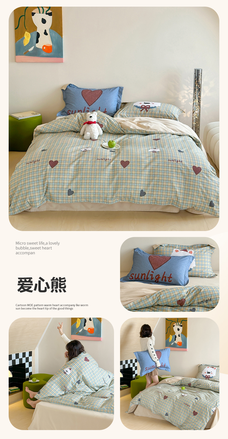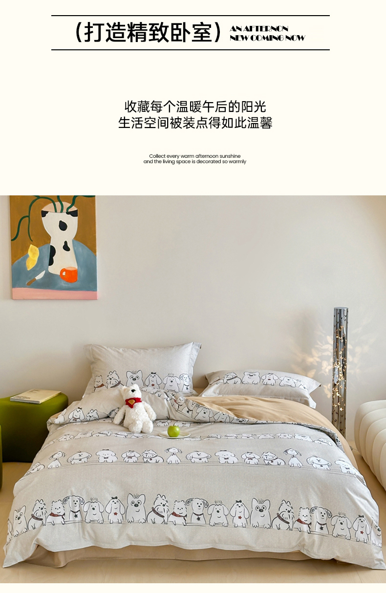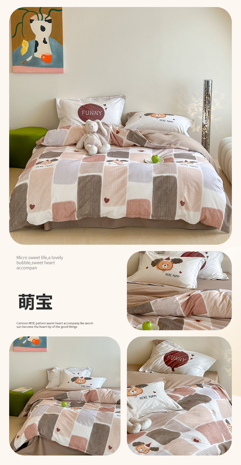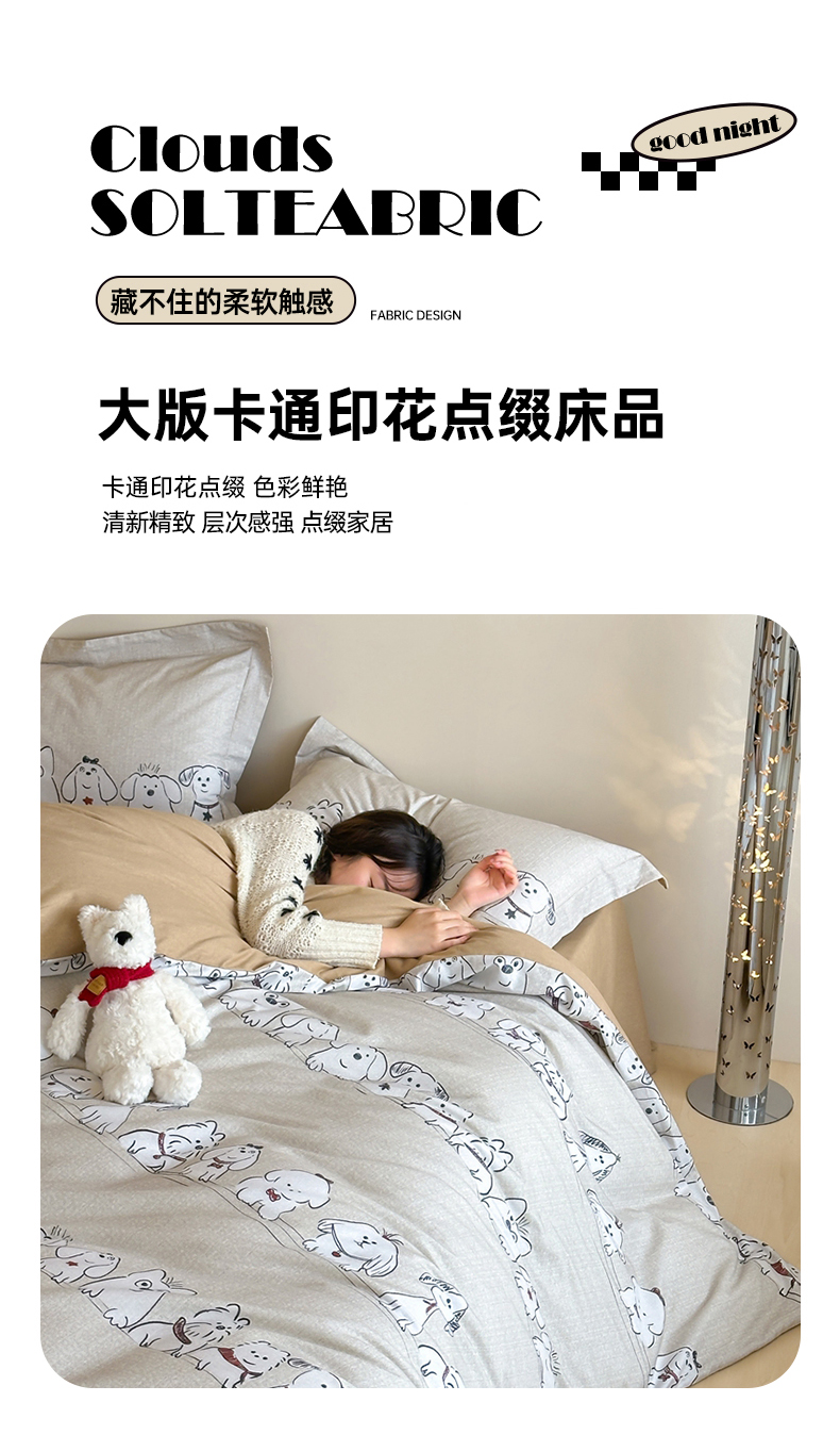 (总)时年家纺 2025新款全棉磨毛大版卡通印花系列套件,趣味熊,爱心熊,安静小象,波点兔,可爱熊宝,萌宝,奶油玩偶,小奥汀,慵懒猫咪