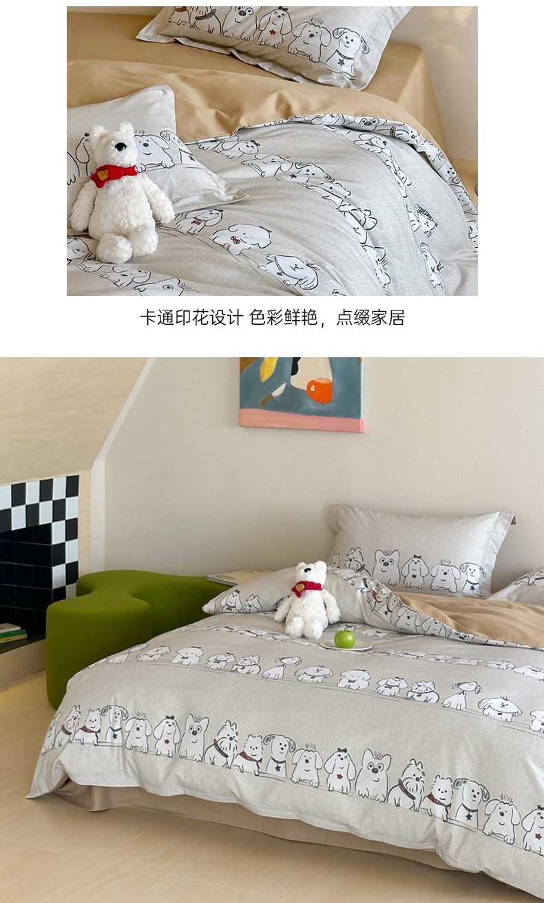 (总)时年 2021新款40S全棉印花四件套小可爱系列,贝尔先生,彩虹云朵,花西子,欢乐字母,金刚,奇思妙想,气球皮皮,树林生活