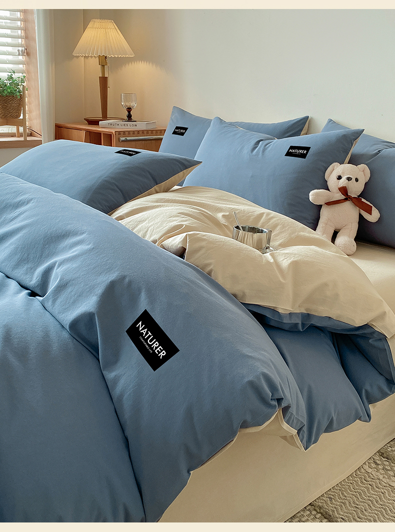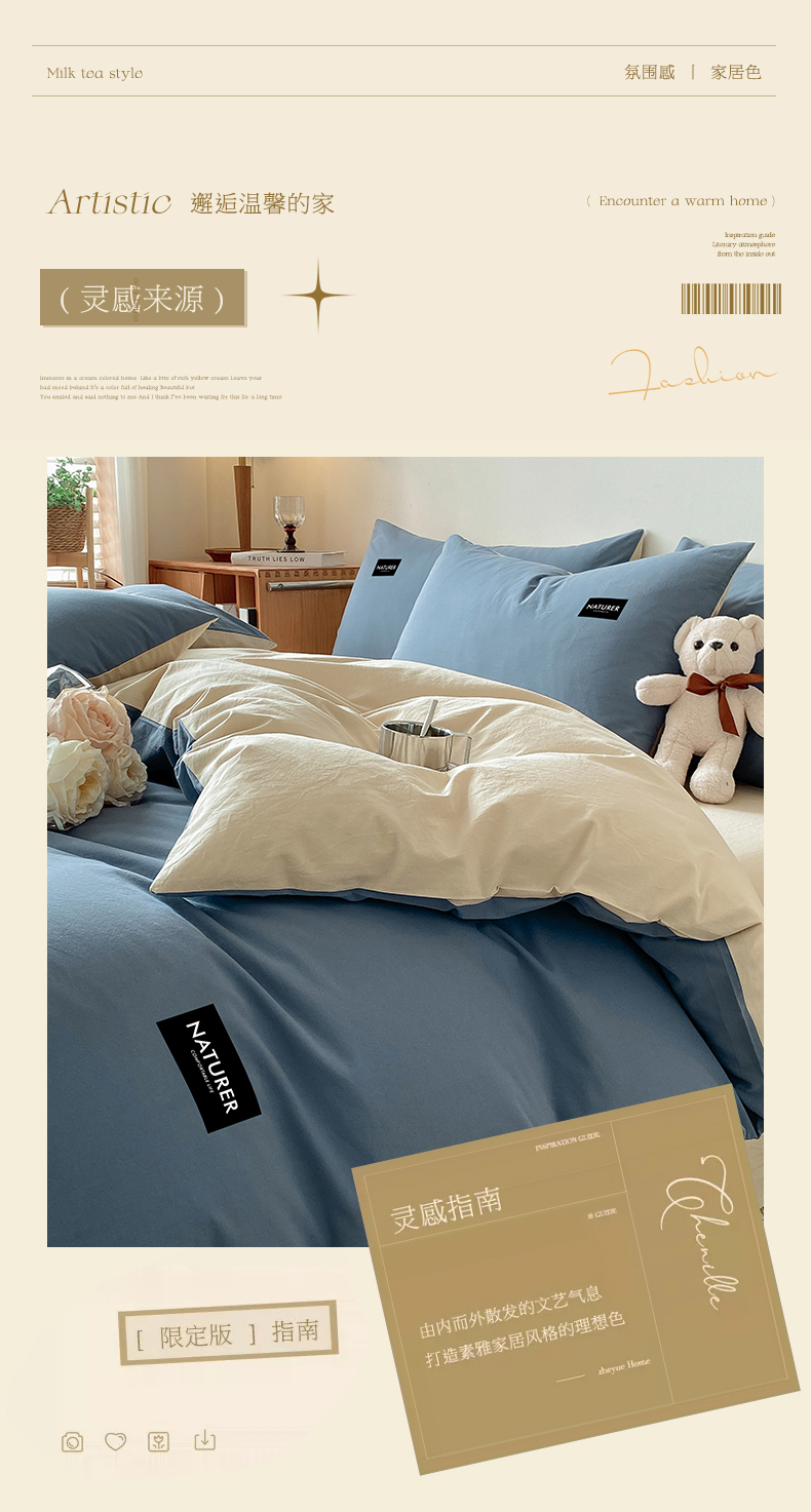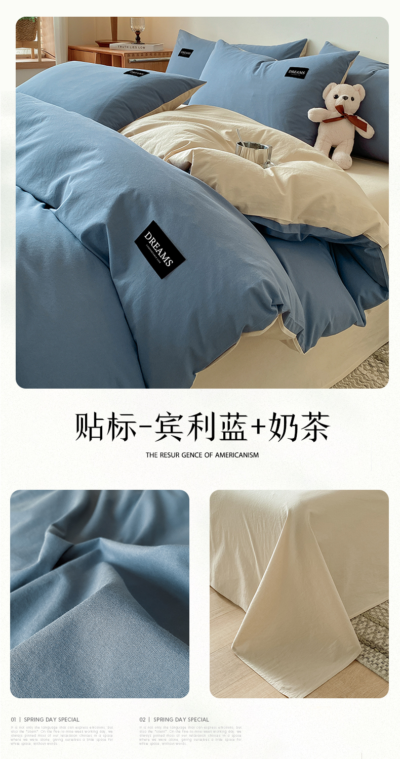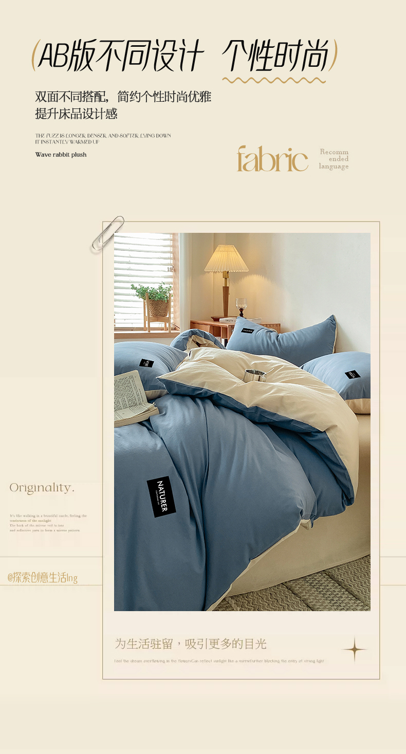 商品名称:(总)澜妃 2025新款13372纯色双拼全棉纯棉四件套