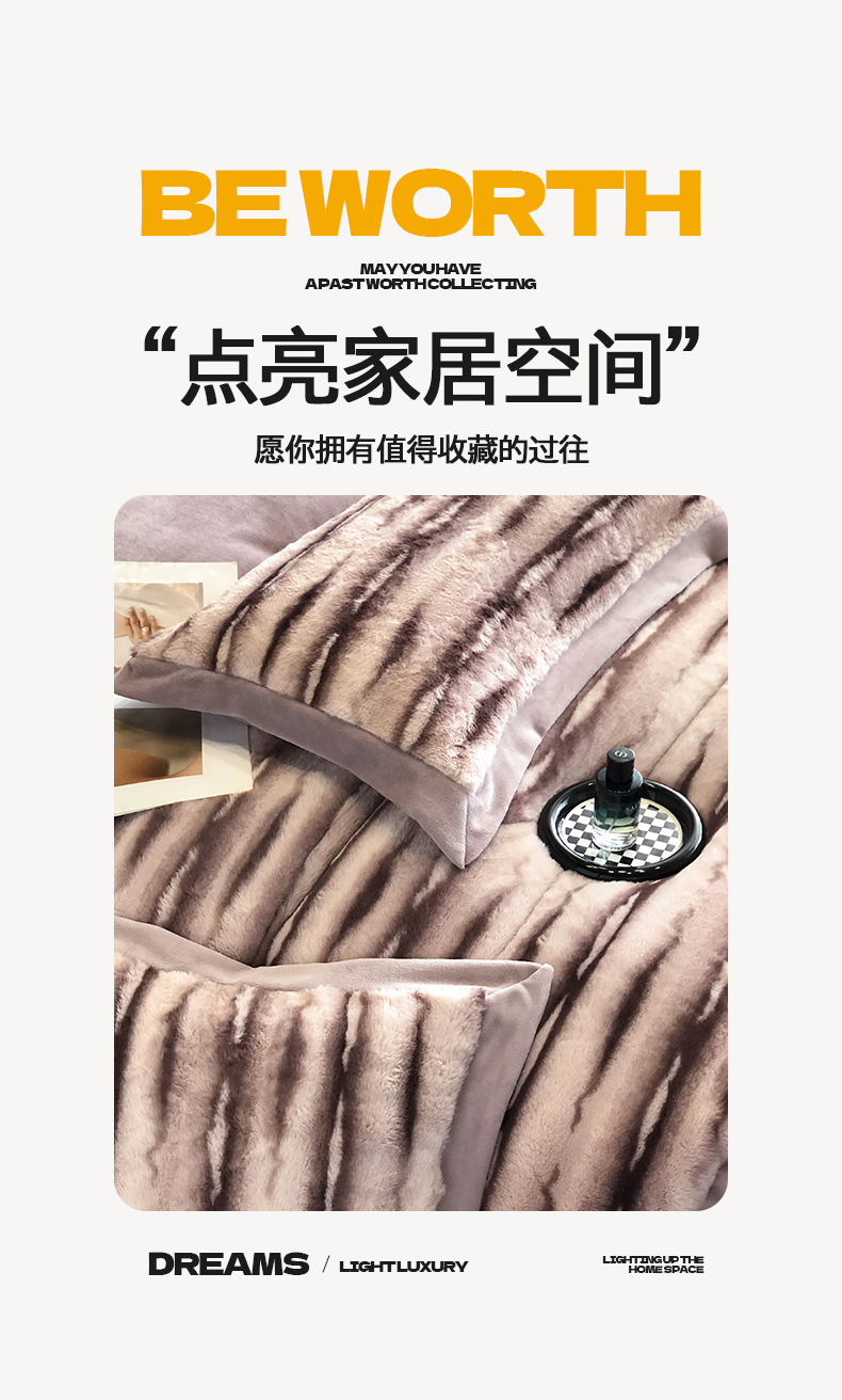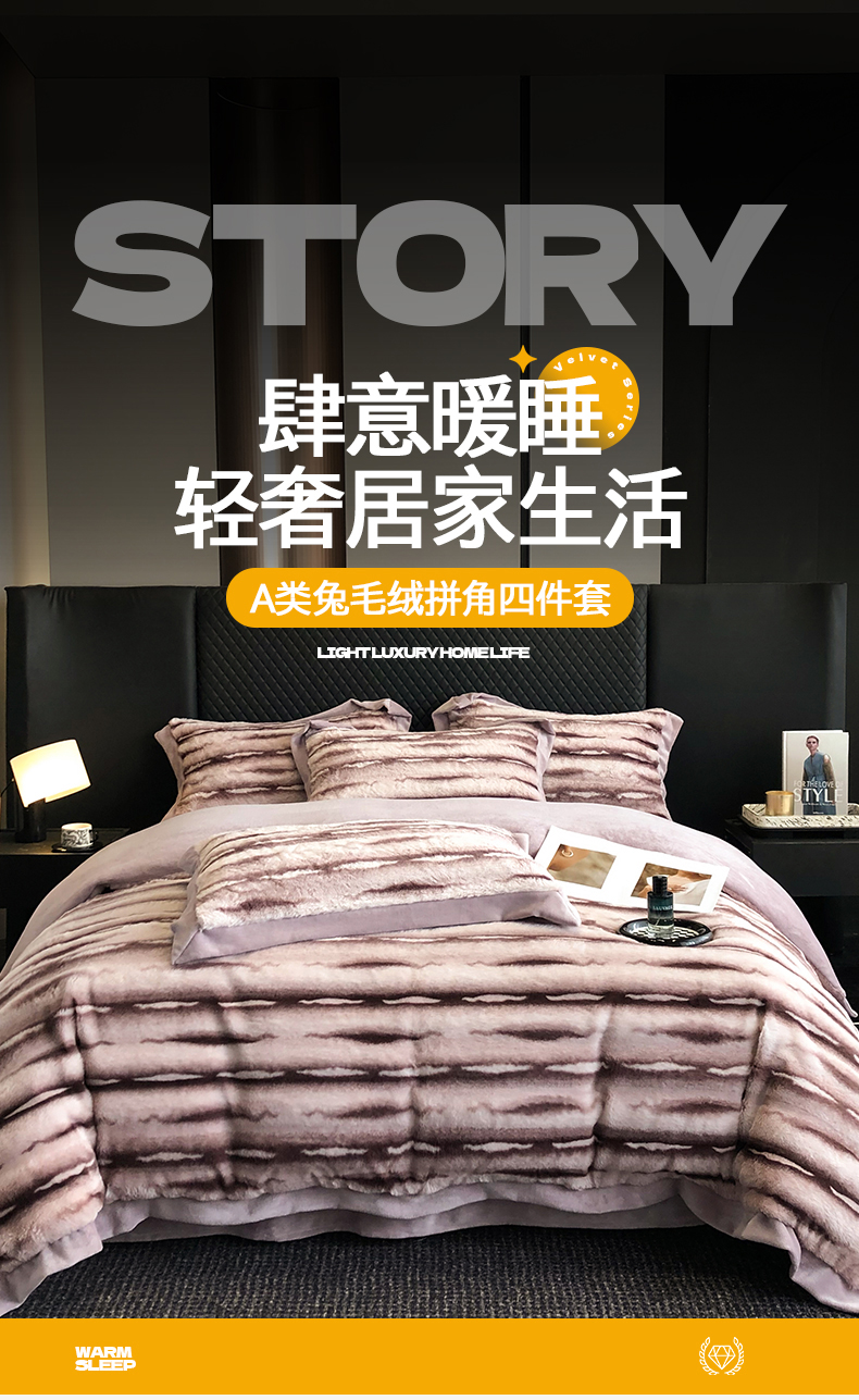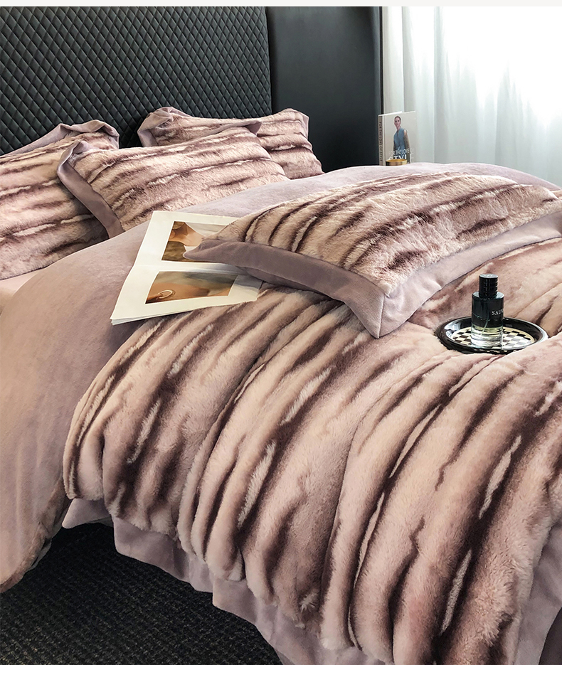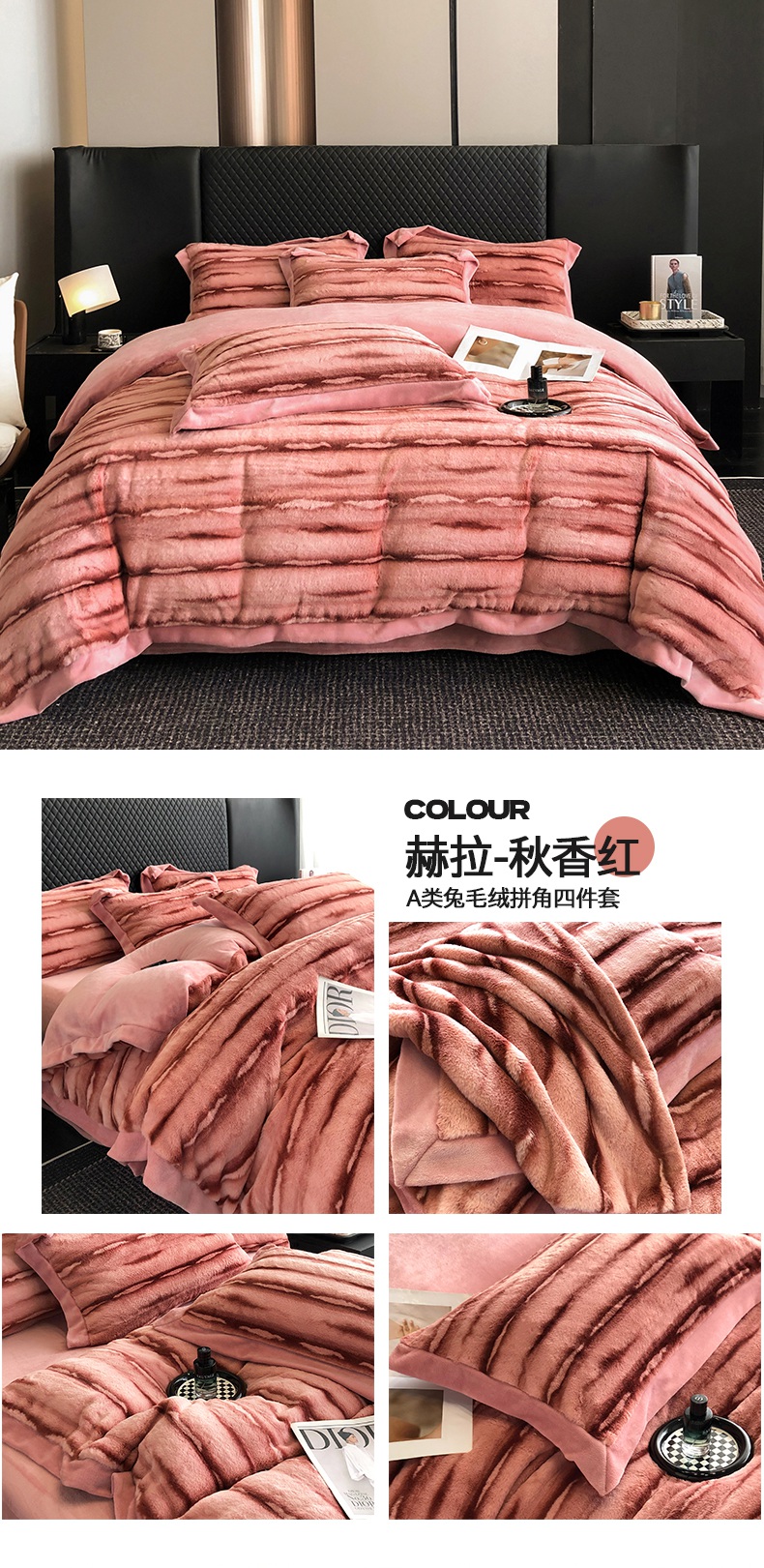 懒猫家纺 2025新款兔毛绒拼角四件套-赫拉 赫拉-玉颜紫