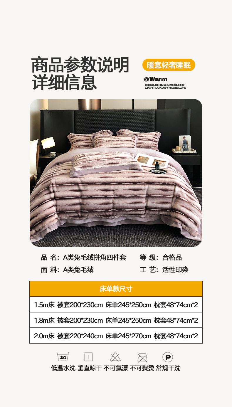 商品名称:懒猫家纺 2025新款兔毛绒拼角四件套-赫拉 赫拉-玉颜紫