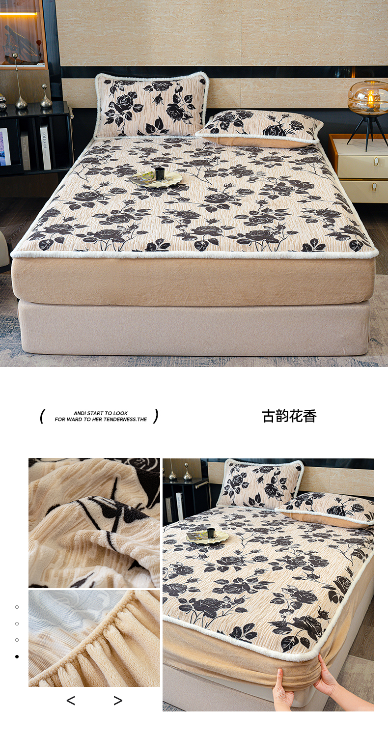 • 91家纺网 家纺一手货源 找家纺 鹿辉家居(原吉欧力) 2025新款牛奶绒雕花兔毛绒包边床笠 碎花漫语