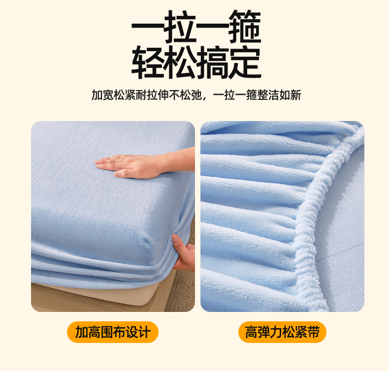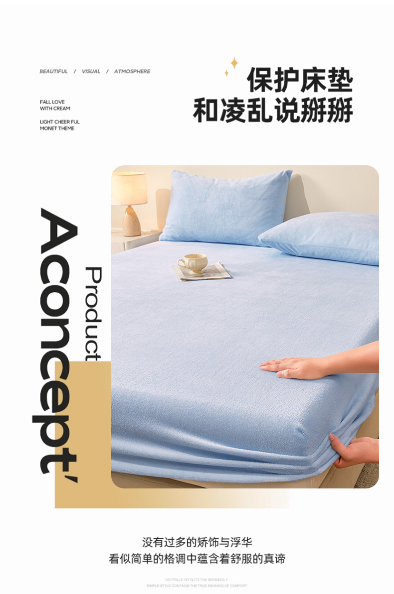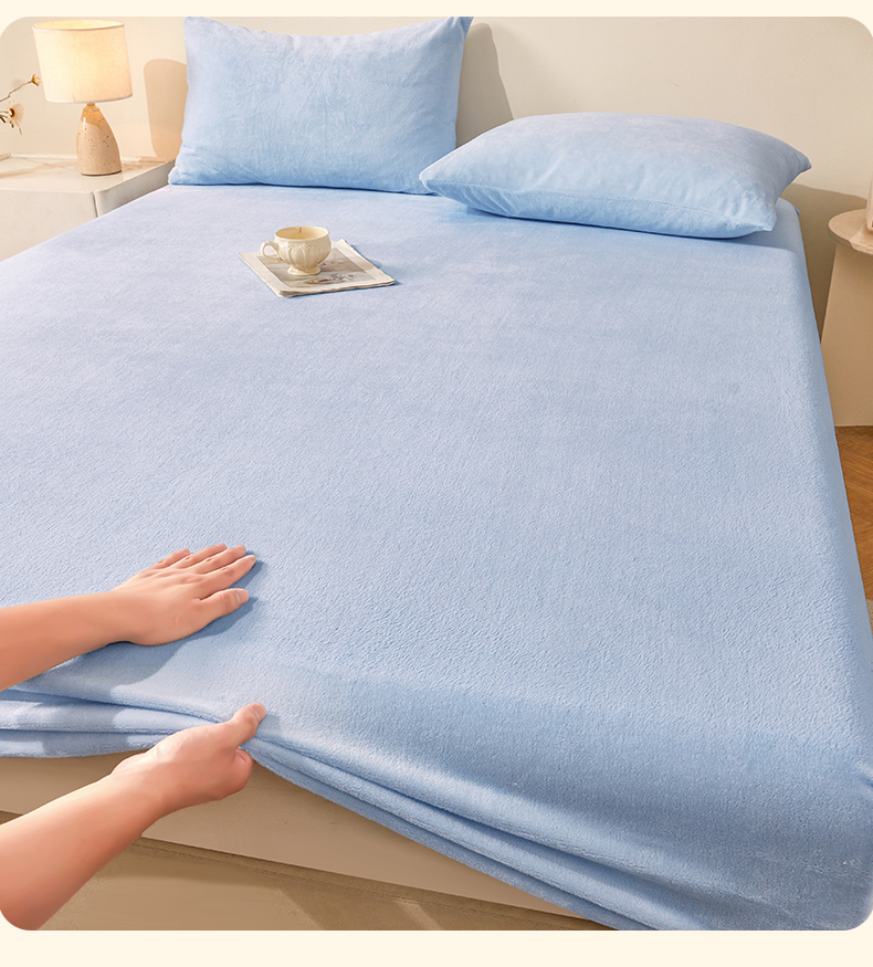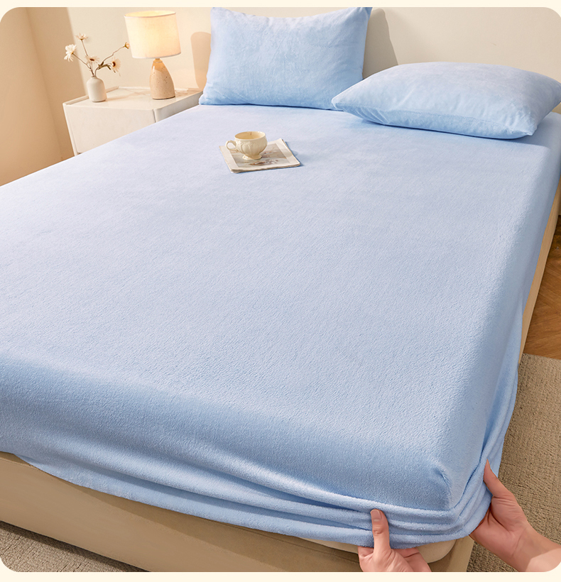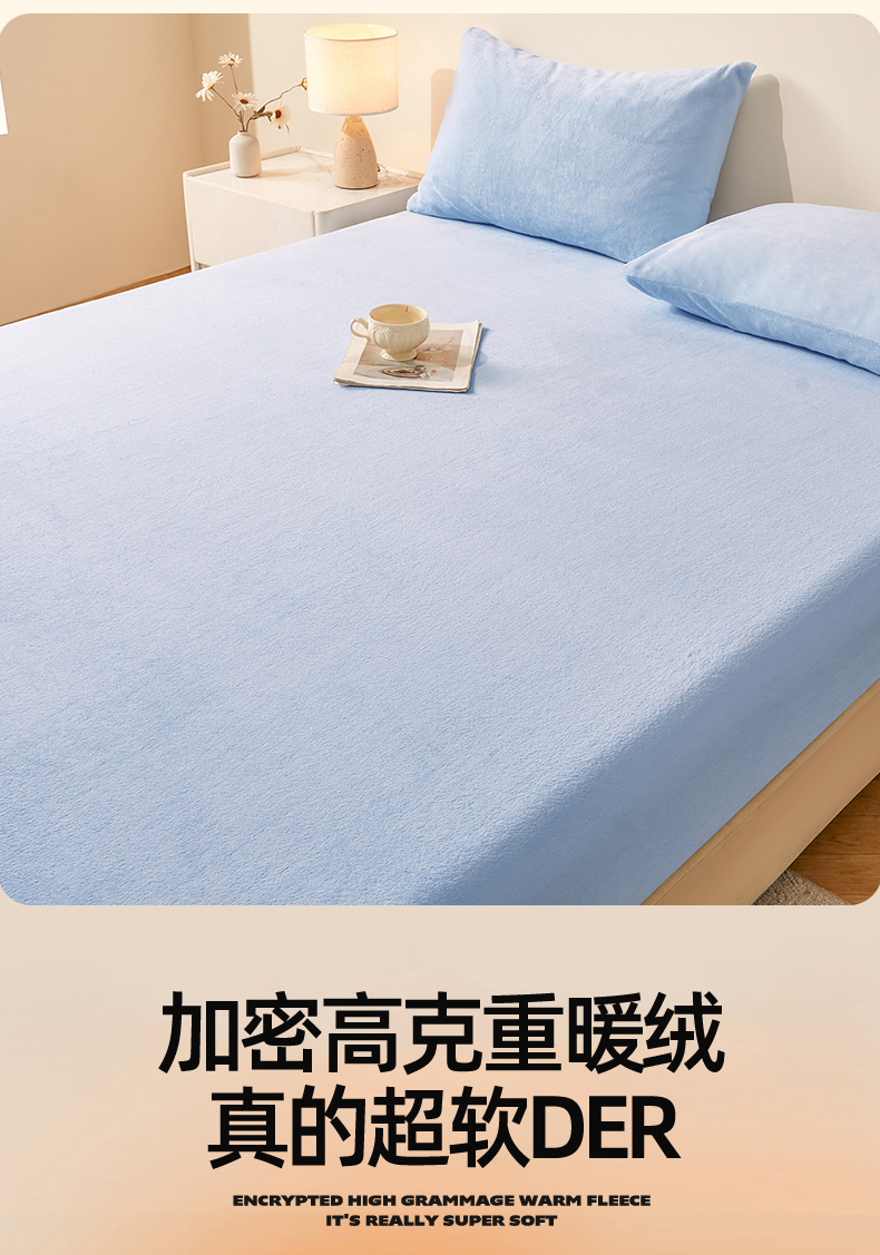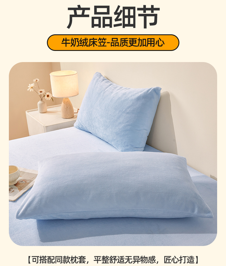 商品名称:优眠坊 2025新款单层高克重牛奶绒纯色床笠 星蓝
