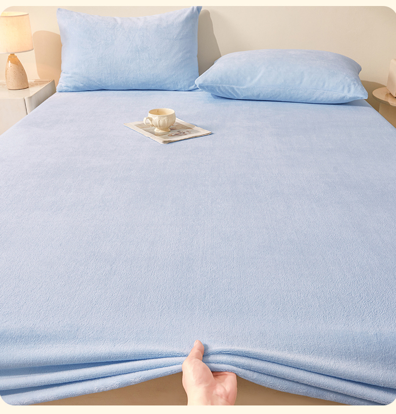 优眠坊 2025新款单层高克重牛奶绒纯色床笠 星蓝