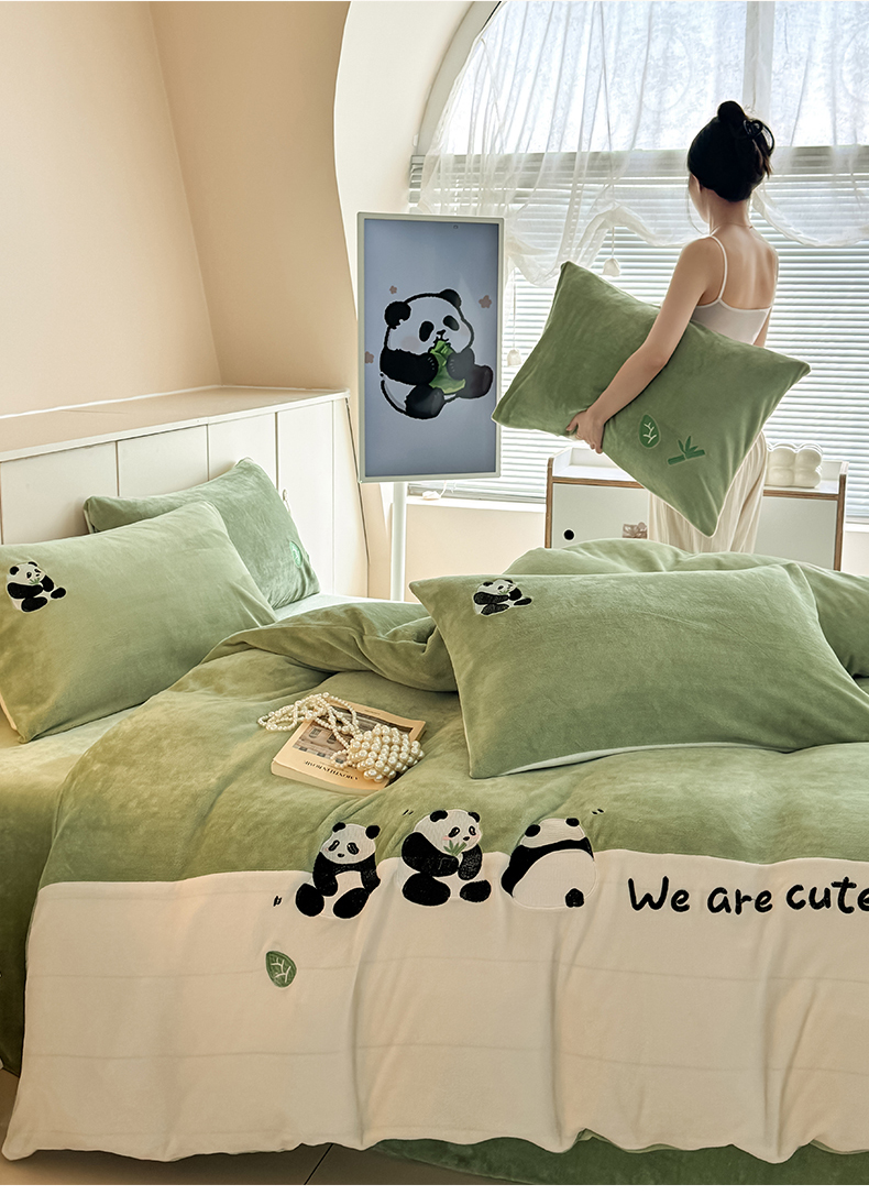 (总)懒猫家纺 2025新款牛奶绒刺绣四件套-胖达