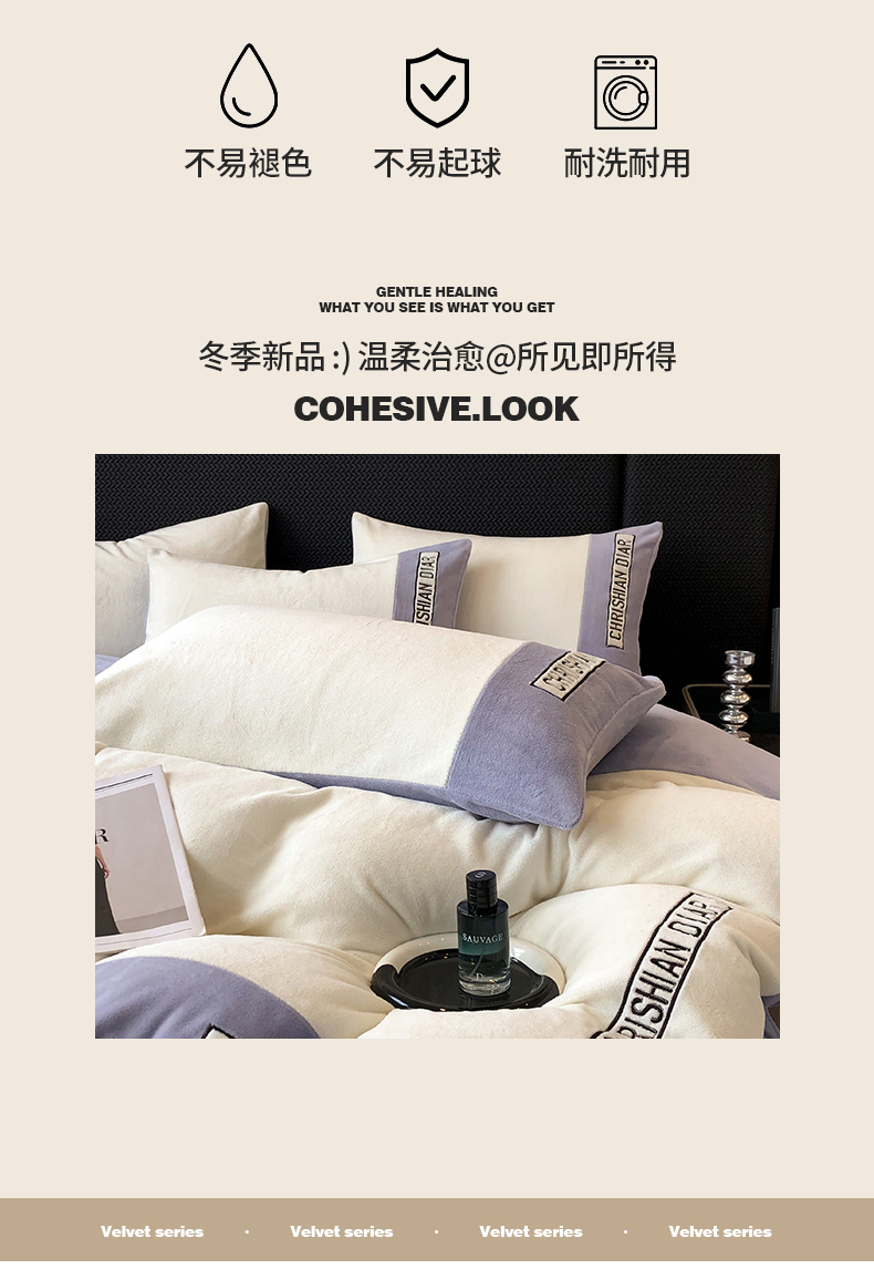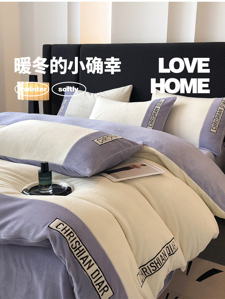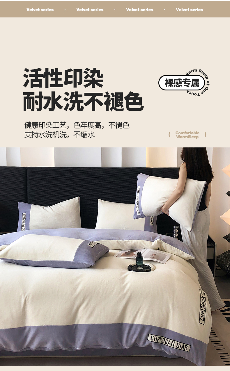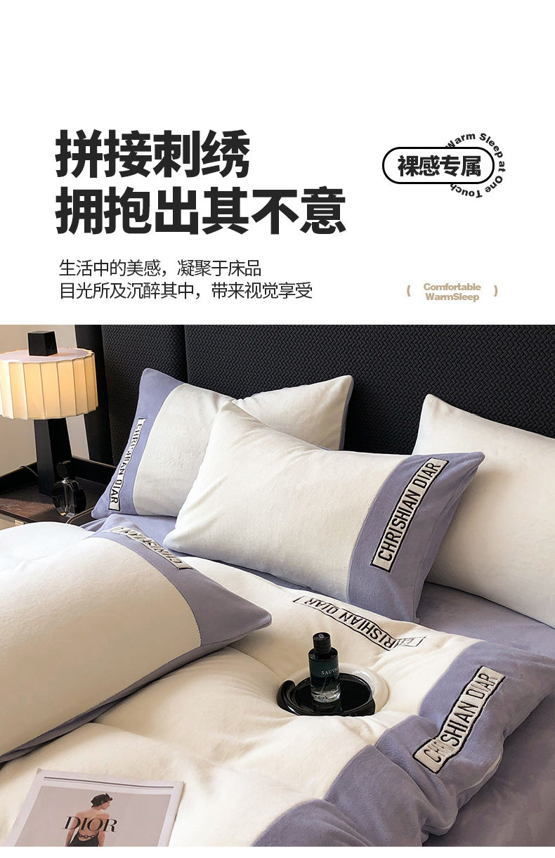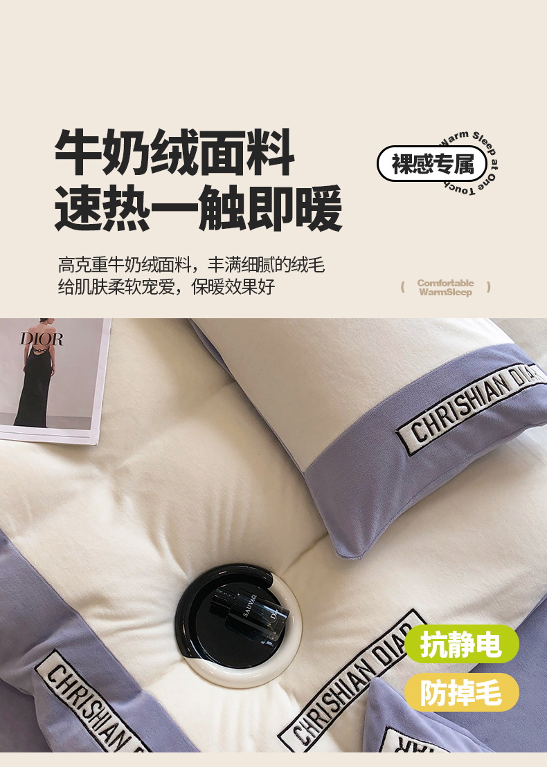(总)懒猫家纺 2025新款亲肤舒适牛奶绒四件套-可可小姐系列,可可小姐-瓷白,可可小姐-水粉