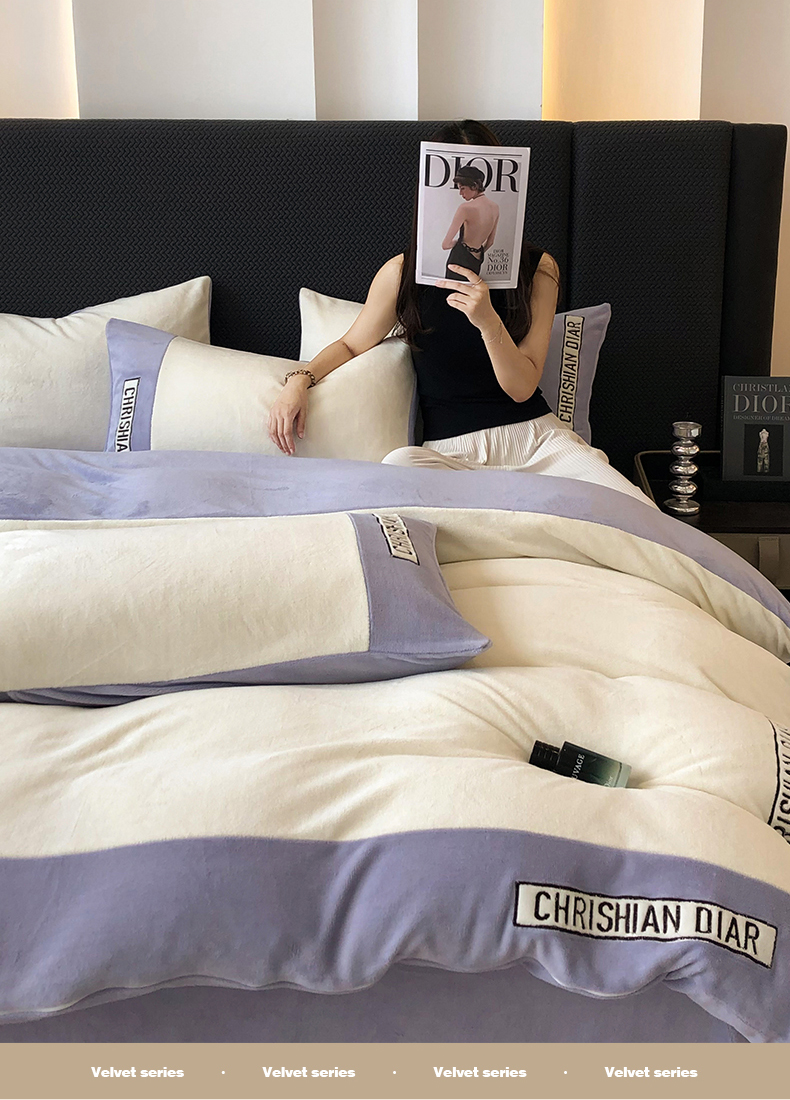懒猫家纺 2025新款刺绣牛奶绒四件套-妮可 奶油-紫