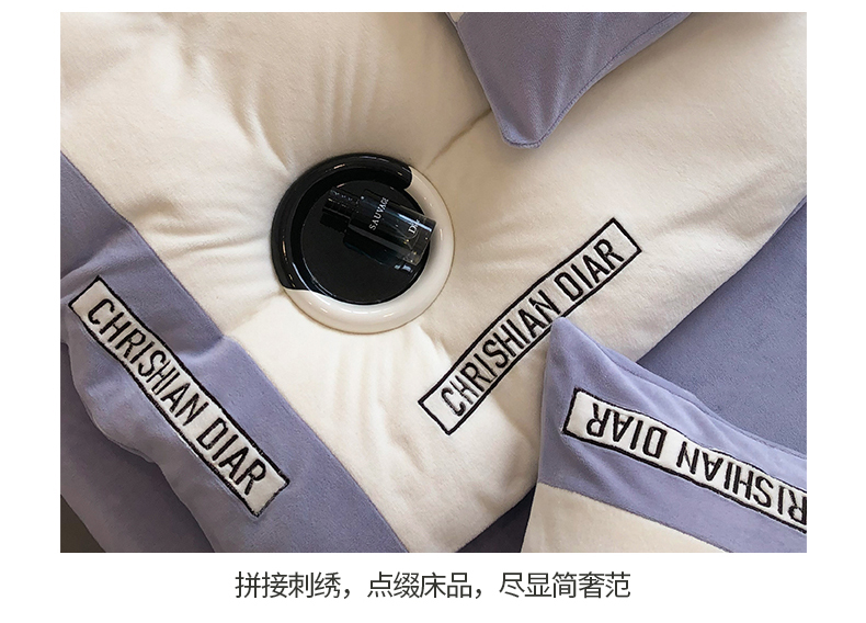 商品名称:懒猫家纺 2025新款刺绣牛奶绒四件套-妮可 奶油-紫