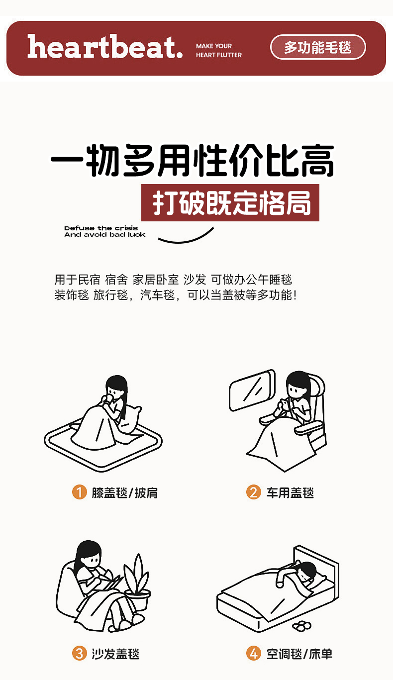 商品名称:佰亿莱 2026新款卡通萌趣半边绒毛毯 棋盘格