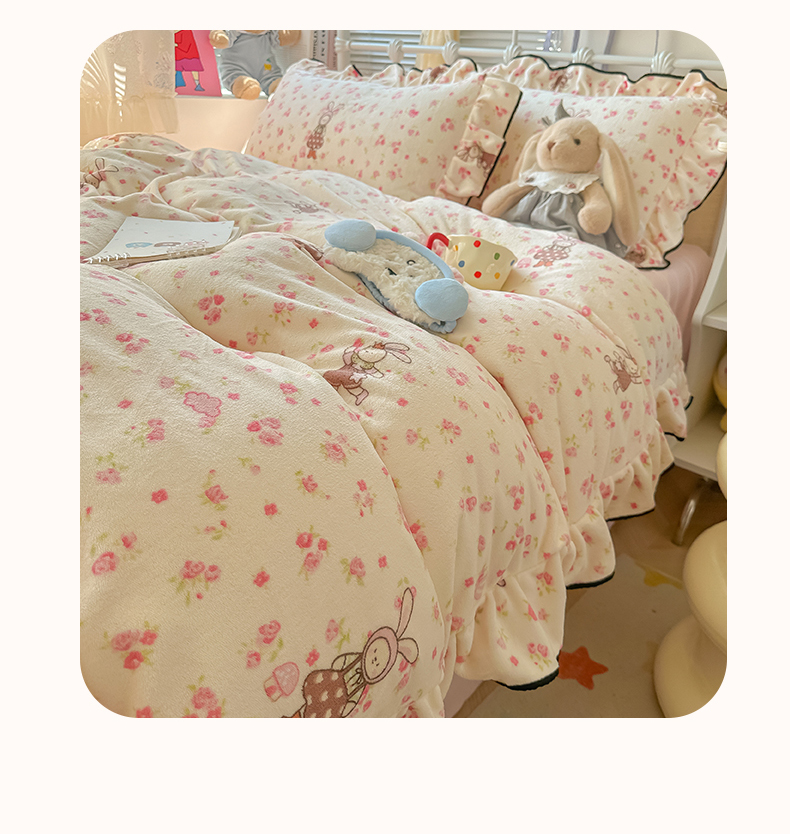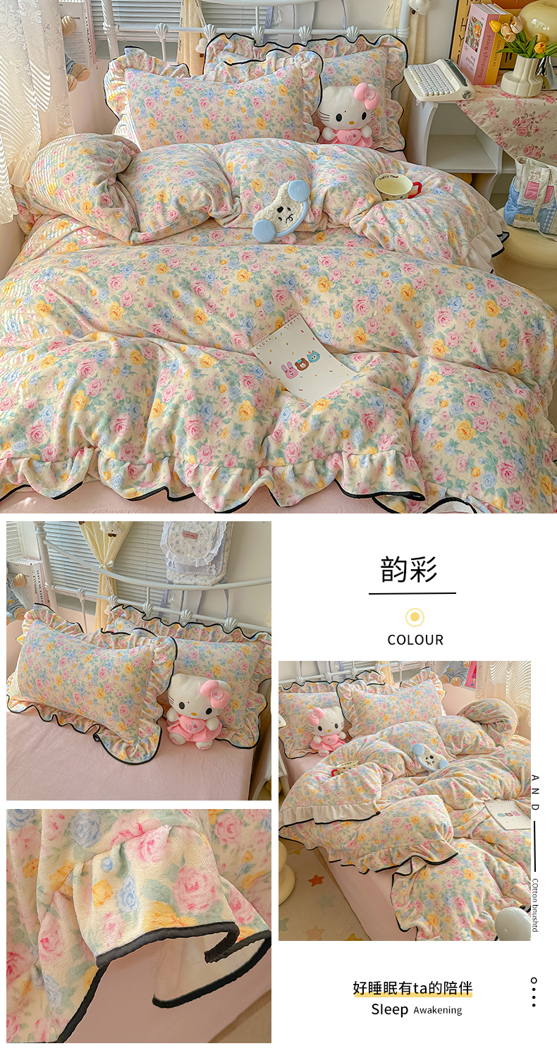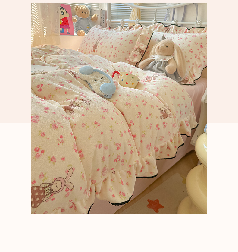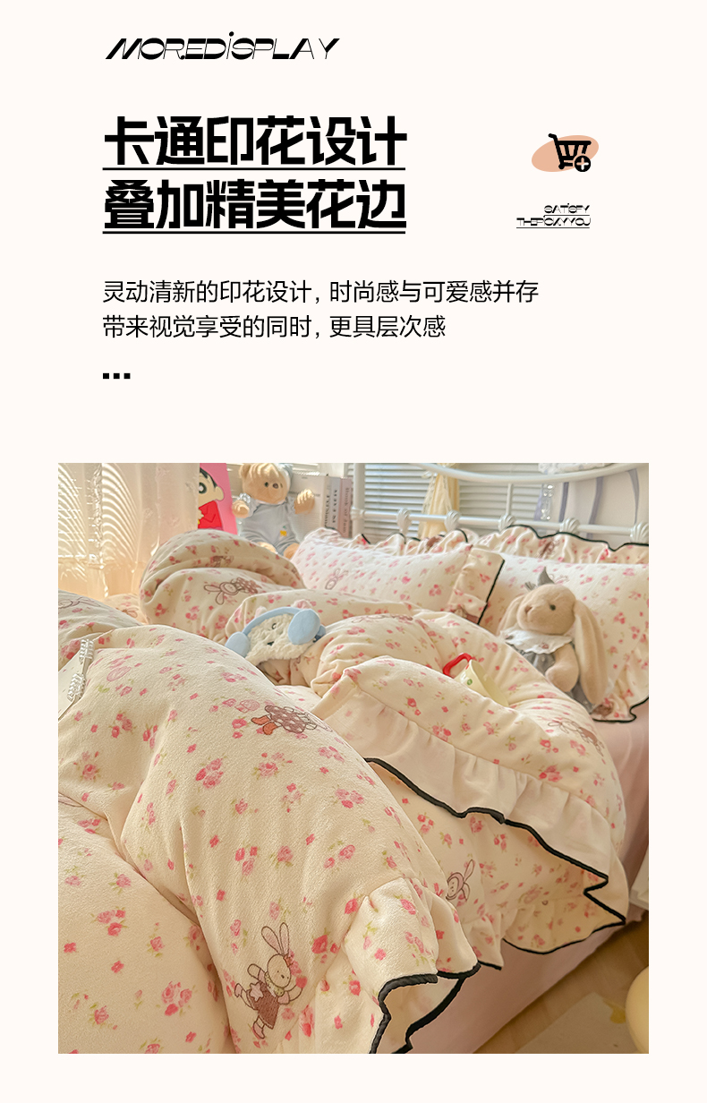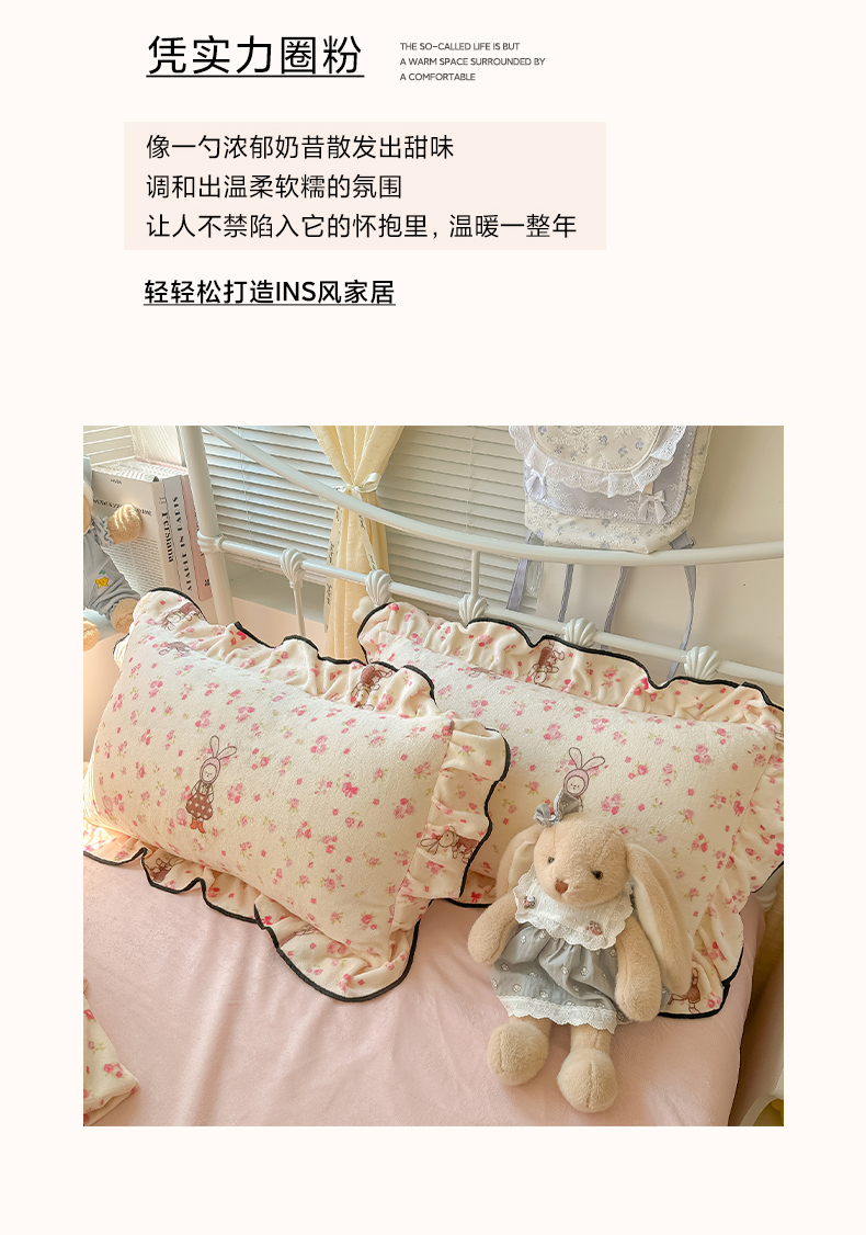 (总)韩都家居 2025新款亲肤舒适韩版温暖牛奶绒四件套-花边款