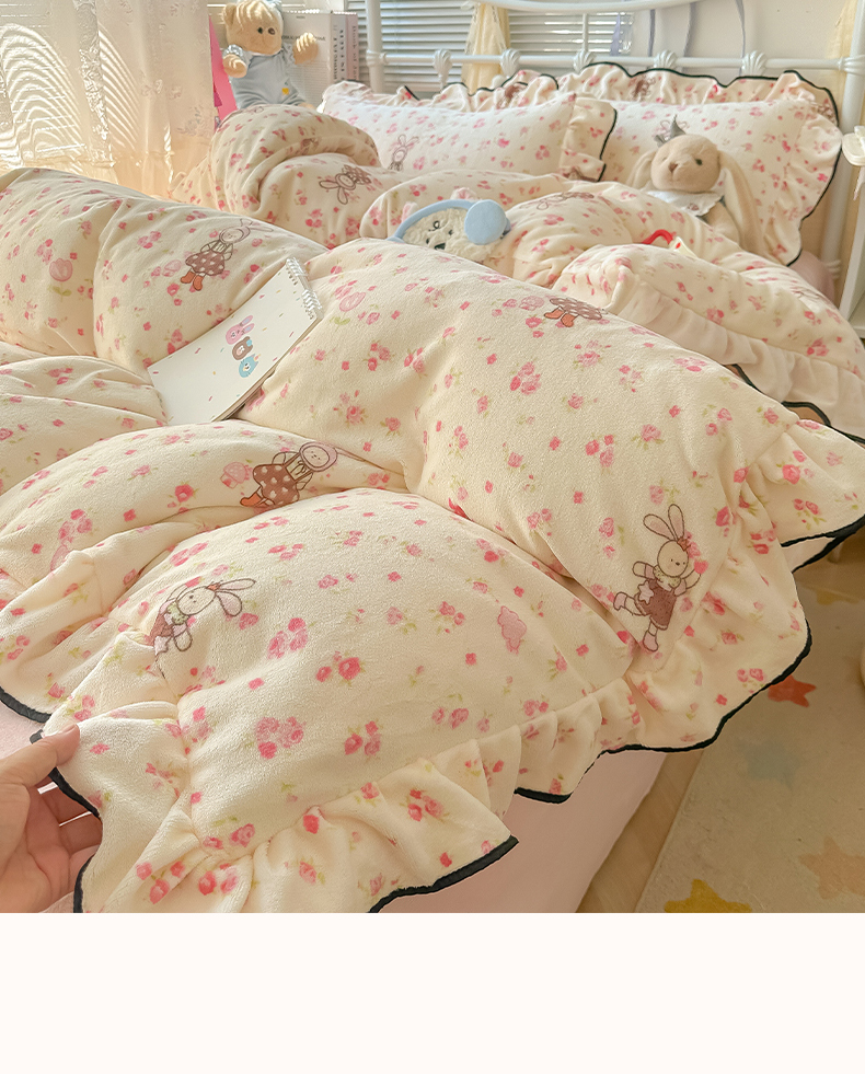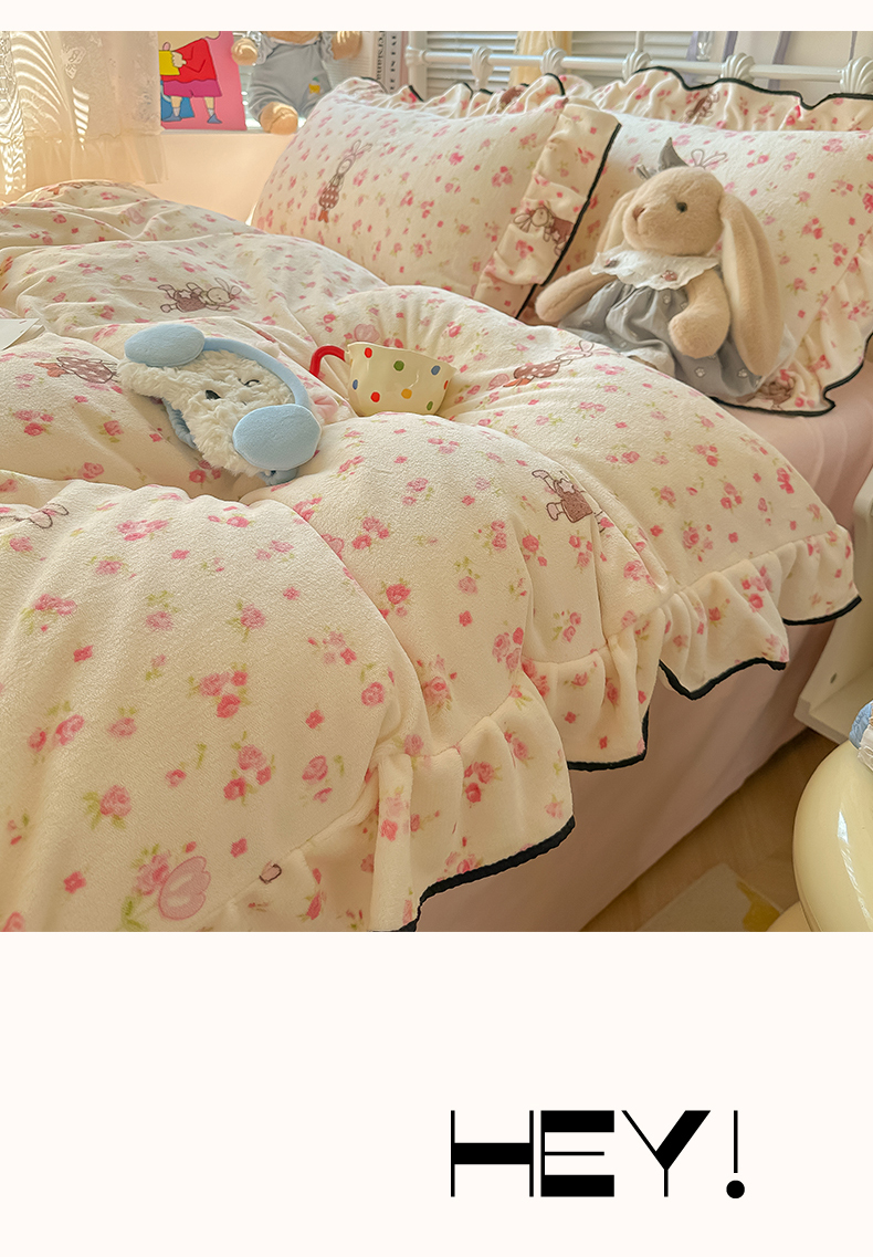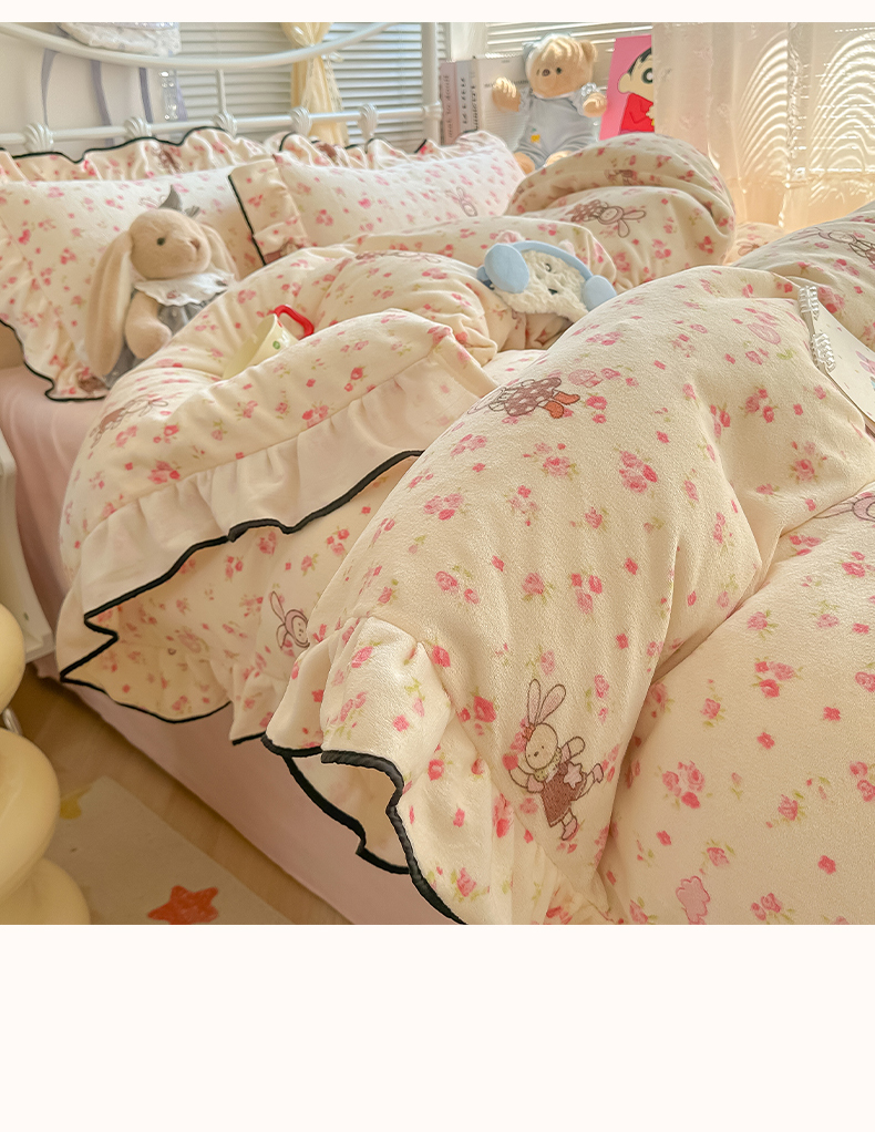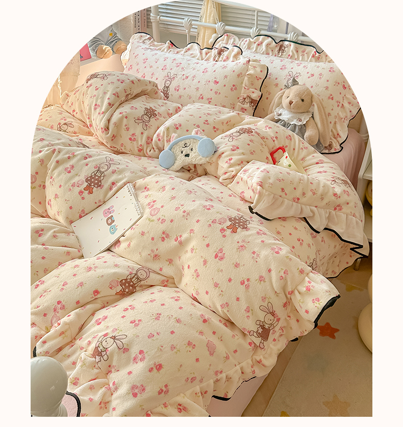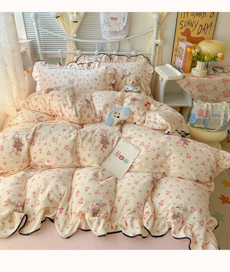 (总)韩都家居 2025新款亲肤舒适韩版温暖牛奶绒四件套-花边款