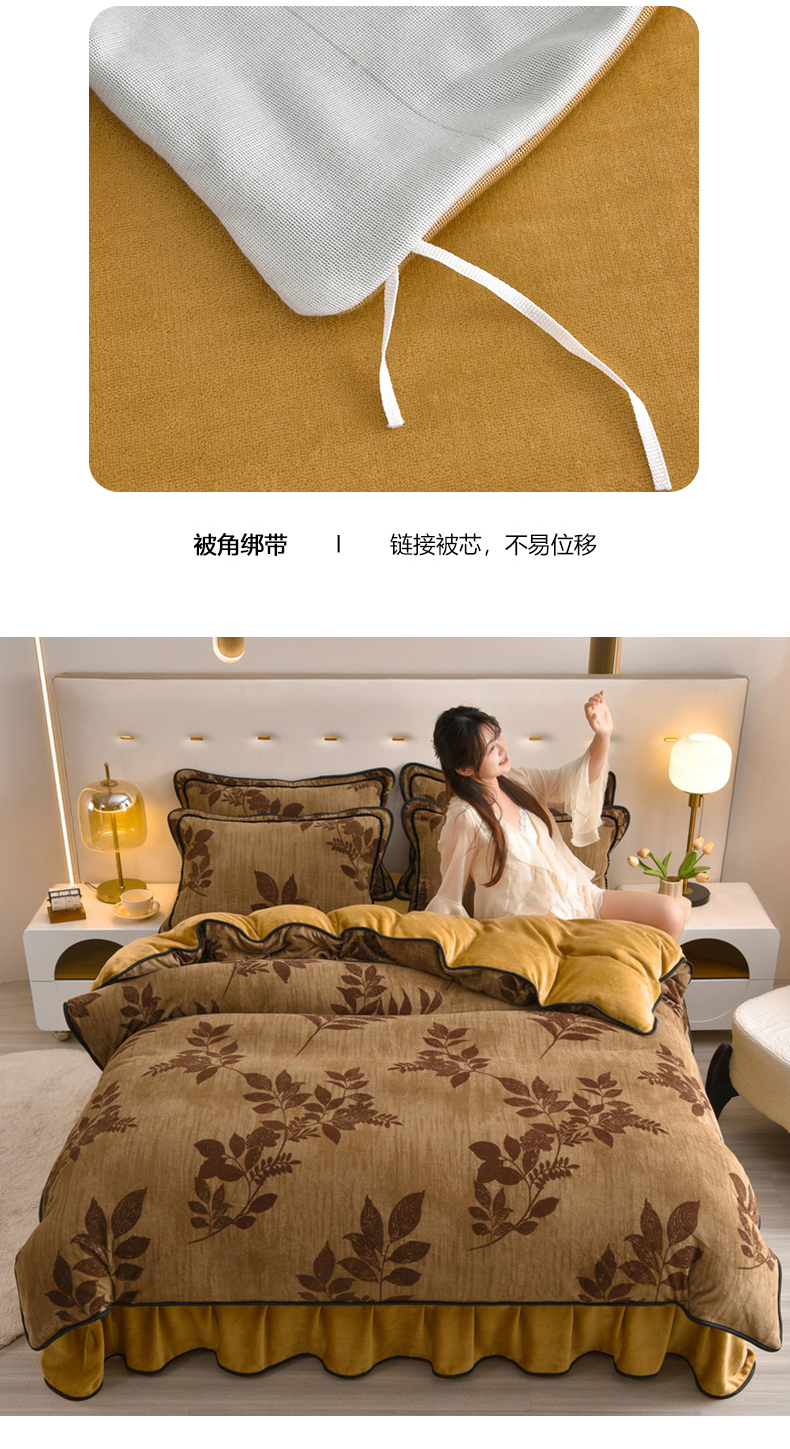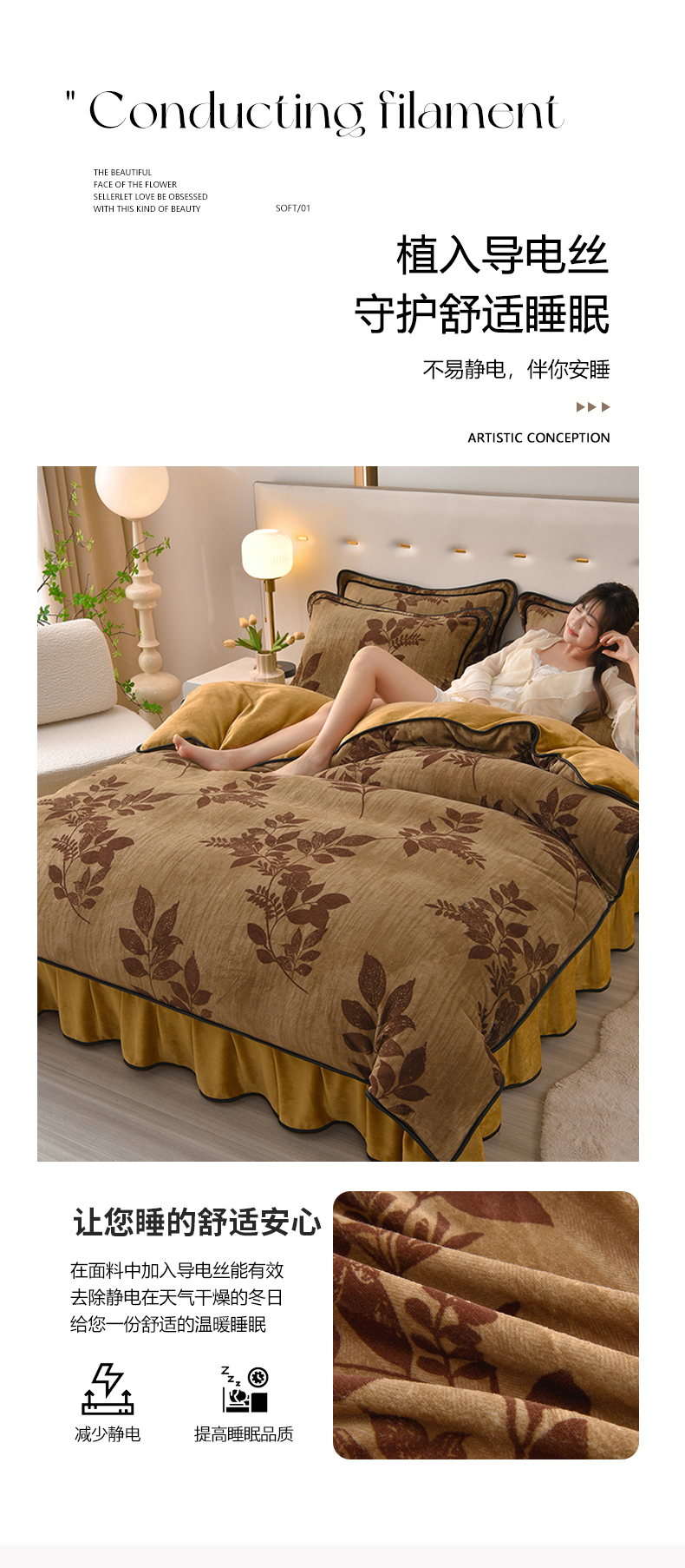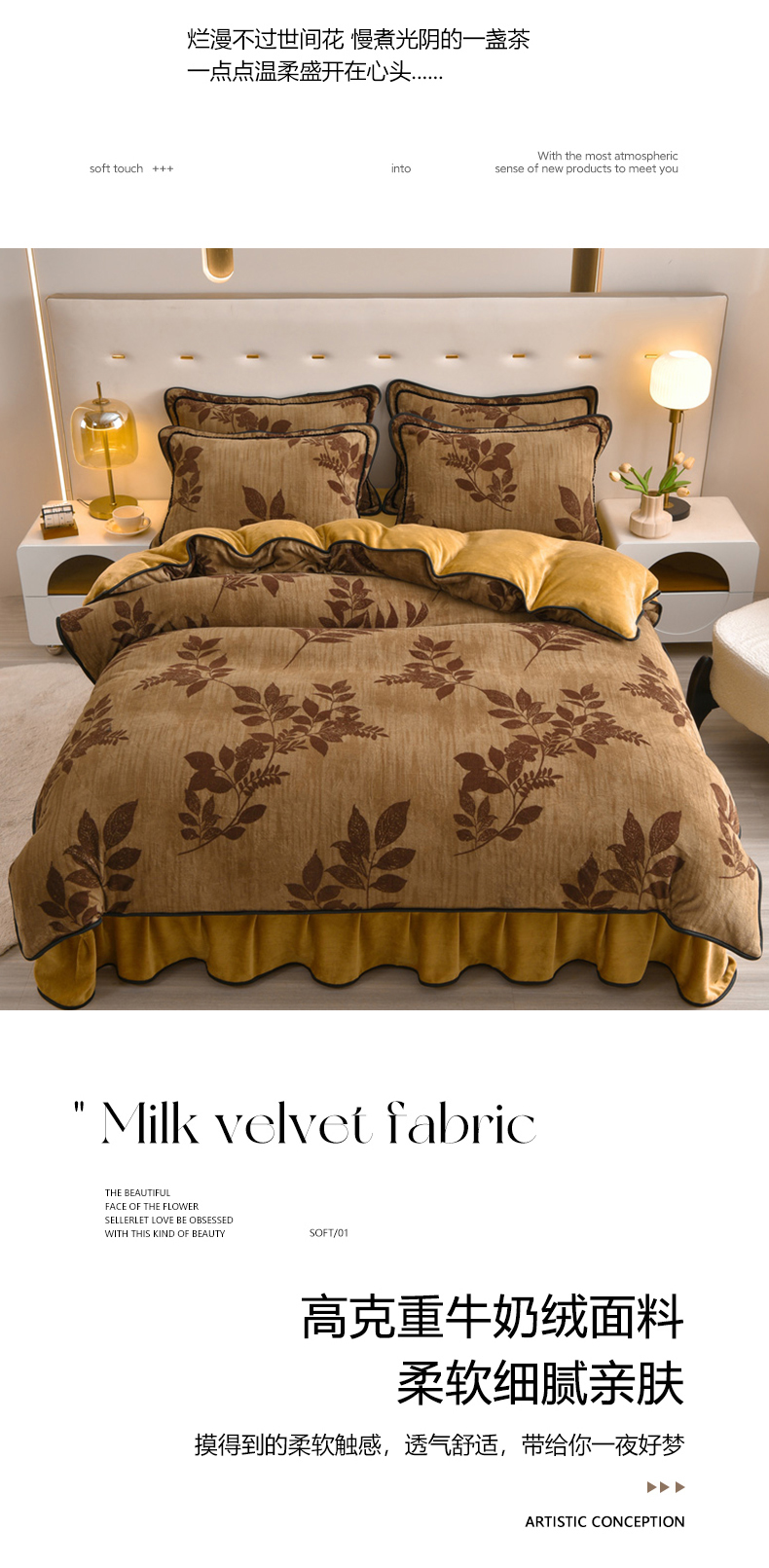 亿品2025直播爆款9.5斤牛奶绒四件套加厚保暖床裙四件套 秋恋