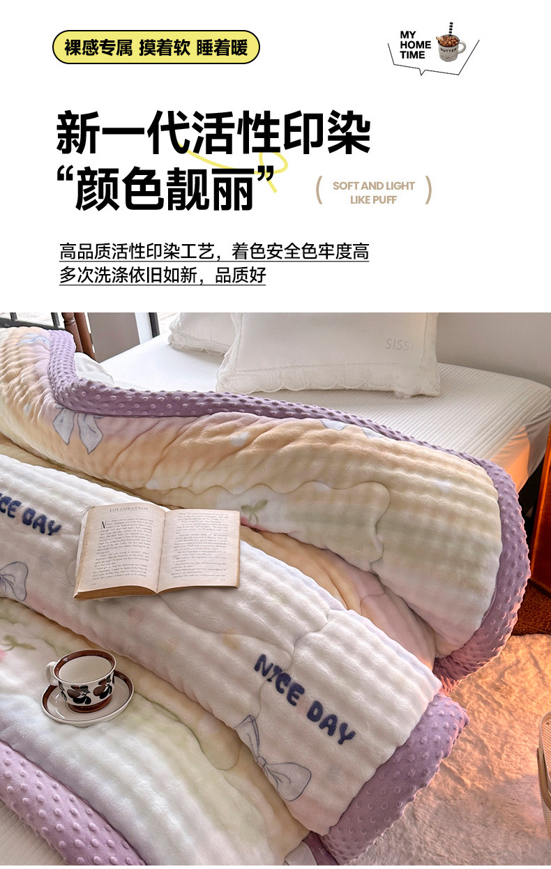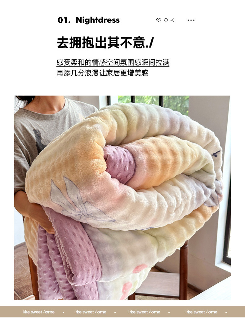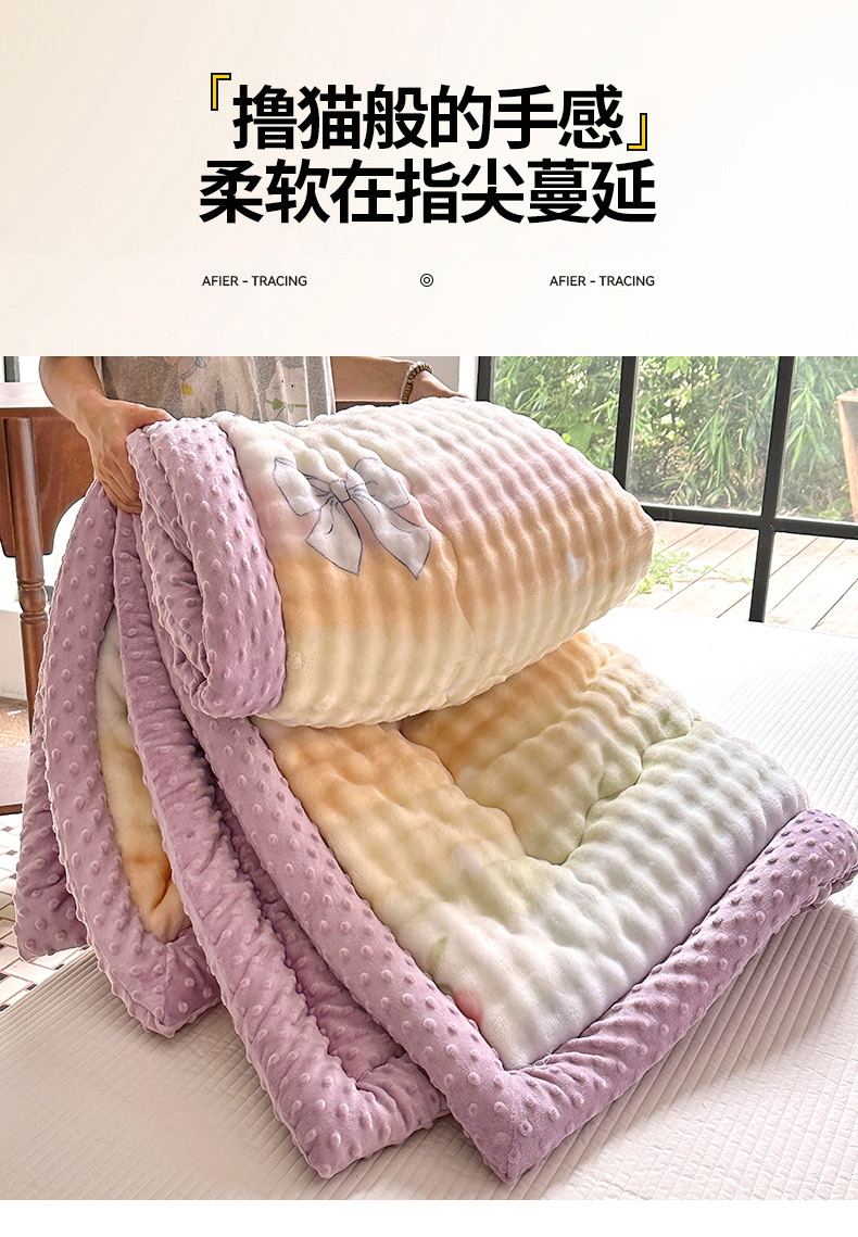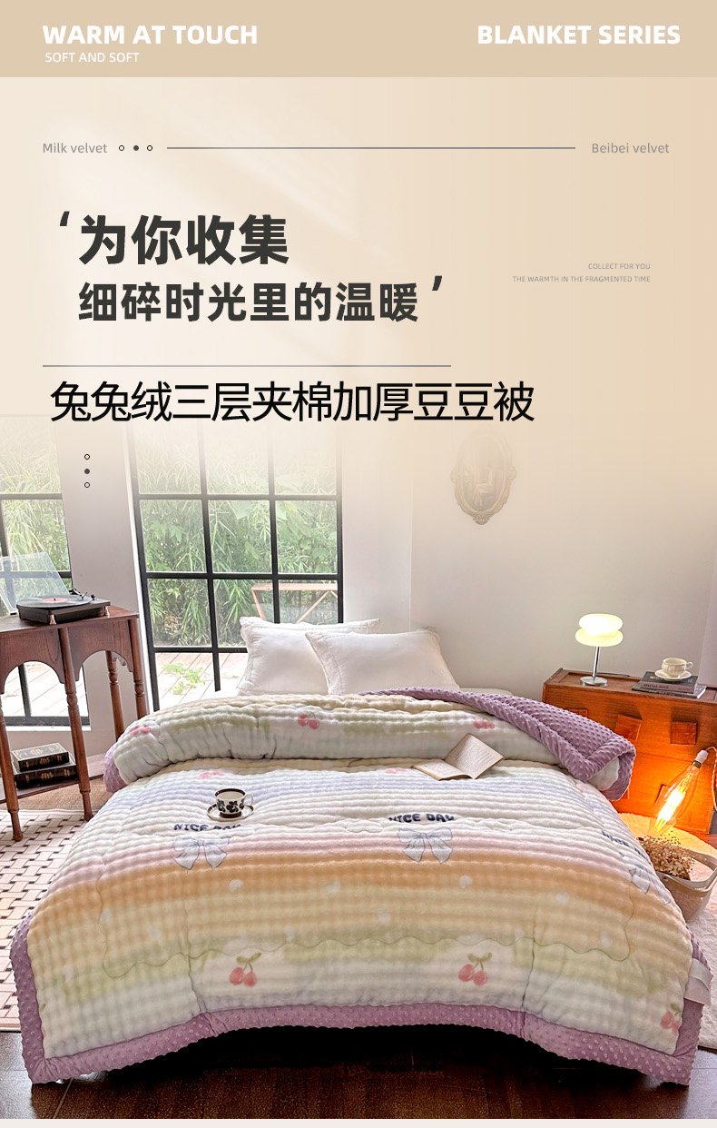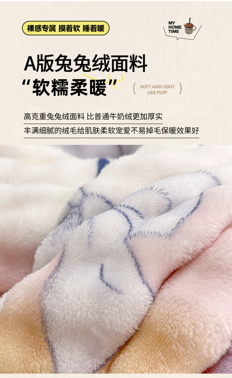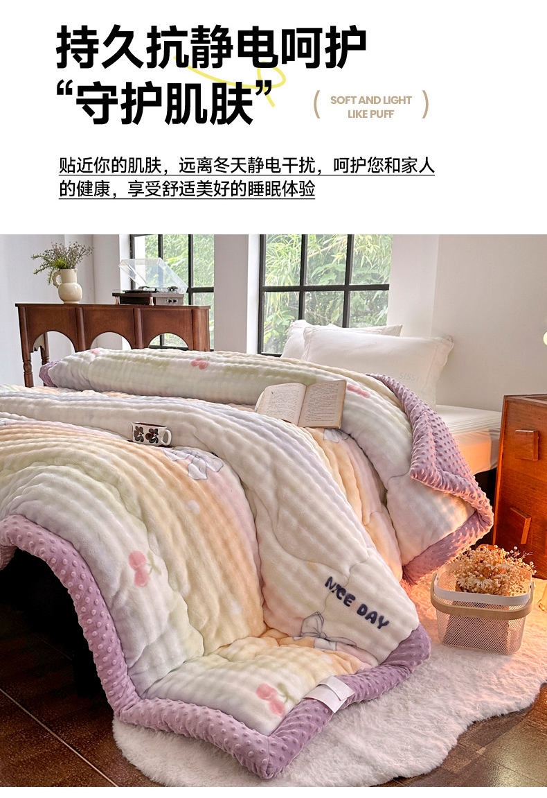 • 91家纺网 家纺一手货源 找家纺 优迈 2025直播热款A+兔兔绒豆豆被三层夹棉加厚毛毯毯子牛奶绒冬被泡泡兔毛绒保暖被子被芯 彩虹约定