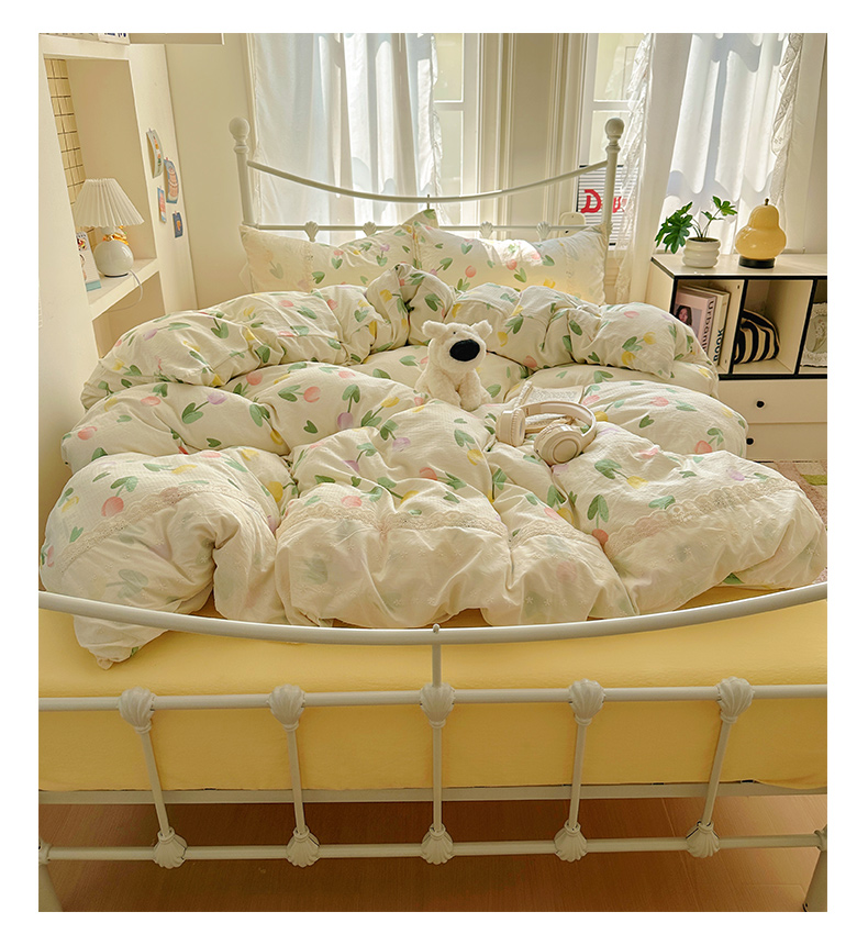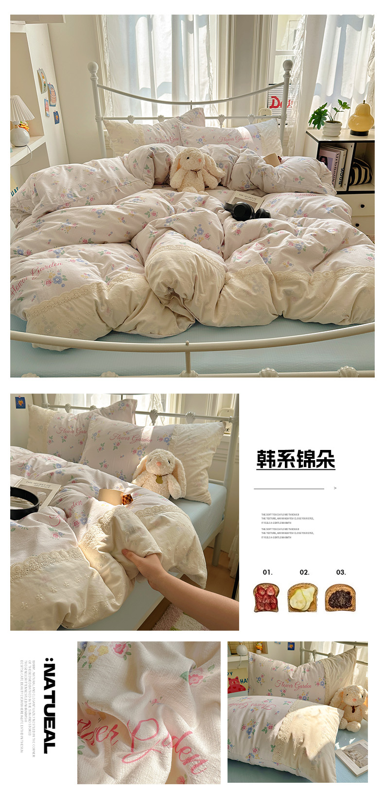 当前位置: 91家纺网 > 商品网购 > 床品套件 > 四件套 > 双层纱四件套 > 花伞家居 2025新款A类韩系蕾丝花边云感木棉双层纱四件套(提供买家秀) 韩系童年蝴蝶
