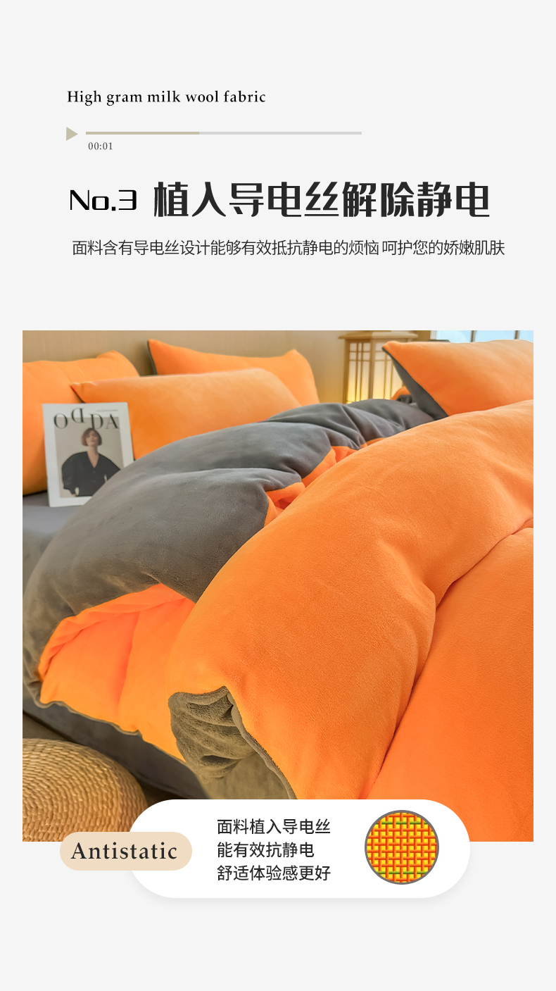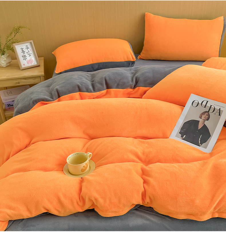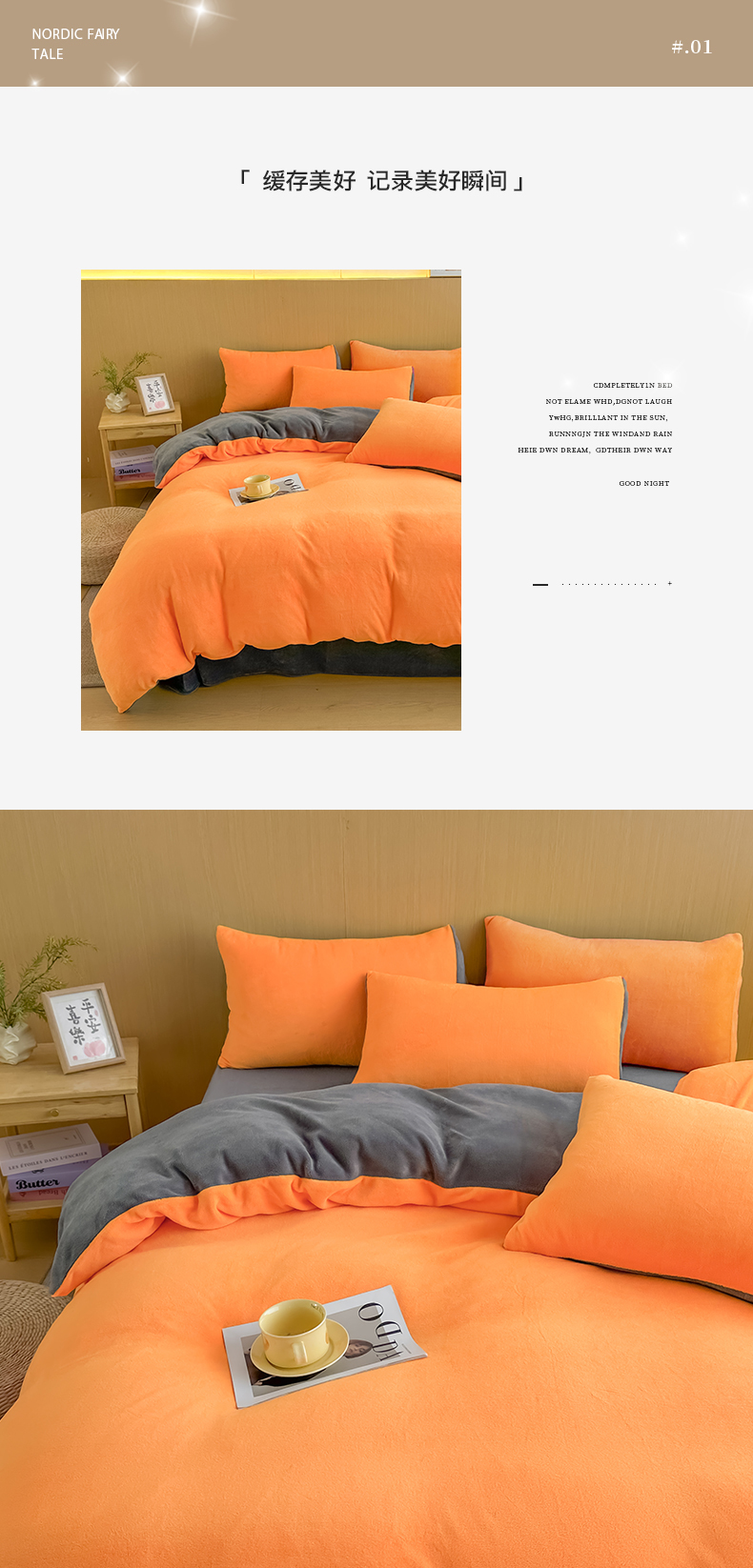 (总)小懒猪 2025新款220克A类牛奶绒纯色双拼四件套(提供买家秀)