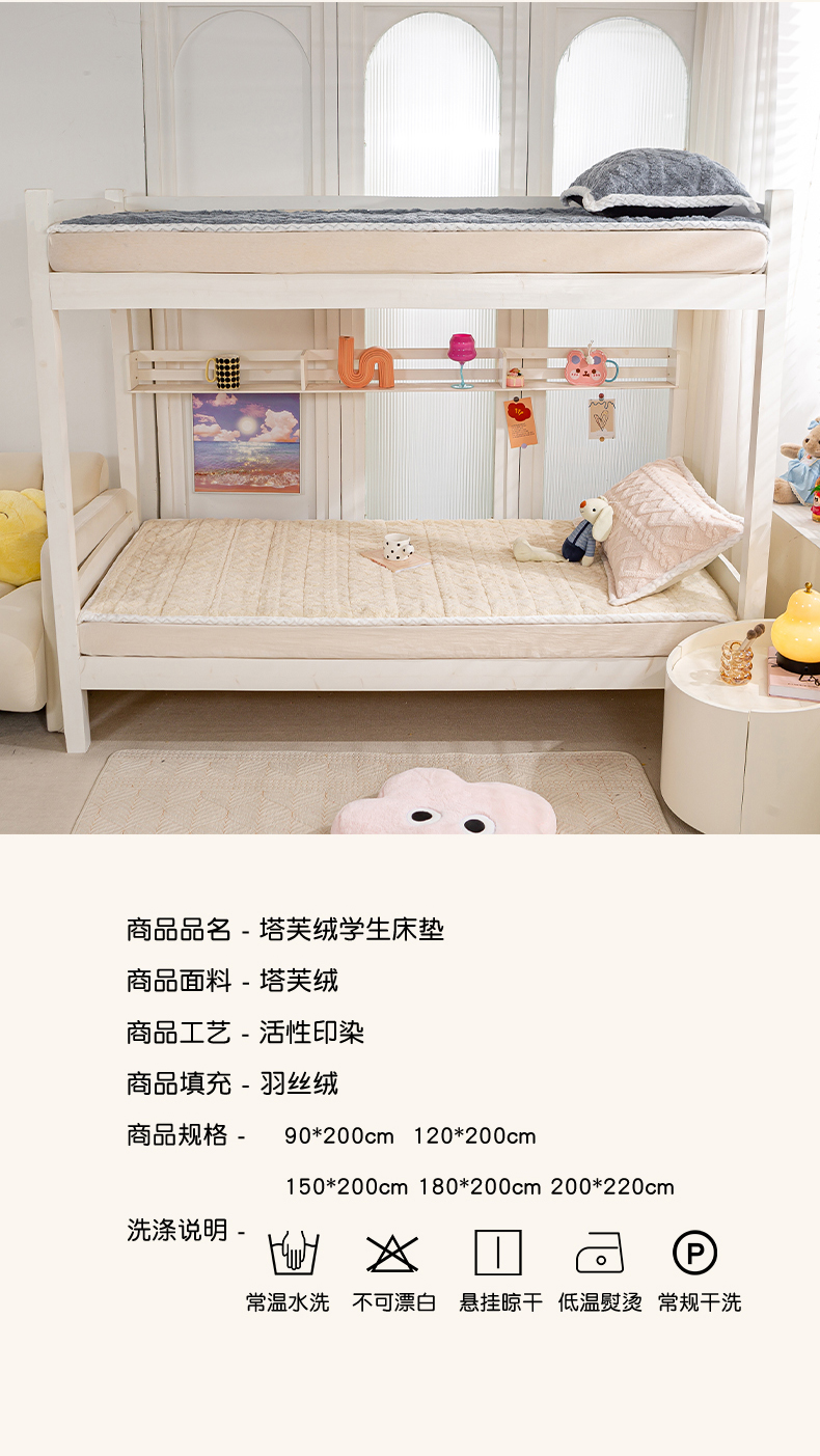 商品名称:暖芯优选 2025新款上下铺塔芙绒床垫 奶油咖