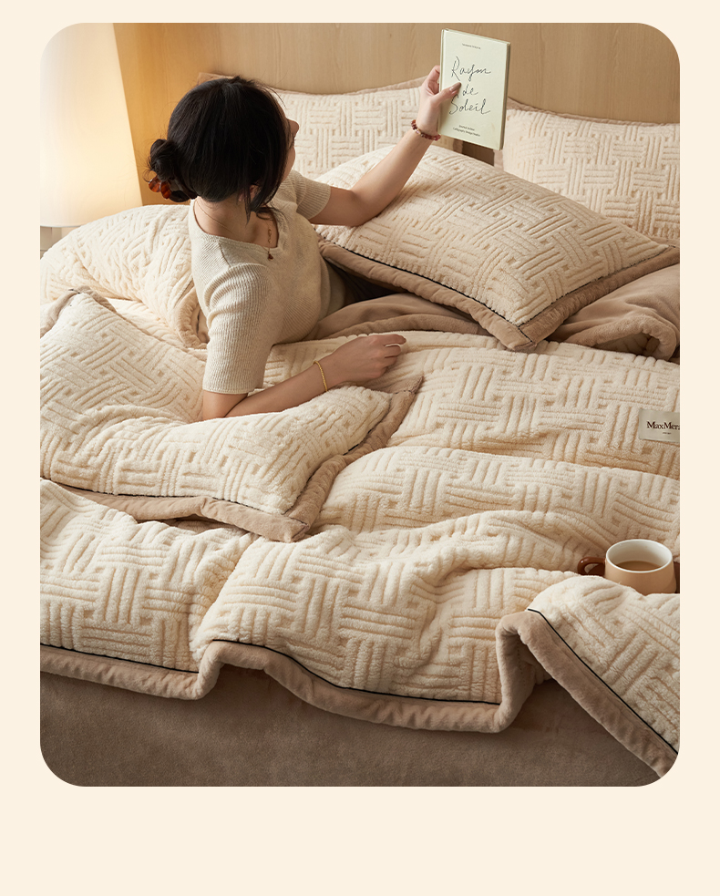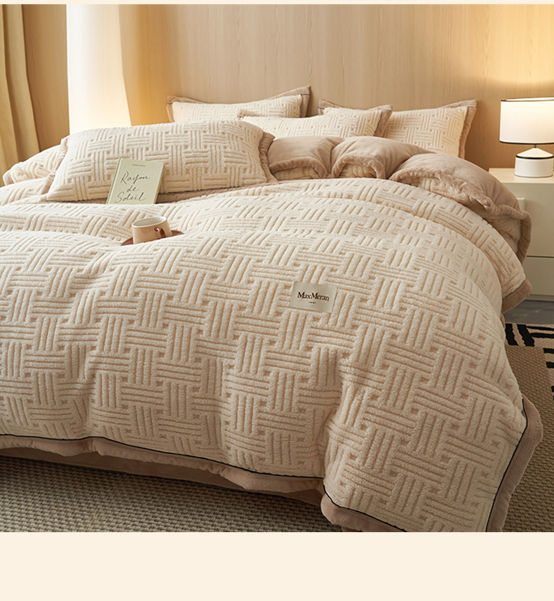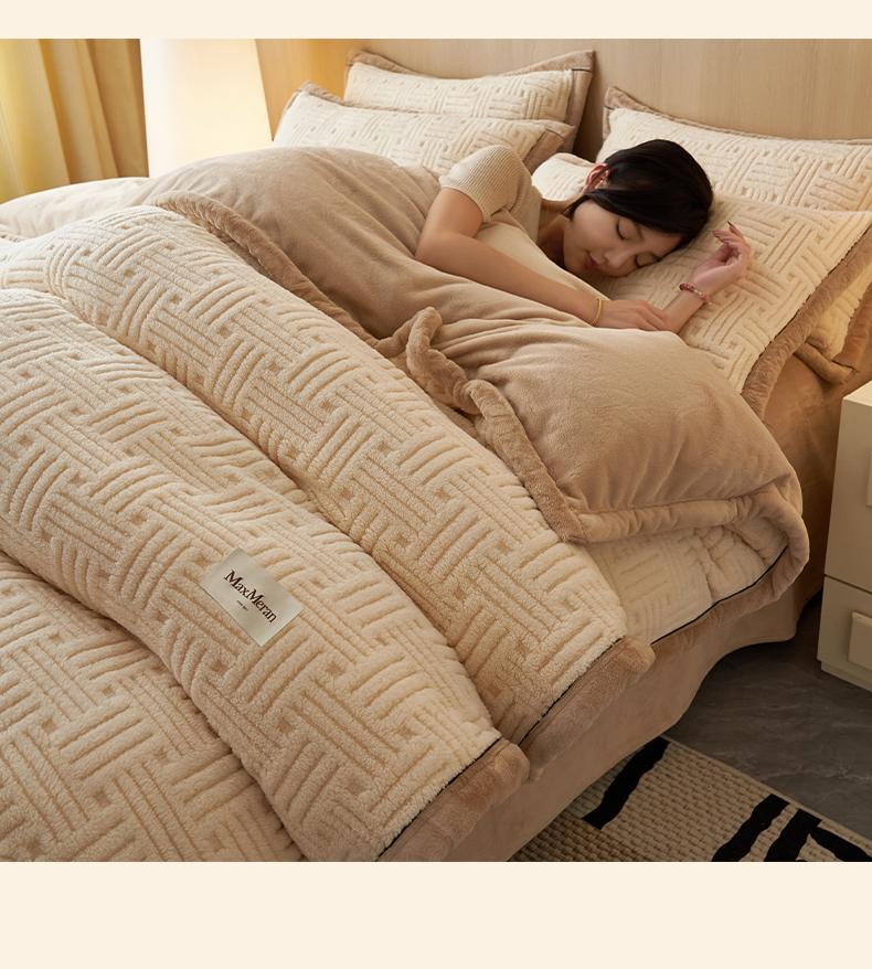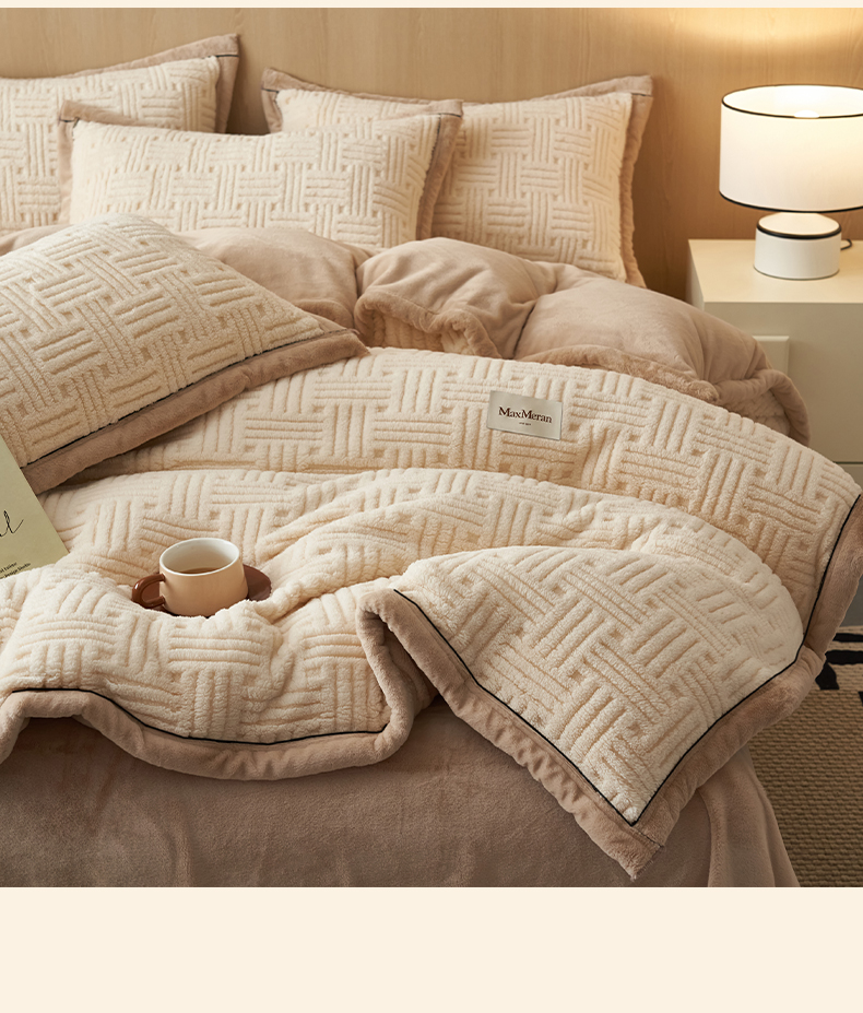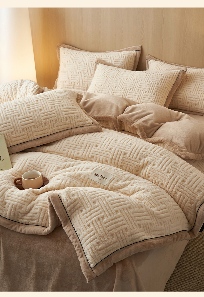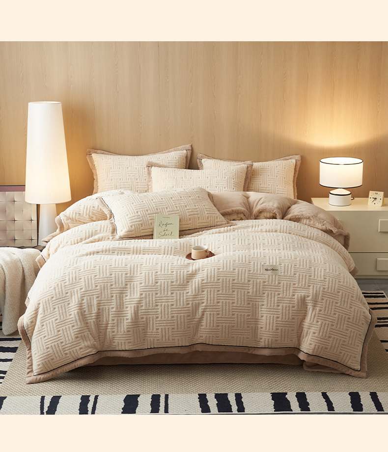 当前位置: 91家纺网 > 商品网购 > 床品套件 > 四件套 > 牛奶绒四件套 > 晨曦家纺 2025新款230克加厚保暖塔芙绒牛奶绒四件套法兰绒 简爱-奶咖