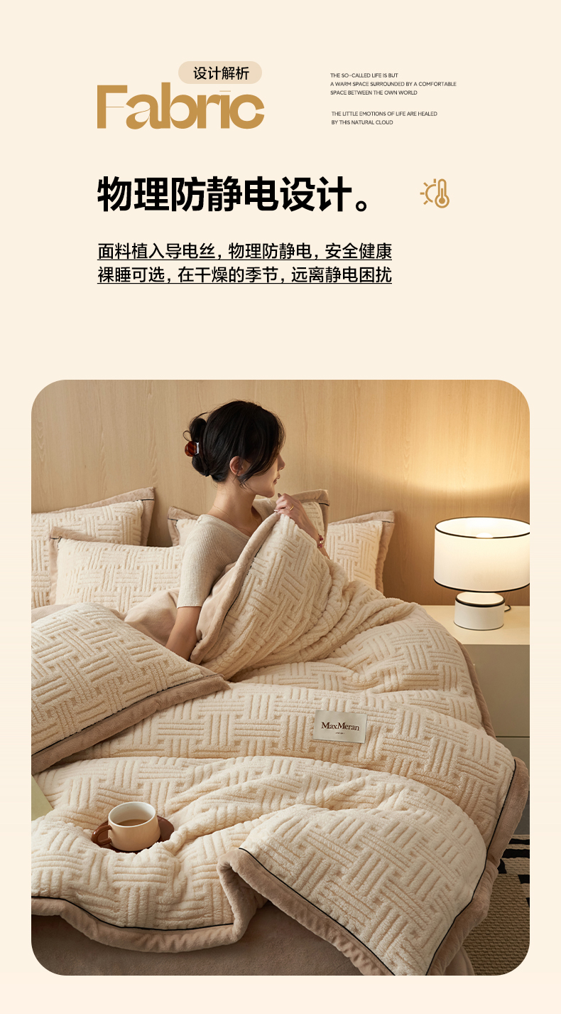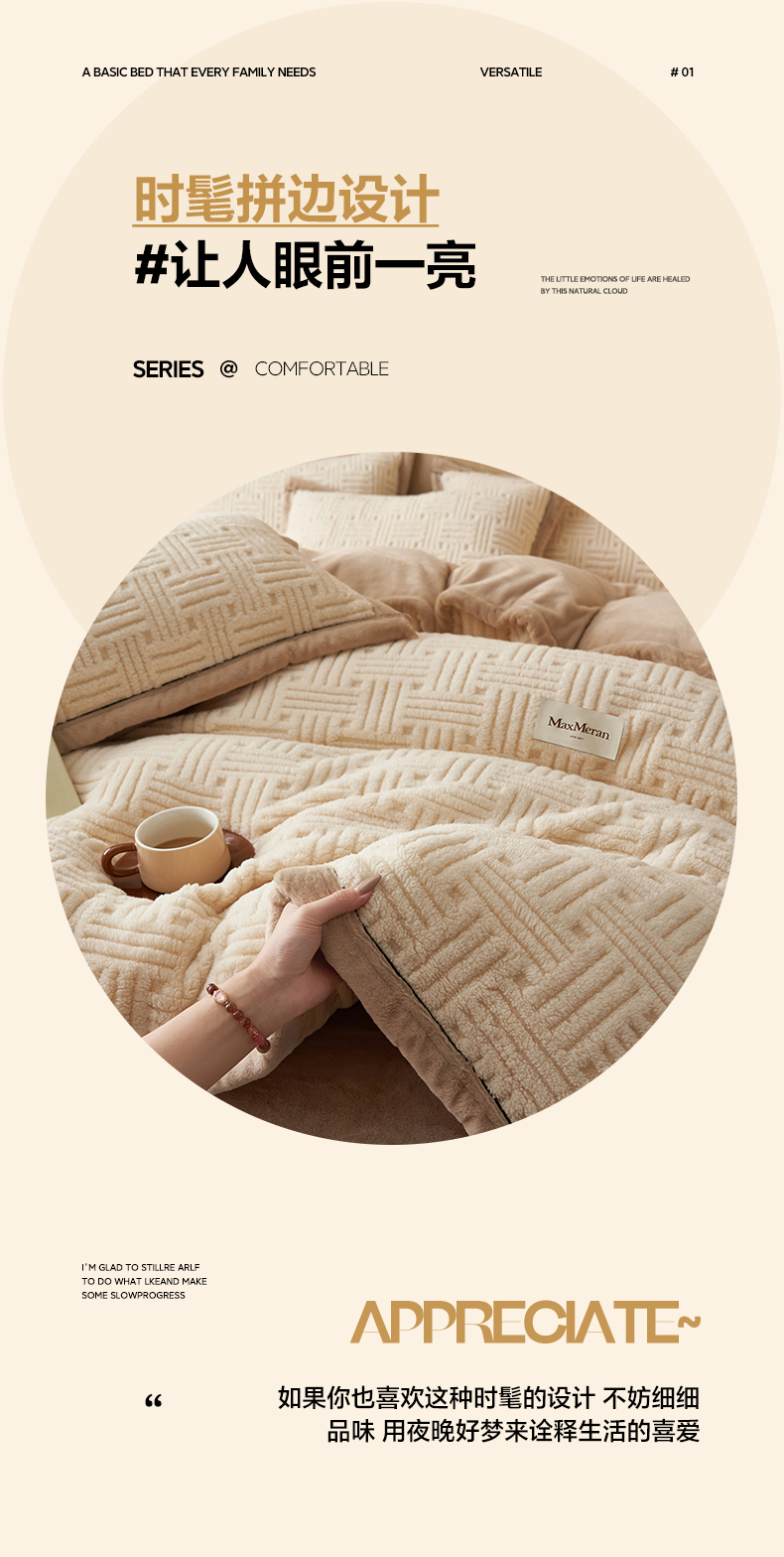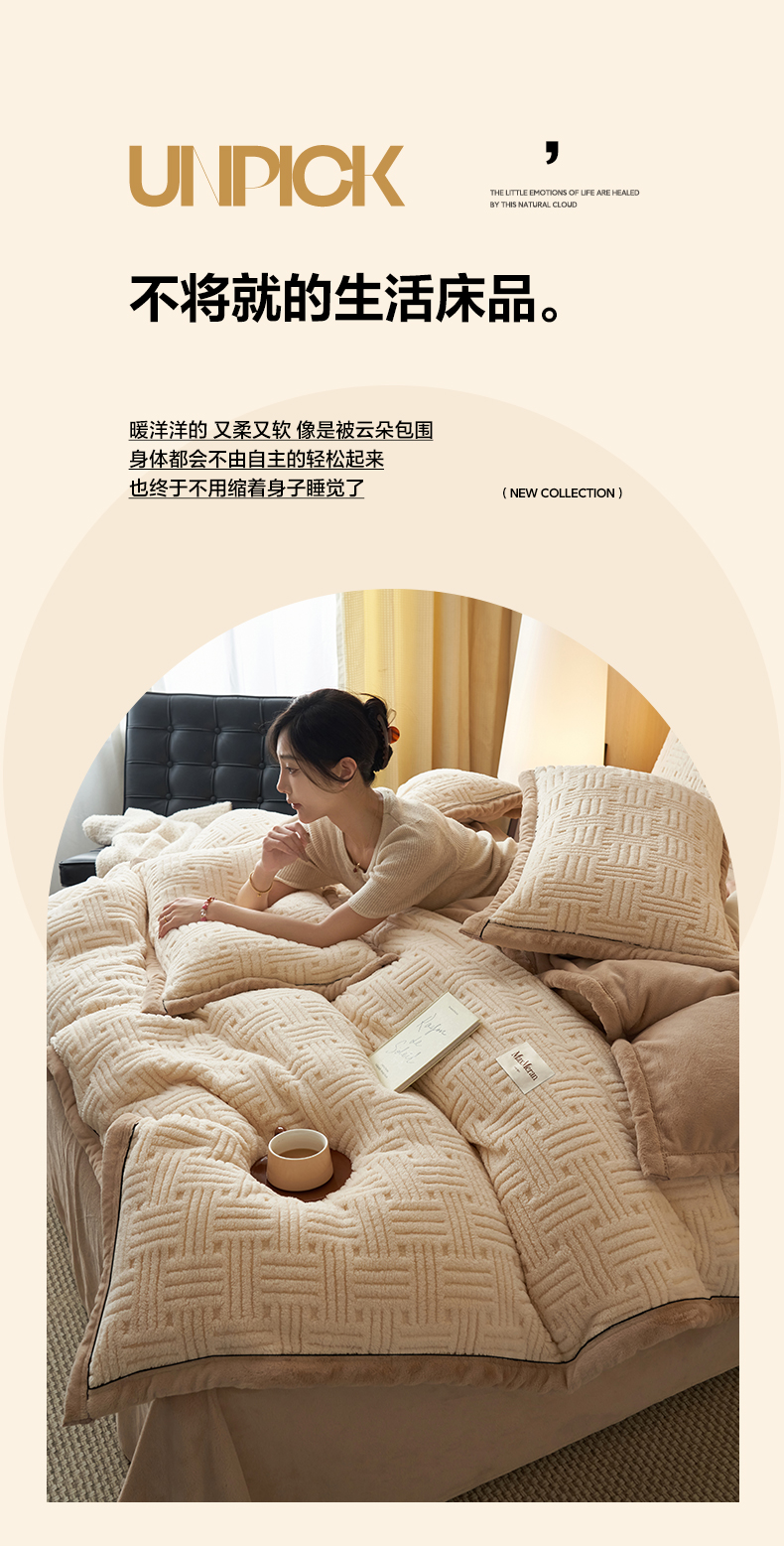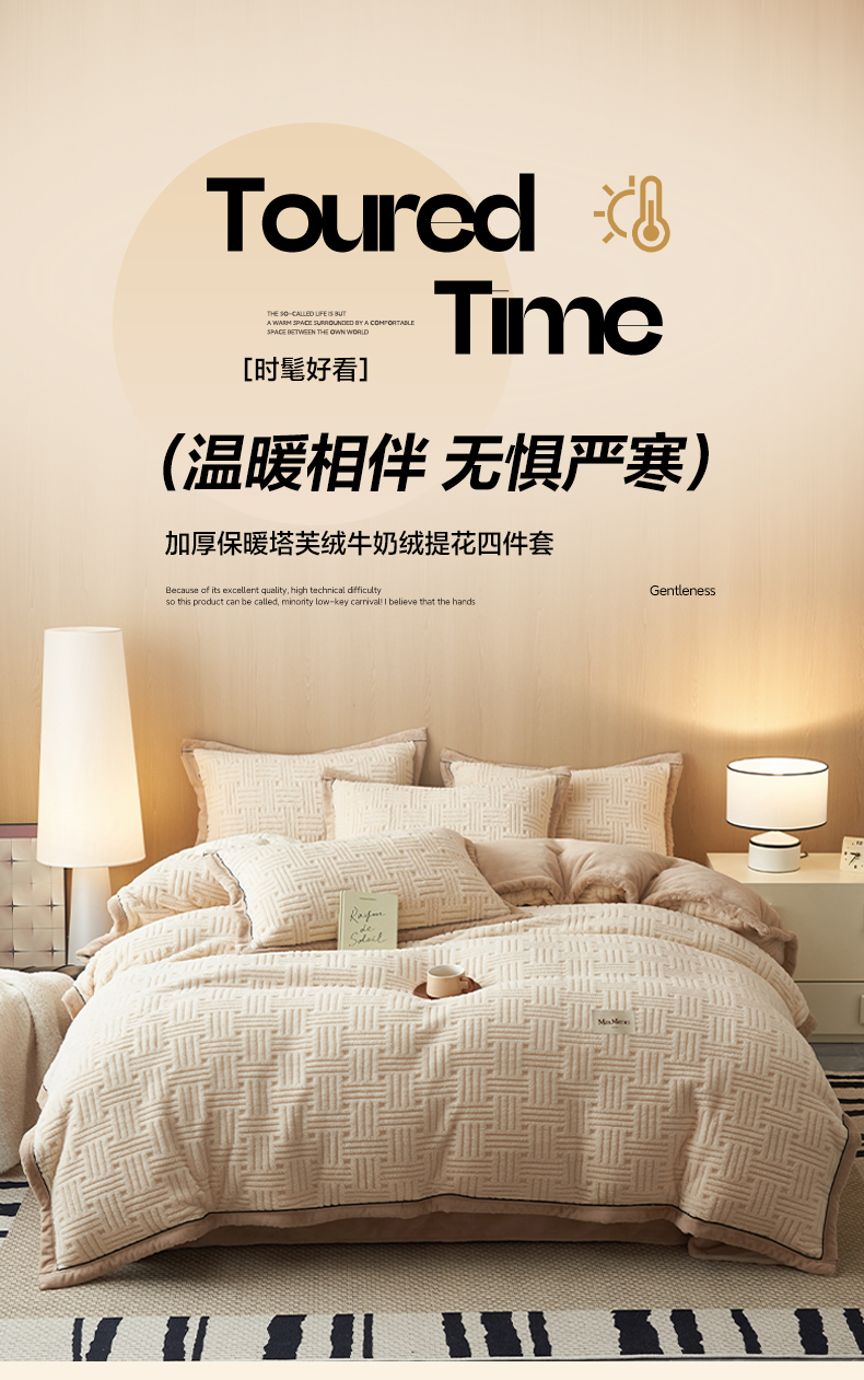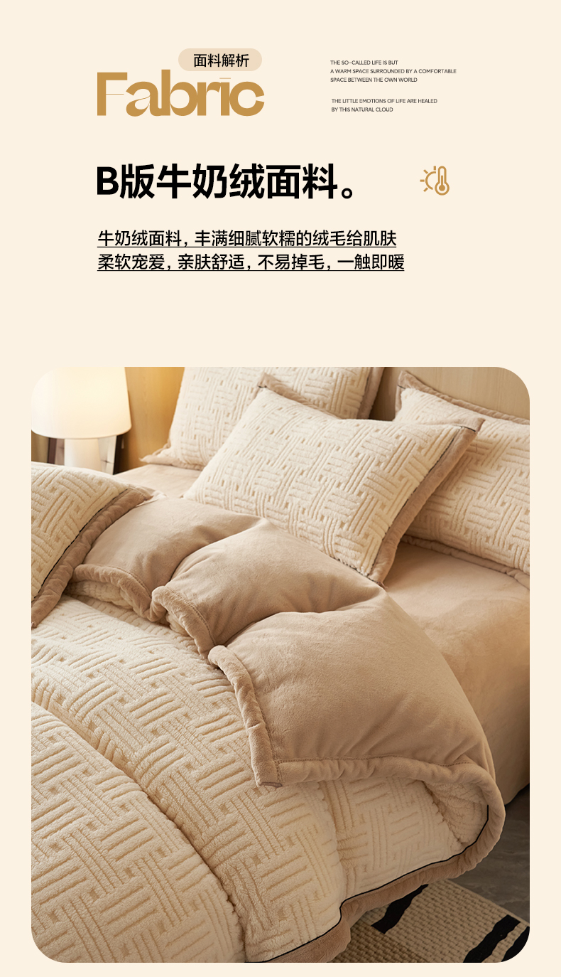 当前位置: 91家纺网 > 商品网购 > 床品套件 > 四件套 > 牛奶绒四件套 > 晨曦家纺 2025新款230克加厚保暖塔芙绒牛奶绒四件套法兰绒 简爱-奶咖
