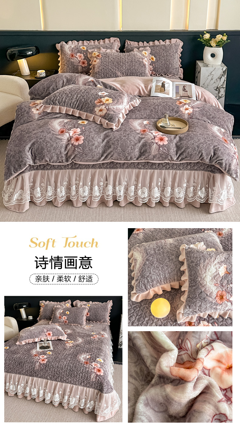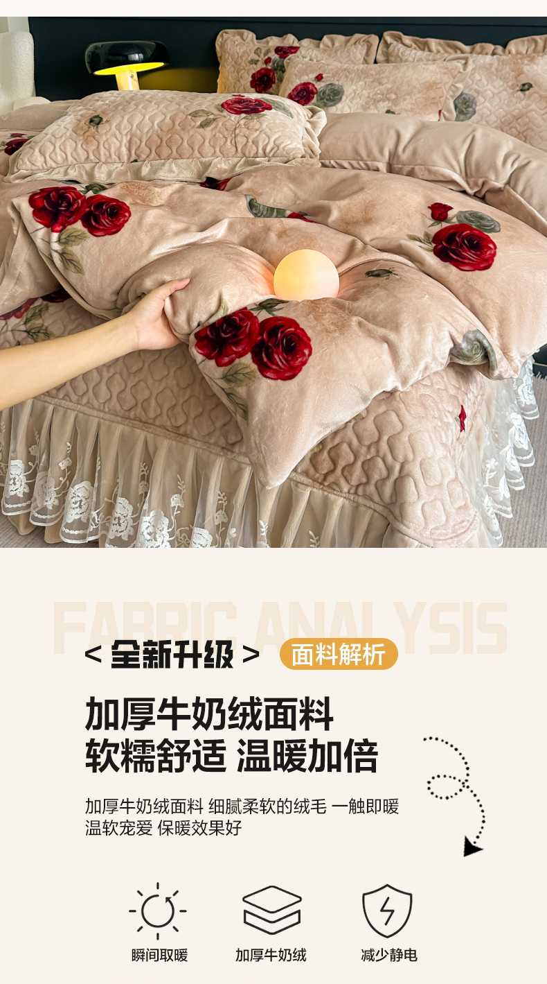 当前位置: 91家纺网 > 商品网购 > 床品套件 > 四件套 > 牛奶绒四件套 > 棉森家纺 2025新款亲肤舒适牛奶绒床盖四件套 瑞丽
