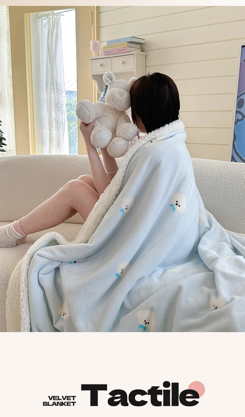 商品名称:Mata蔓塔家 2025新款A类秋冬可爱系牛奶绒羊羔绒多功能毛毯奶盖系列 奶盖-可爱狗头蓝