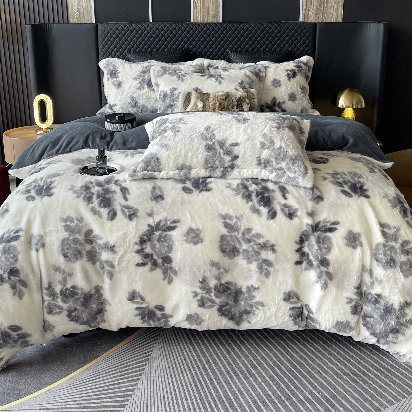 奈萝家纺 2025新款秋冬加厚皮草级兔绒牛奶绒四件套 沐瑶