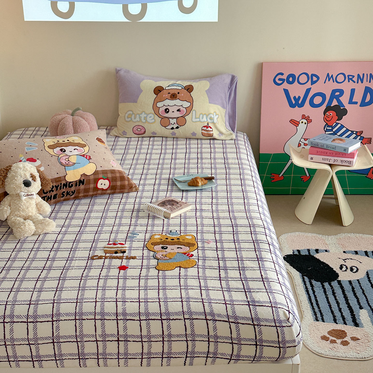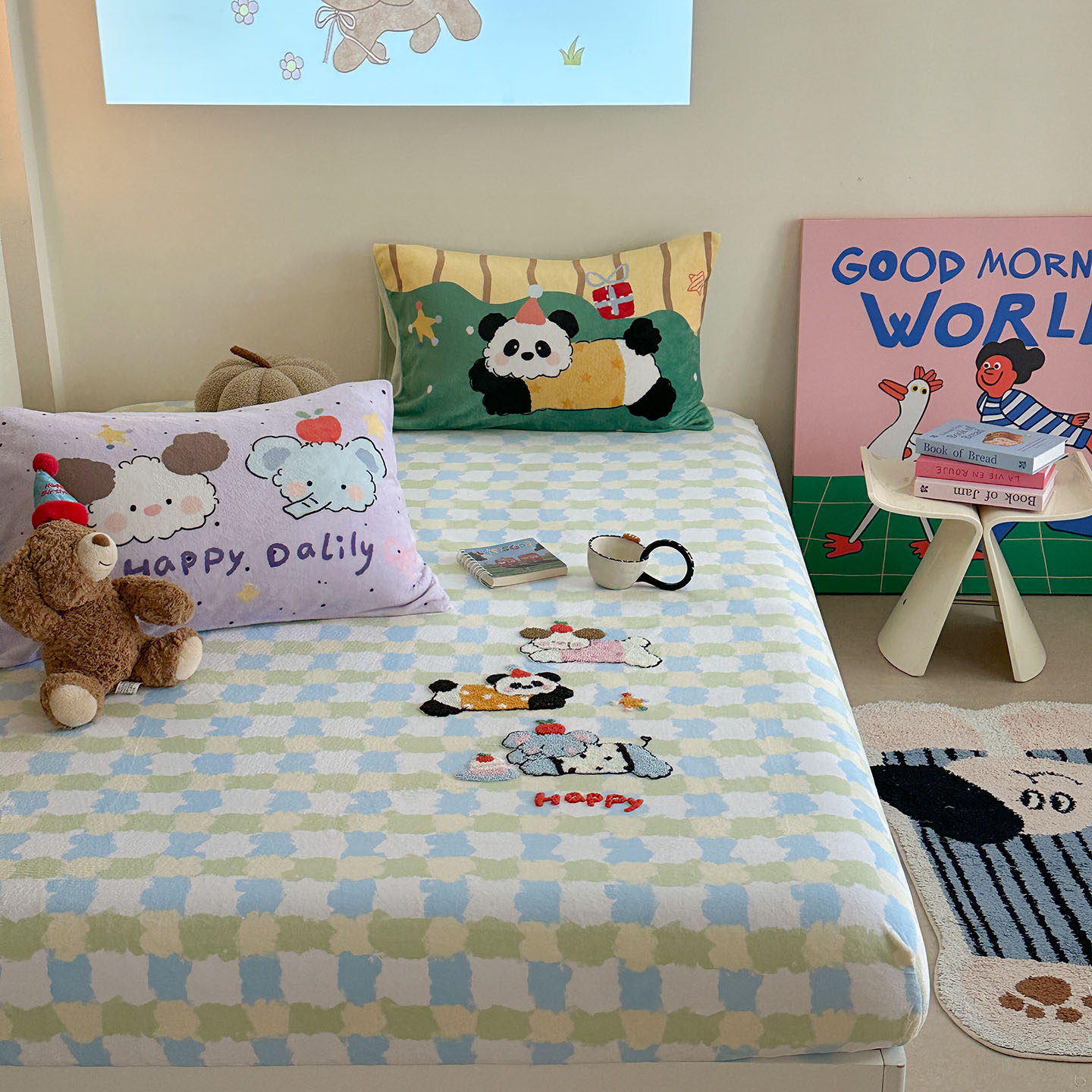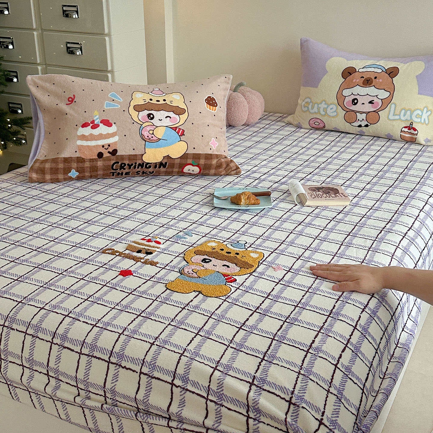 柚子YOUTH 2025新款加厚牛奶绒卡通毛巾绣床笠三件套 组合