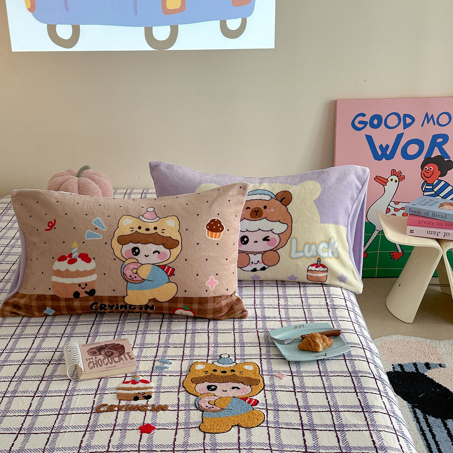 (总)柚子YOUTH 2025新款加厚牛奶绒卡通毛巾绣四件套-印加绣送同款毛毯,蛋糕小狗,公主猫,头套猫,兔兔花园,小伙伴,雪纳瑞