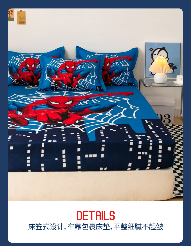 • 91家纺网 家纺一手货源 找家纺 一电 2024新款卡通床单床笠棕垫床套防尘罩席床垫保护套卡通儿童上下床床单床笠-第一批 蜘蛛侠