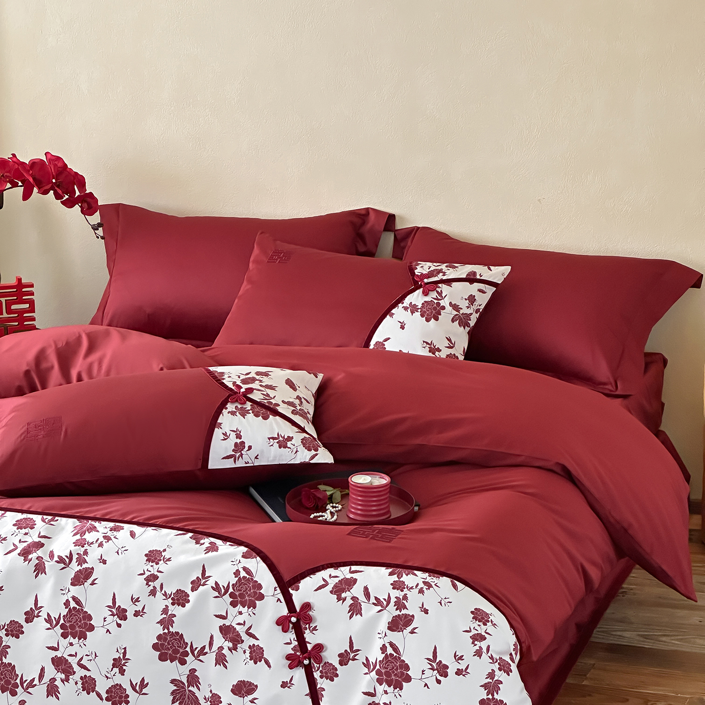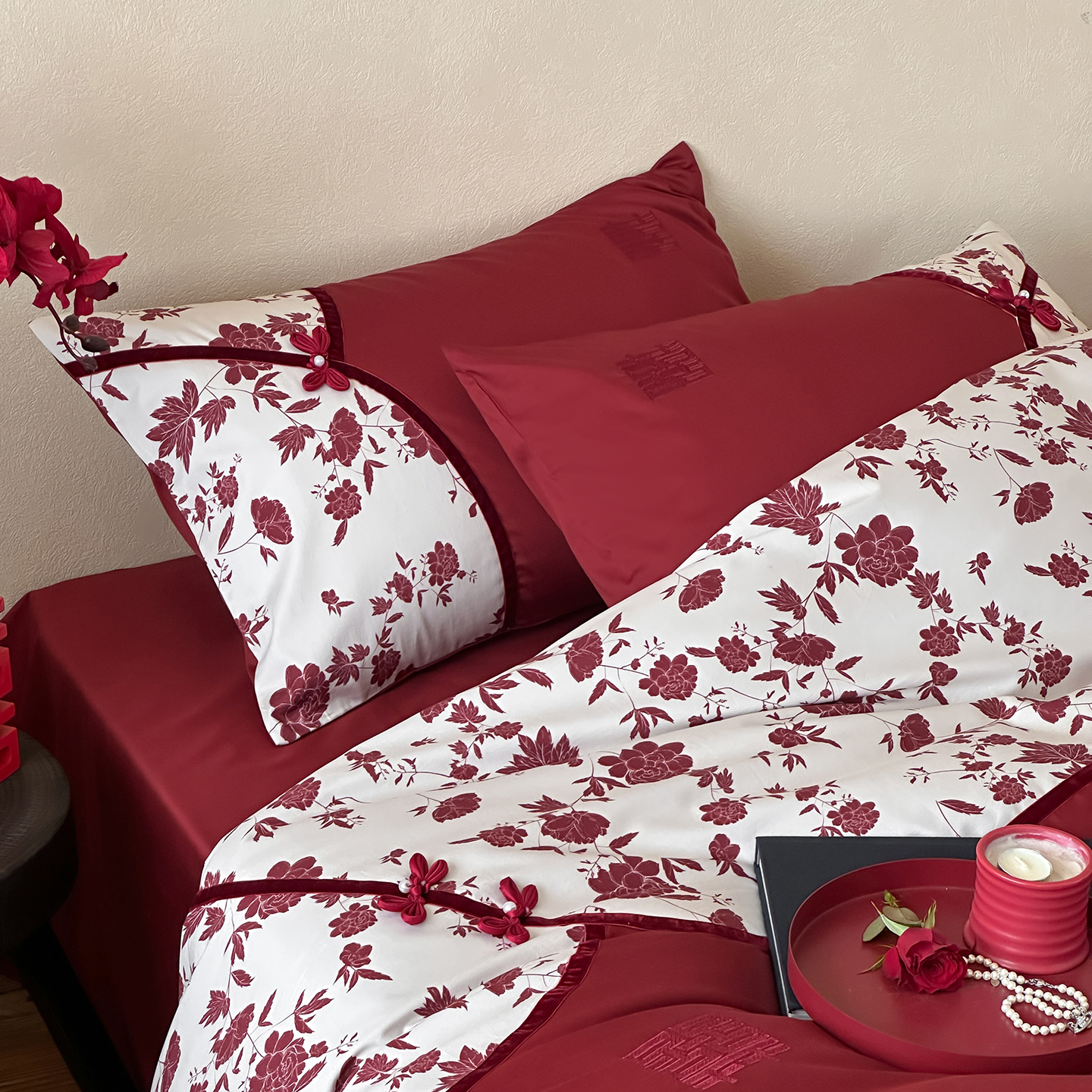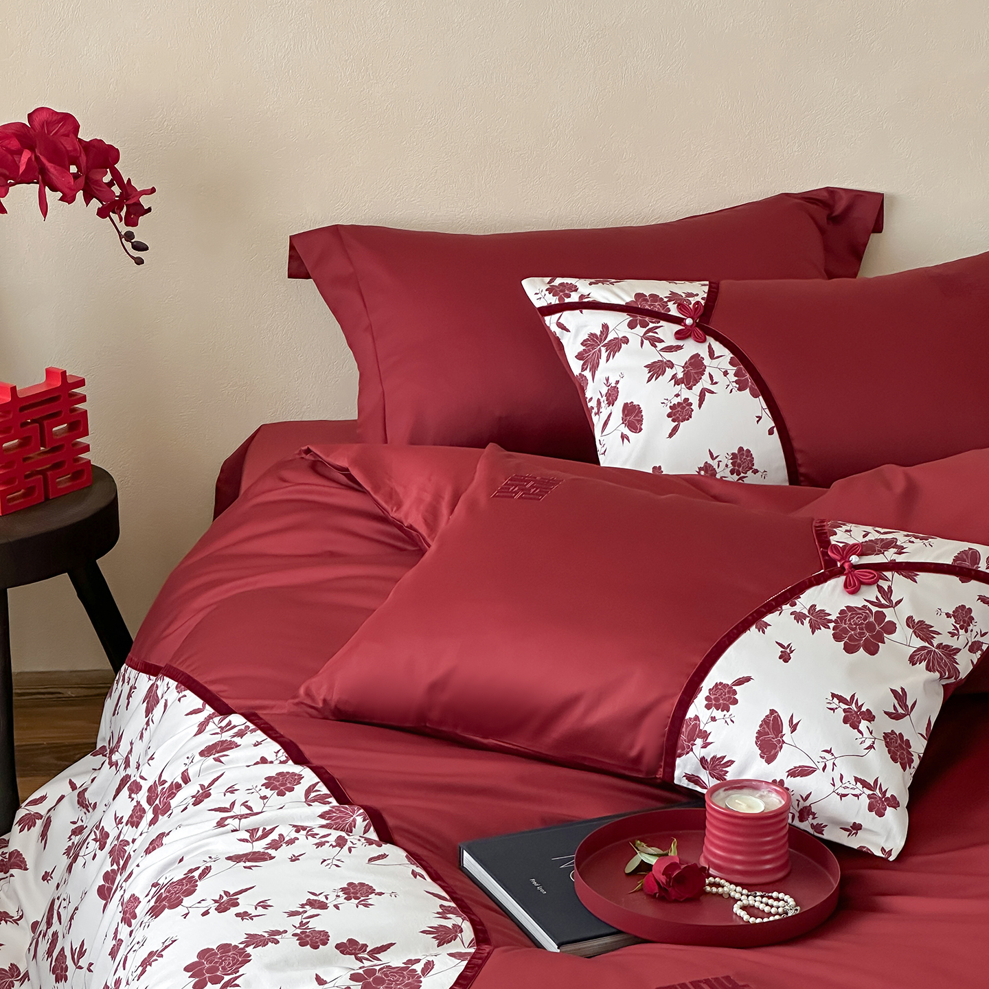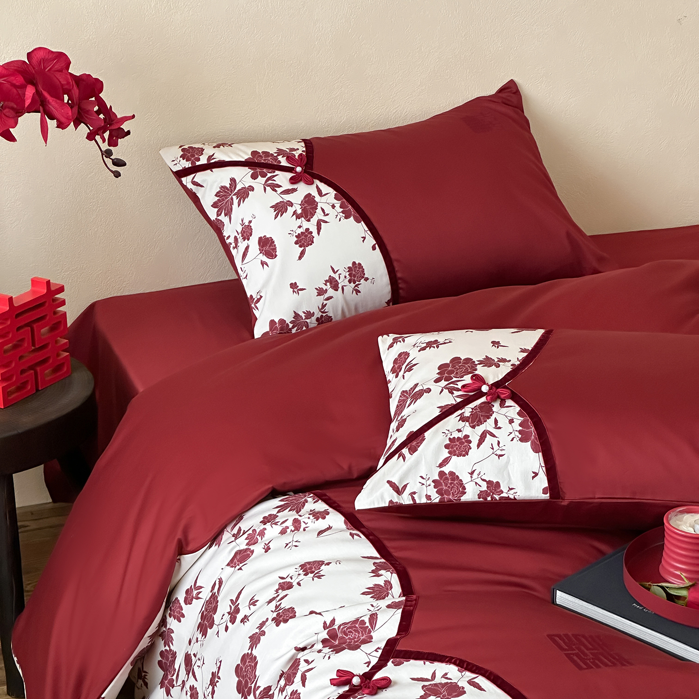 商品名称:(总)佳汐蓝家纺 2025秋冬新品100S澳棉数码印花+盘扣四件套--禧悦
