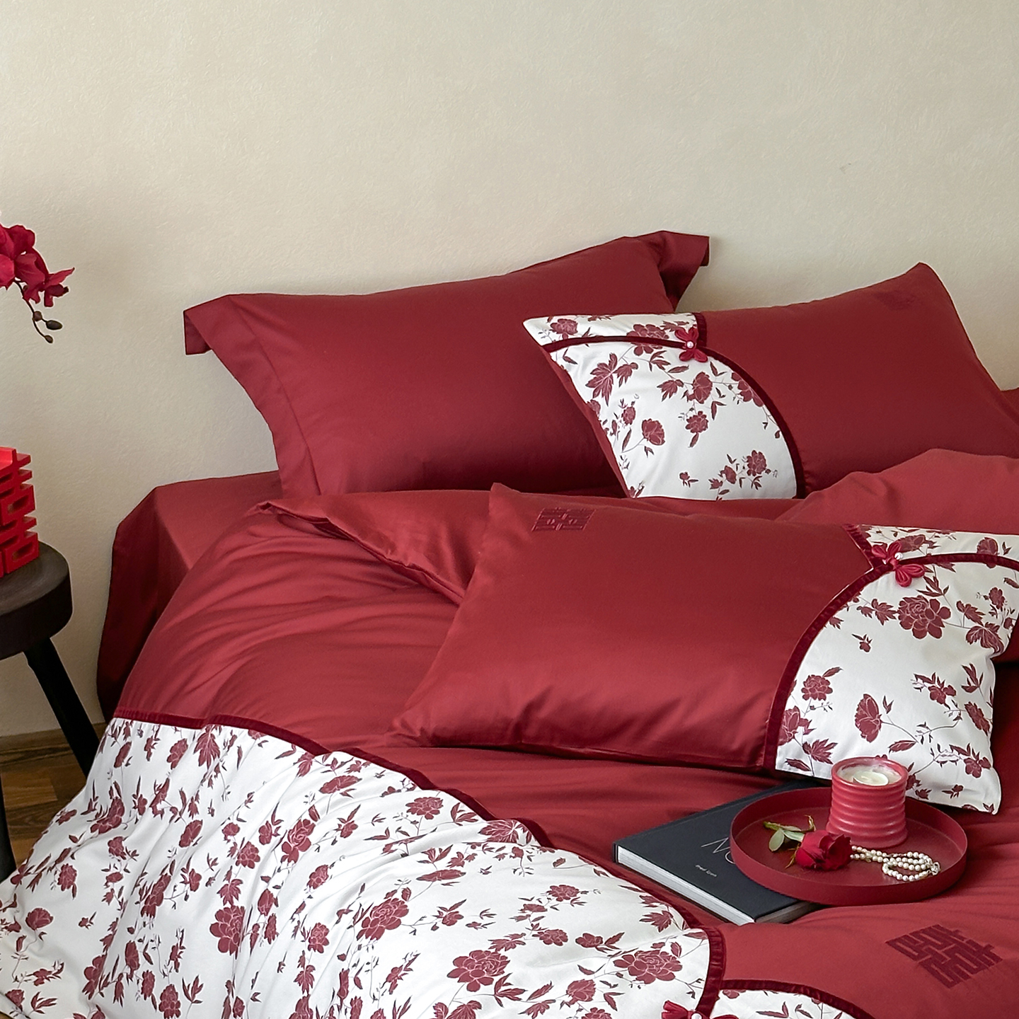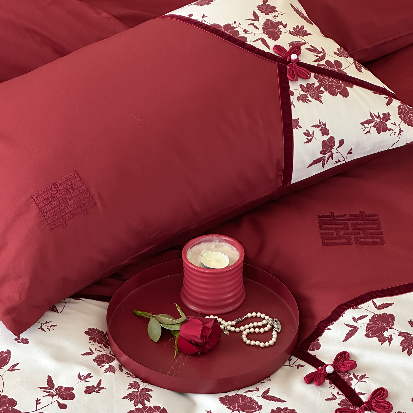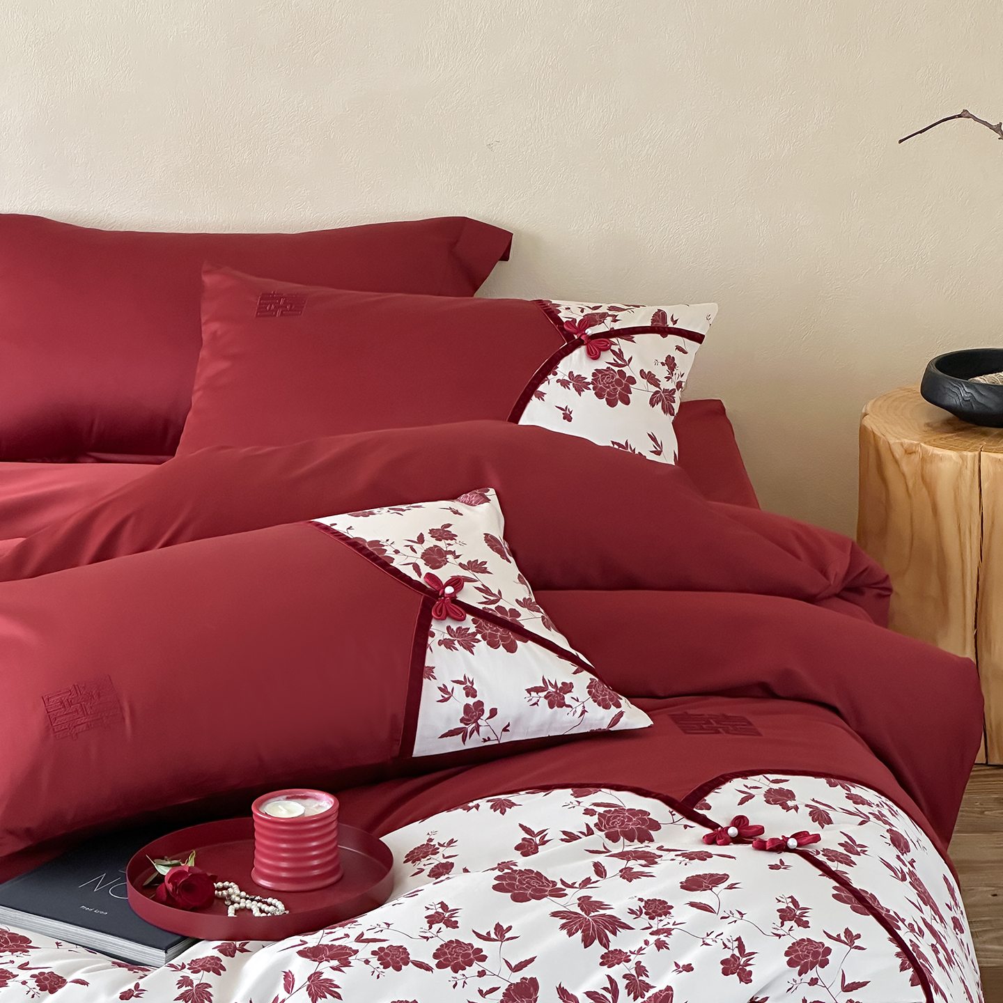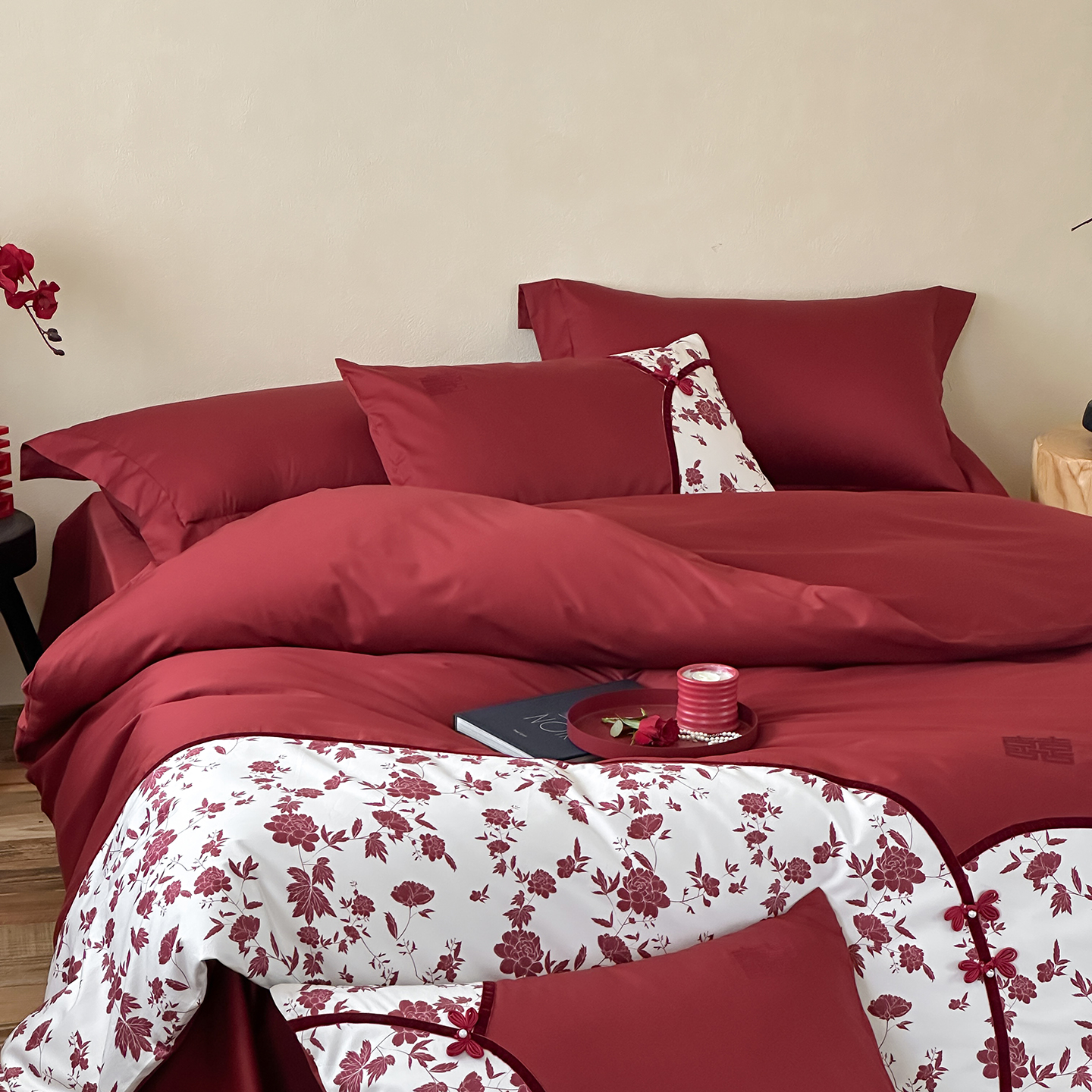 商品名称:(总)佳汐蓝家纺 2025秋冬新品100S澳棉数码印花+盘扣四件套--禧悦