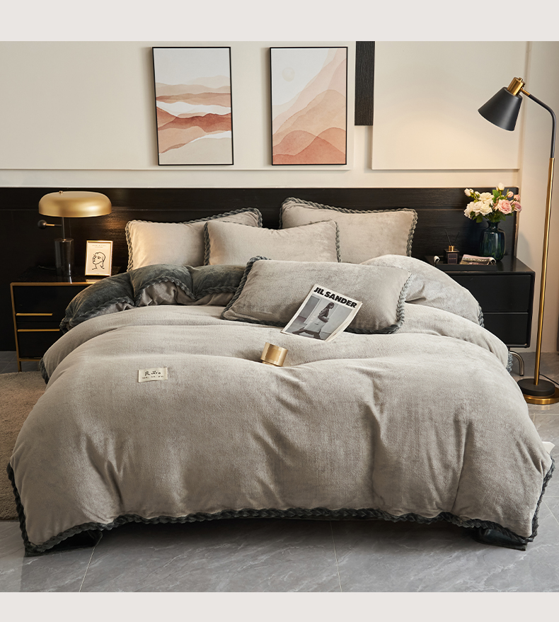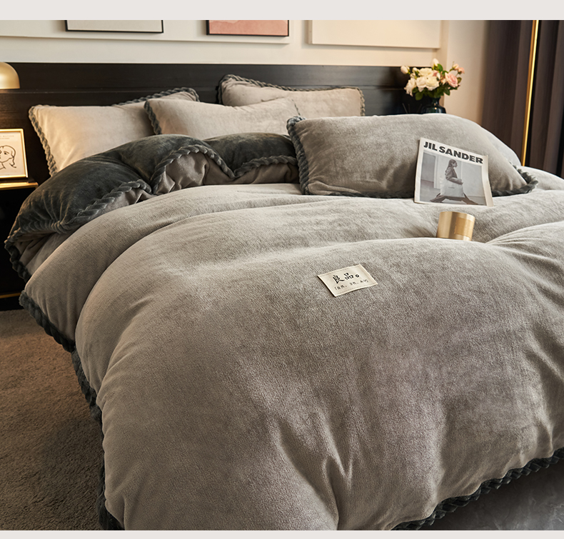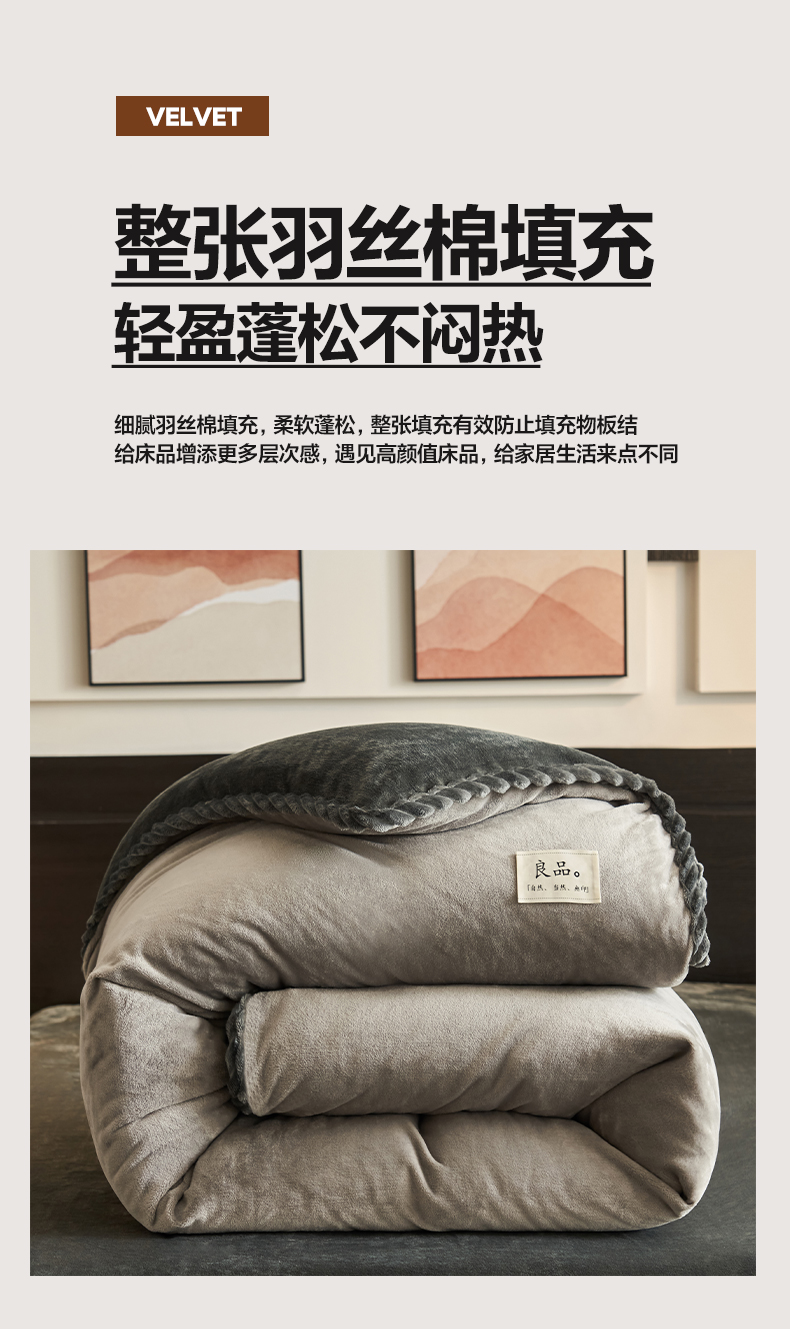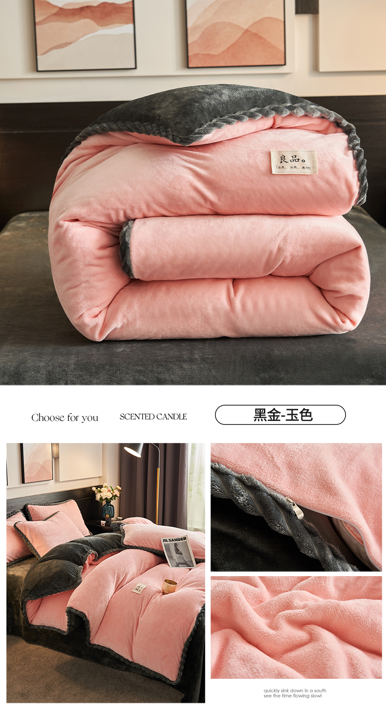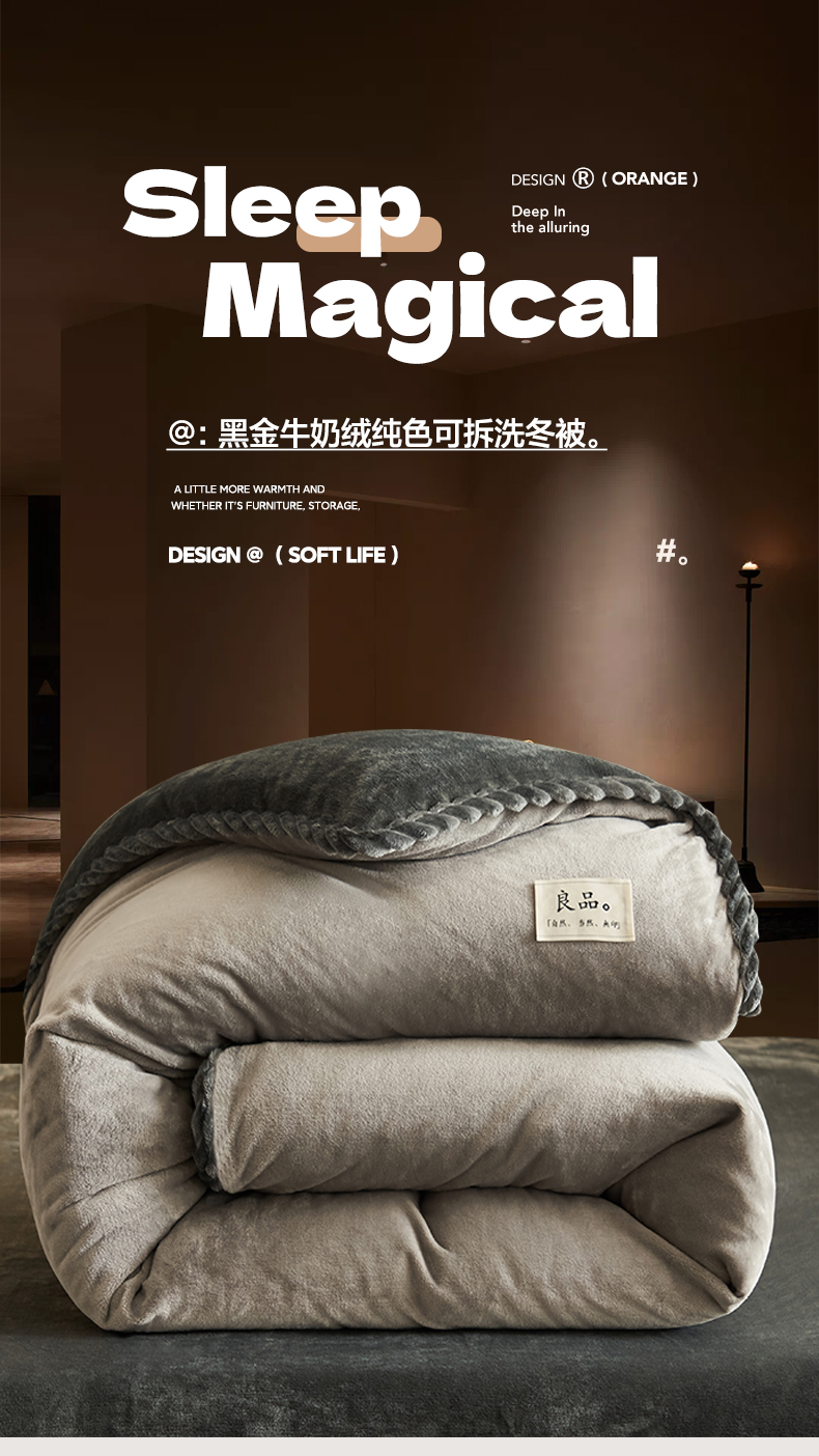 • 91家纺网 家纺一手货源 找家纺 早晨家纺 2025新款黑金牛奶绒纯色可拆洗冬被风格1 黑金-浅灰