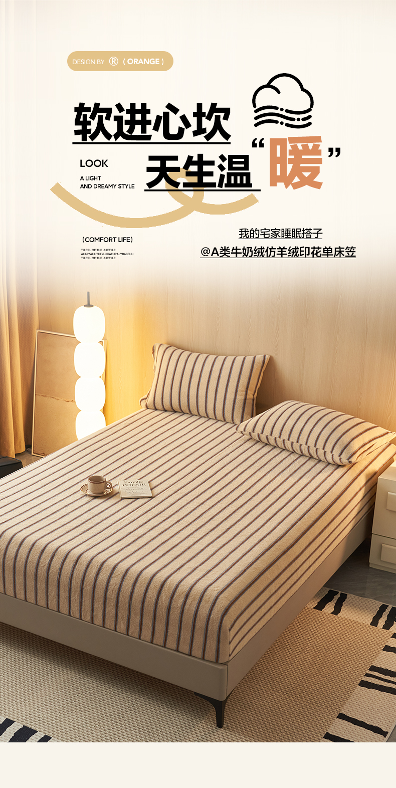 • 91家纺网 家纺一手货源 找家纺 早晨家纺 2025新款未末款仿羊绒牛奶绒床笠 未末-柔粉