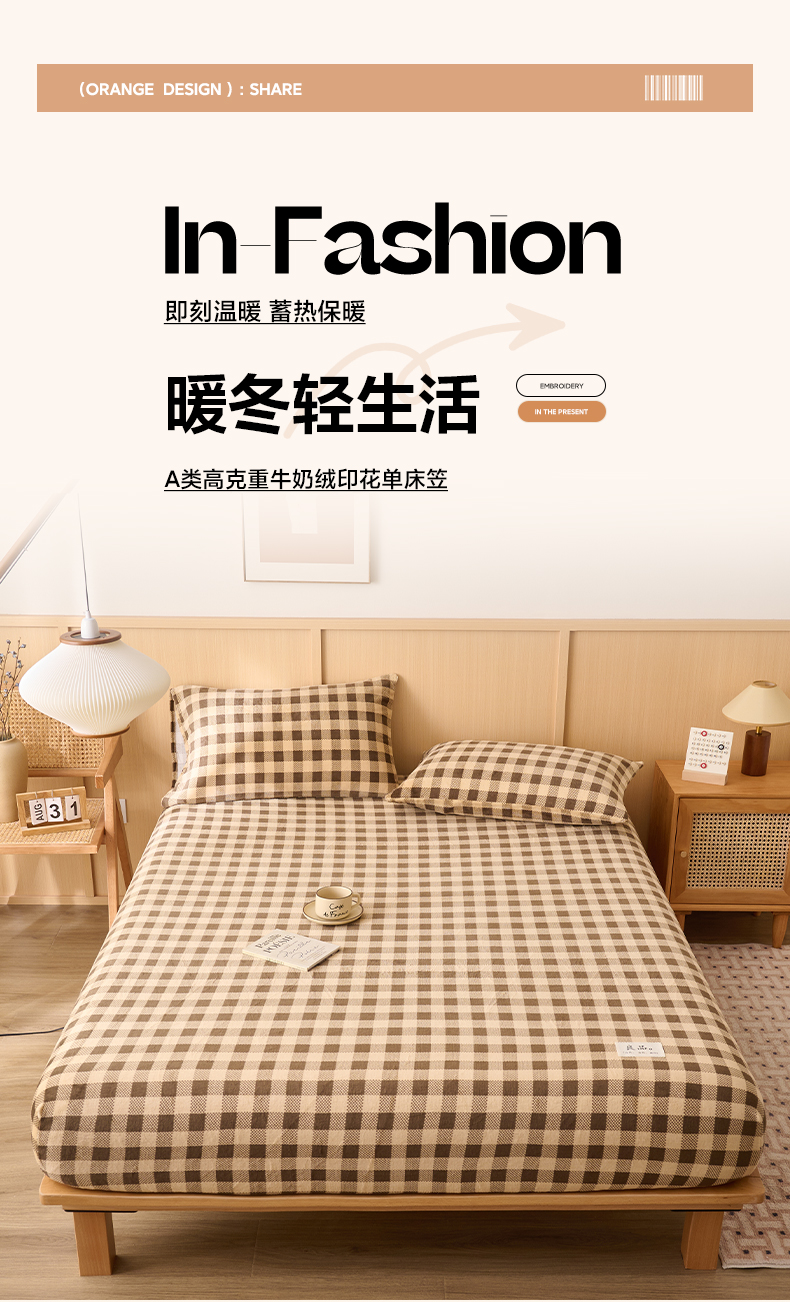 • 91家纺网 家纺一手货源 找家纺 早晨家纺 2025新款野牧款高克重牛奶绒印花单床笠 野牧-香风粉