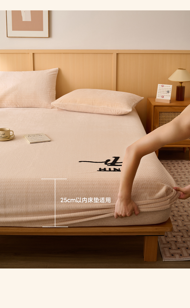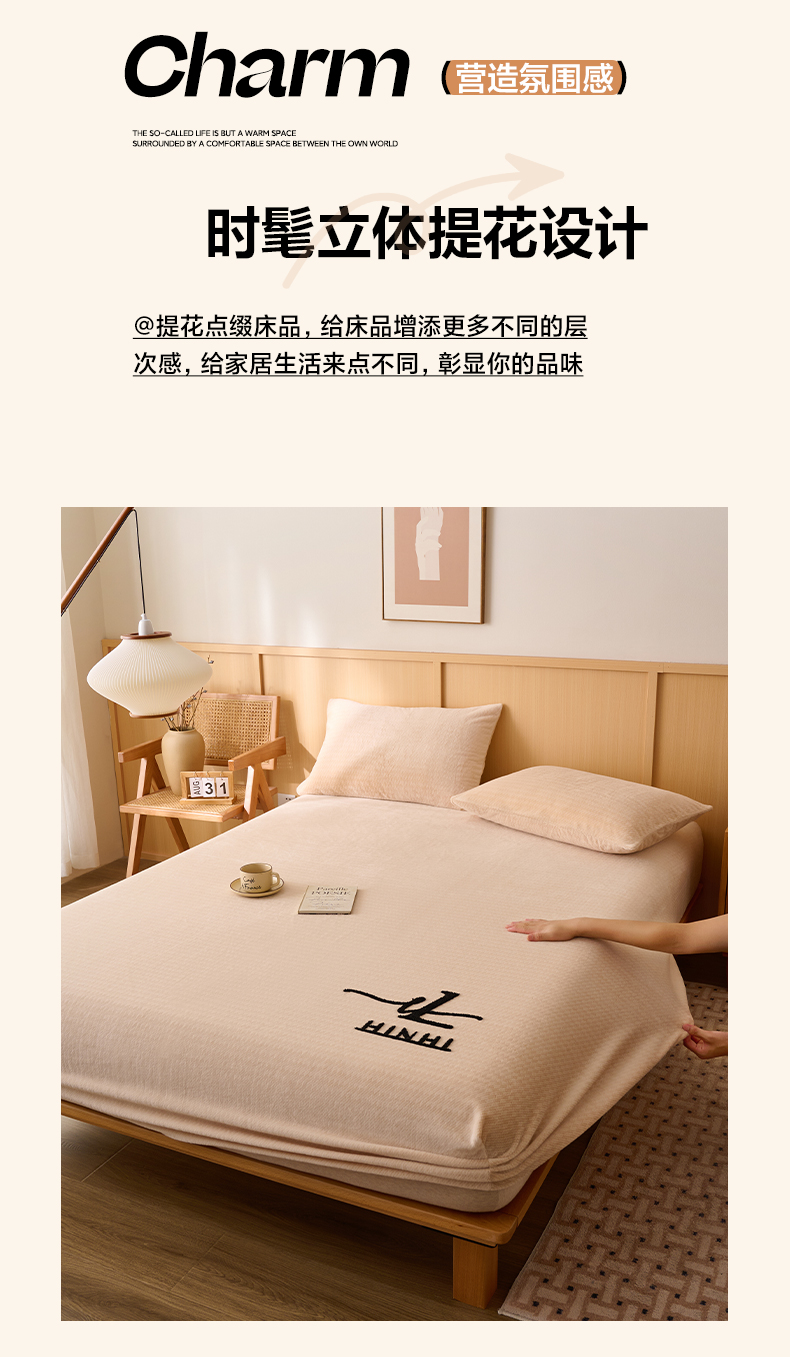 早晨家纺 2025新款流星款高克重牛奶绒阳离子提花兔毛单床笠 流星-奶白