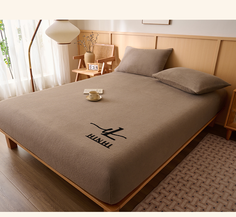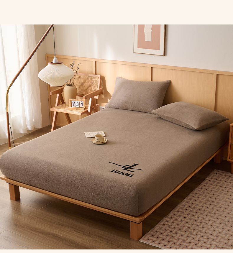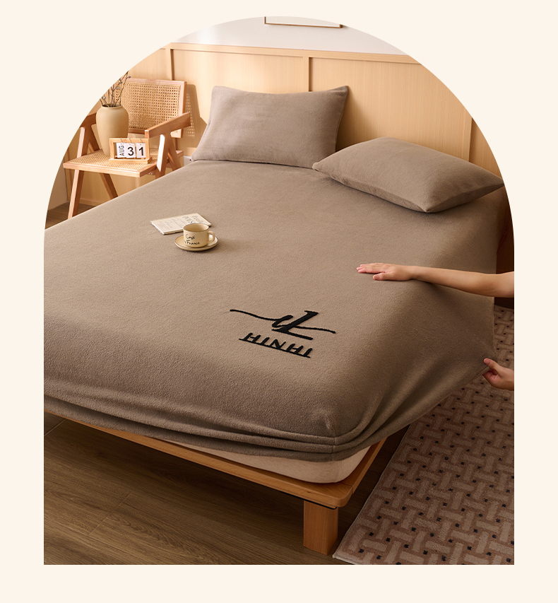 • 91家纺网 家纺一手货源 找家纺 早晨家纺 2025新款华泰款高克重牛奶绒仿羊绒毛巾绣单床笠 华泰-奶茶咖
