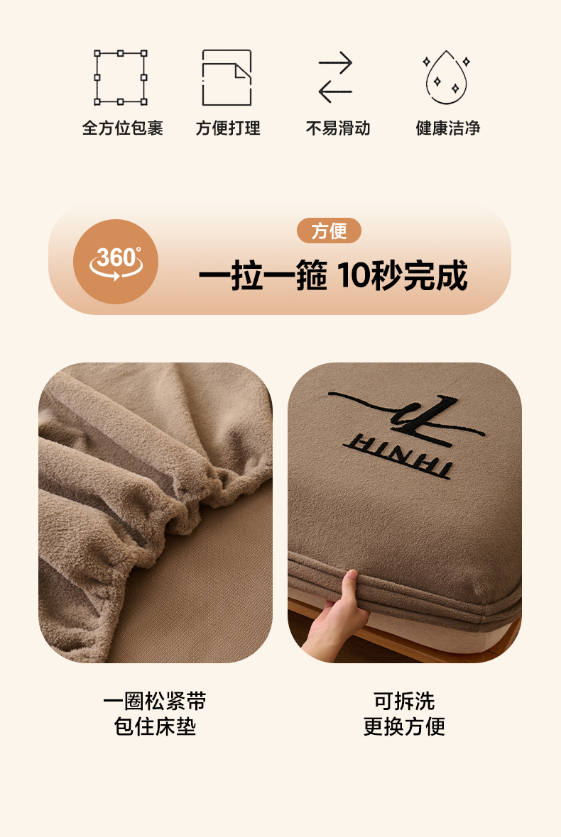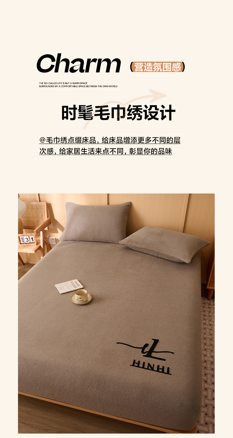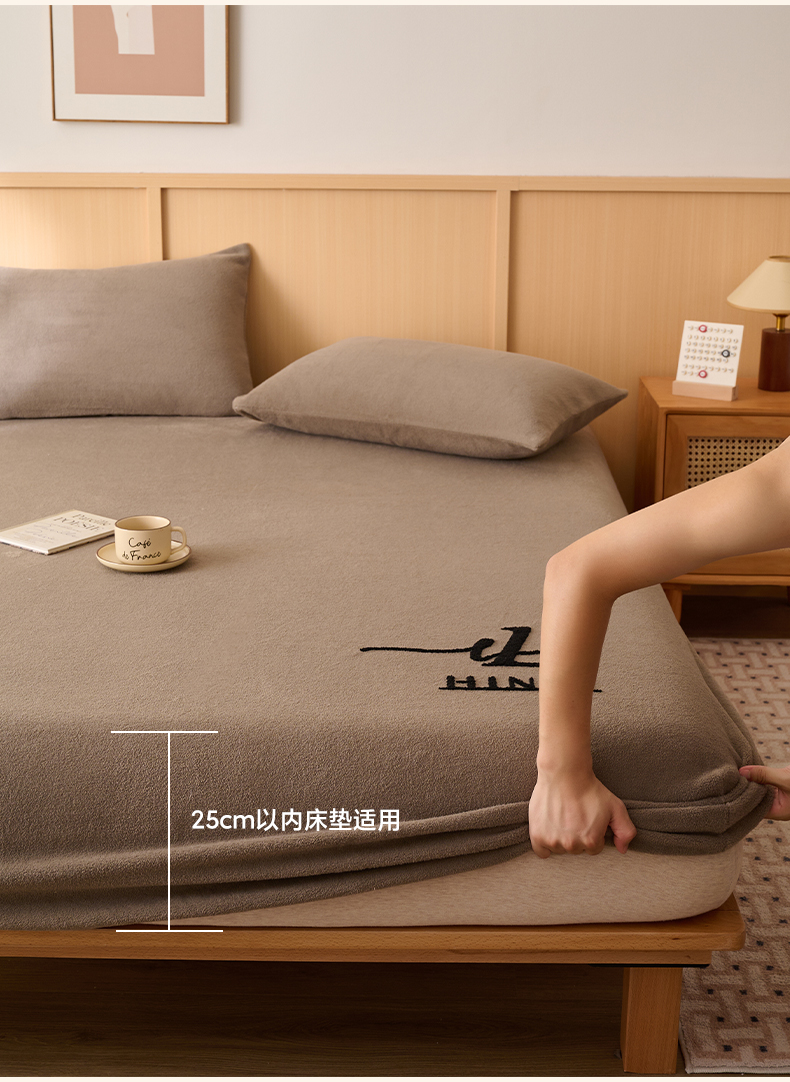 早晨家纺 2025新款华泰款高克重牛奶绒仿羊绒毛巾绣单床笠 华泰-奶茶咖