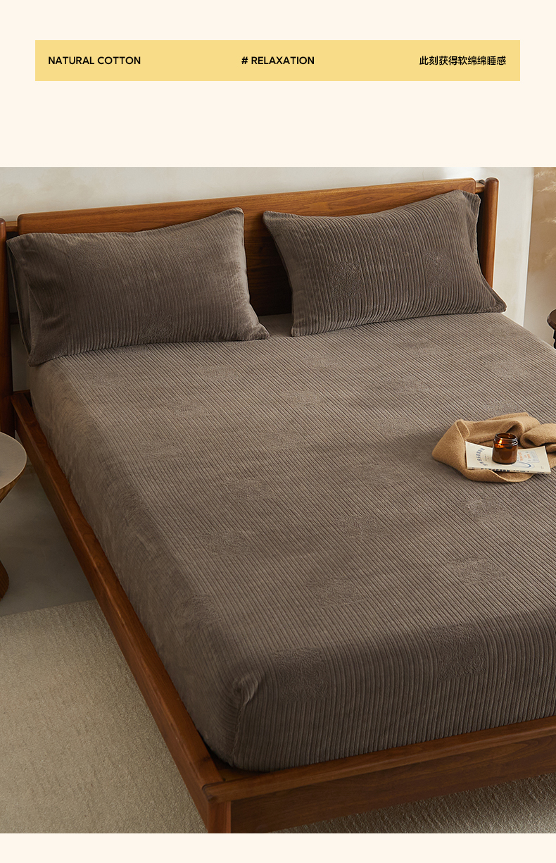 • 91家纺网 家纺一手货源 找家纺 早晨家纺 2025新款红金龙纯色烂花牛奶绒床笠 恬憩-豆沙