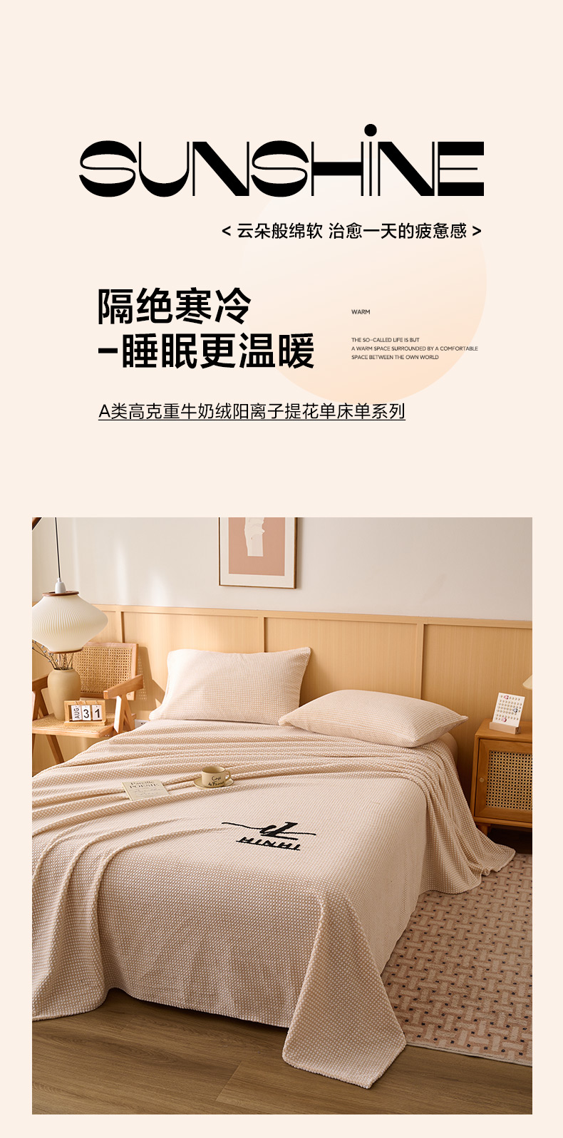 早晨家纺 2025新款深蓝款高克重牛奶绒阳离子提花单床单系列 深蓝-黄