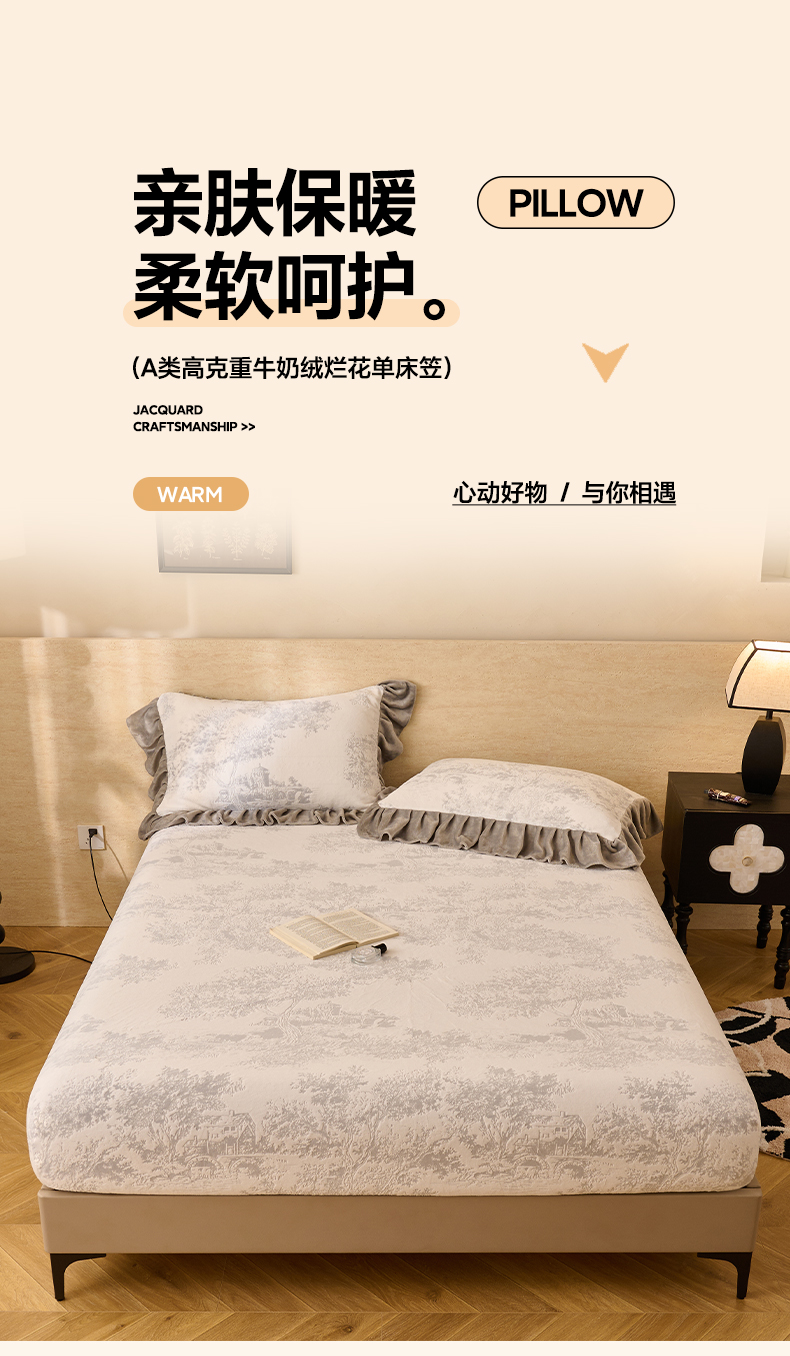 (总)早晨家纺 2025新款高克重牛奶绒烂花单床笠