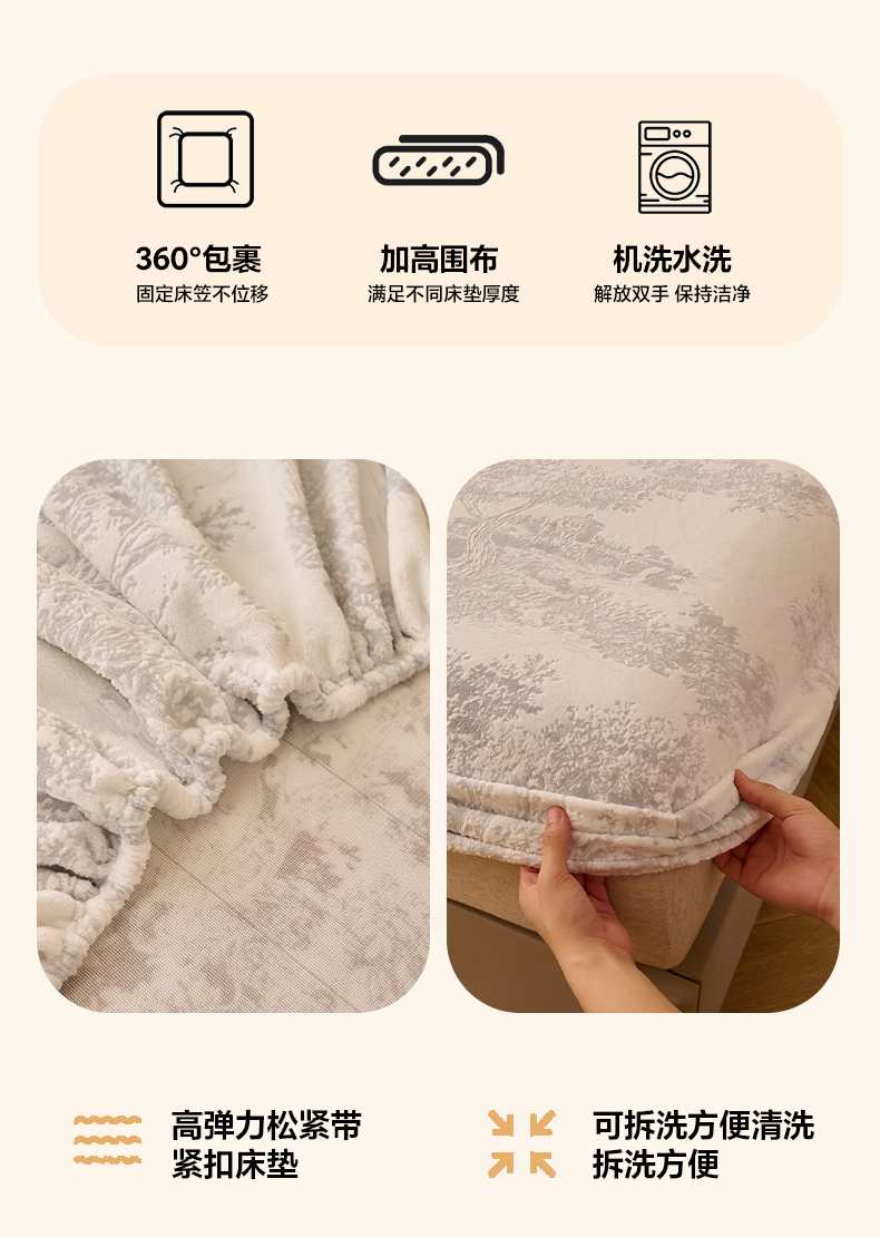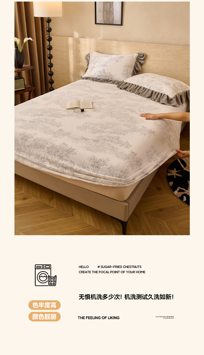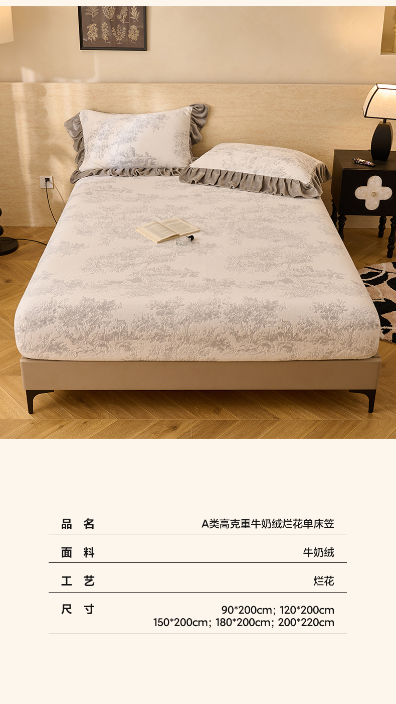 商品名称:(总)早晨家纺 2025新款高克重牛奶绒烂花单床笠