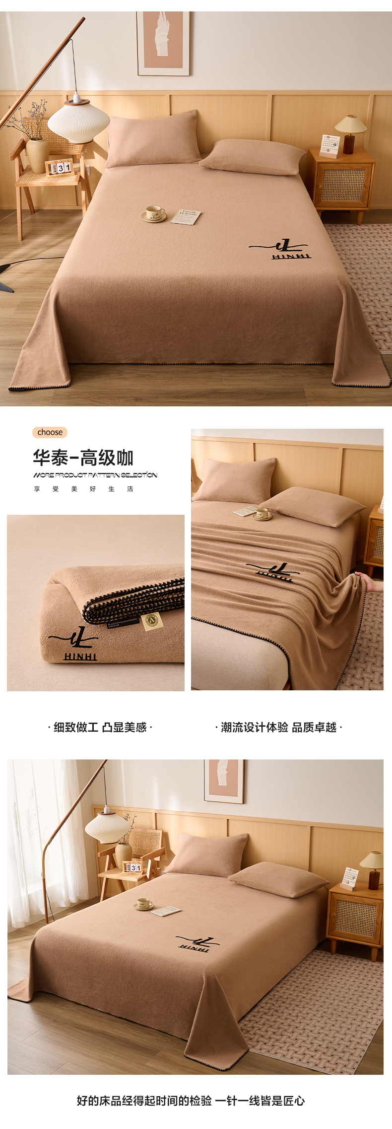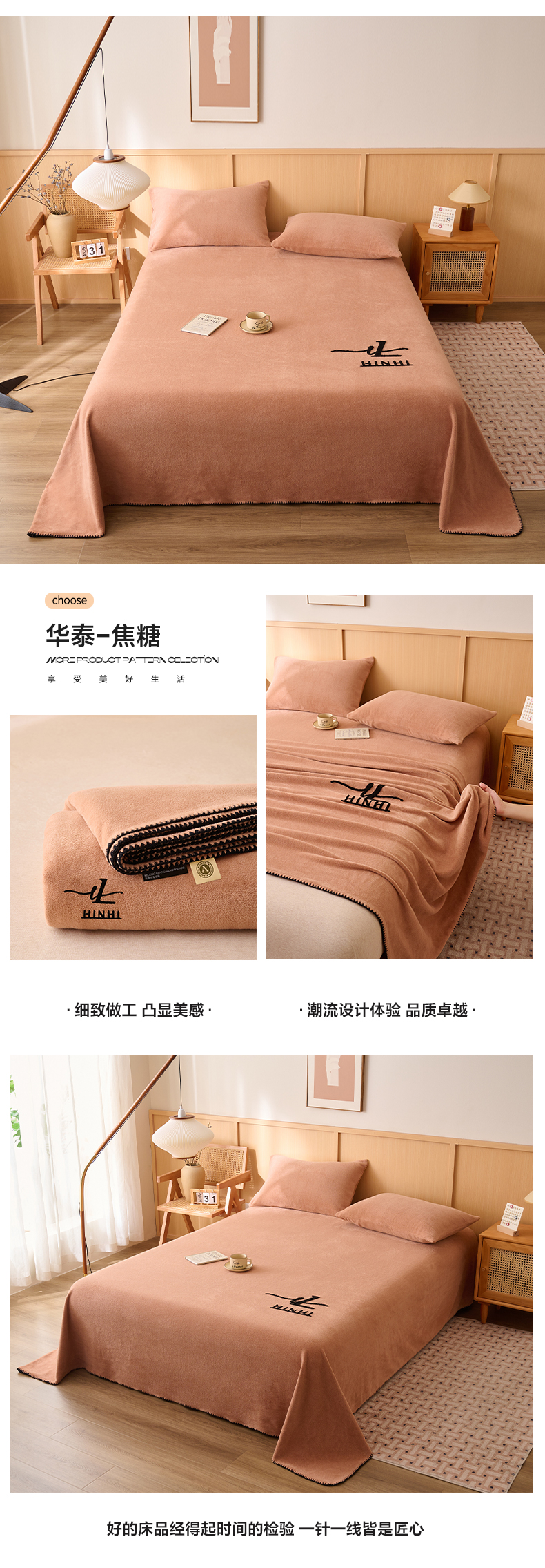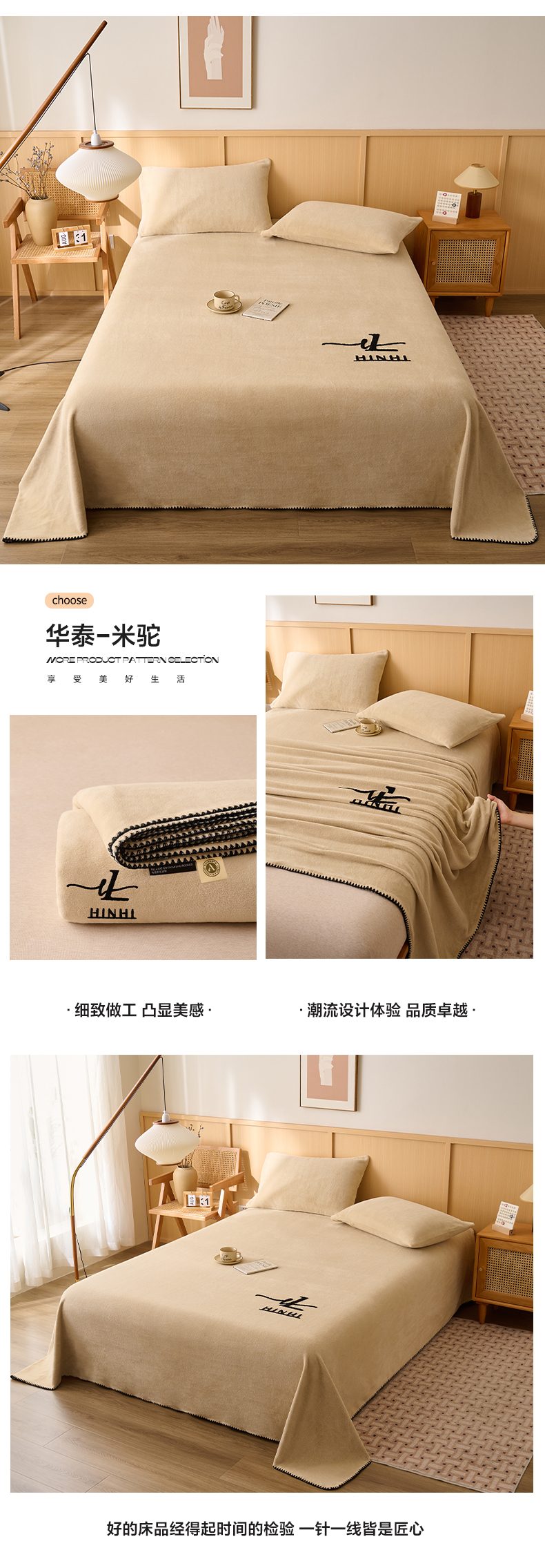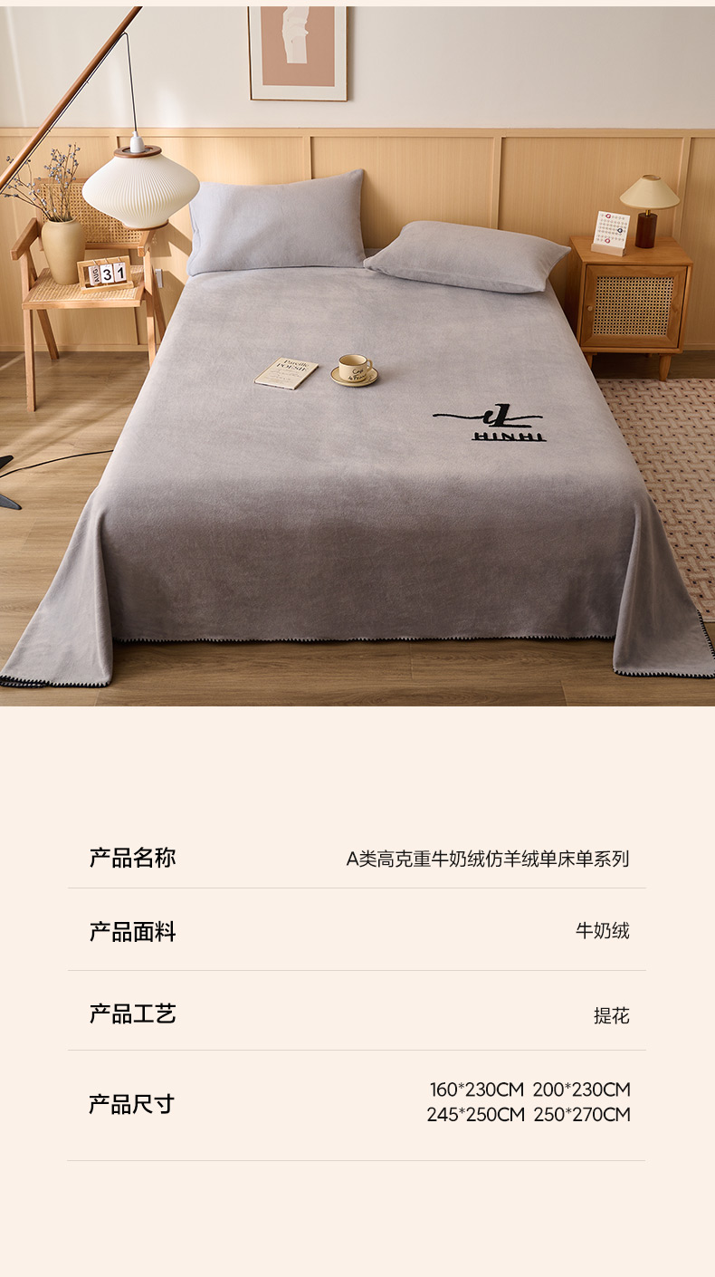 早晨家纺 2025新款华泰款高克重牛奶绒仿羊绒单床单系列 华泰-米驼