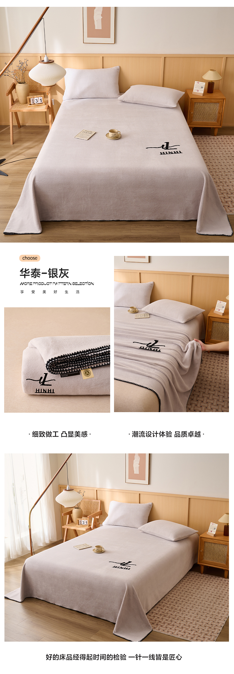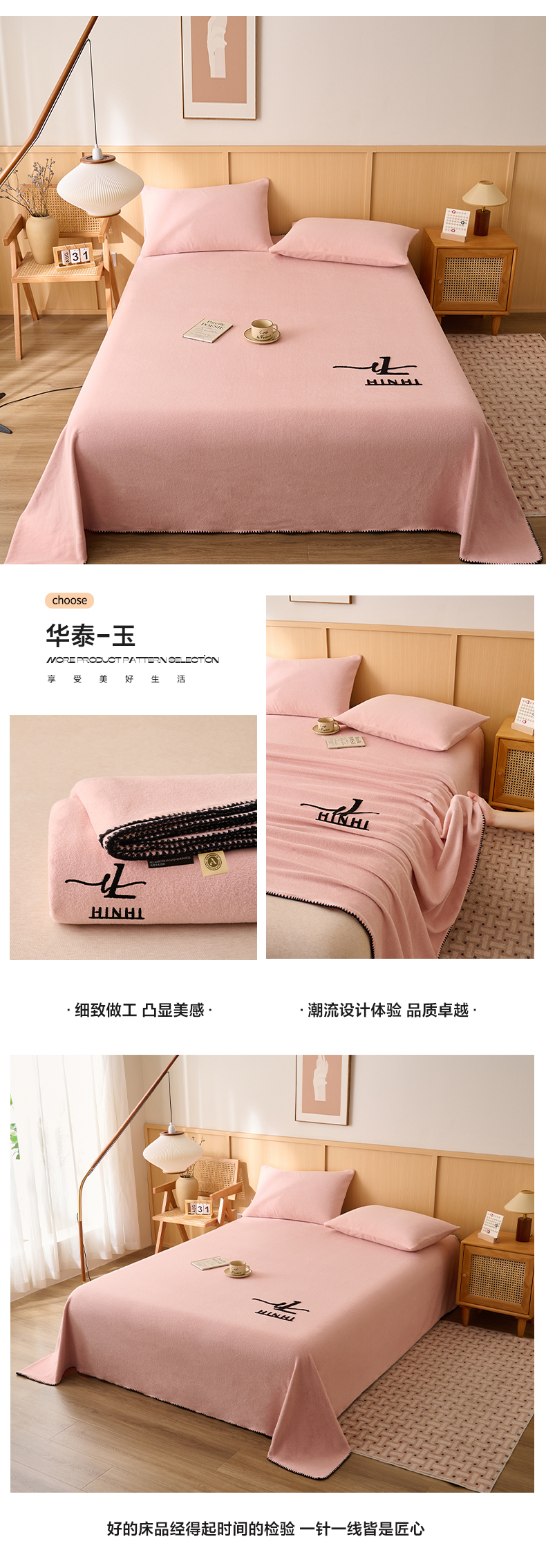 • 91家纺网 家纺一手货源 找家纺 早晨家纺 2025新款华泰款高克重牛奶绒仿羊绒单床单系列 华泰-米驼