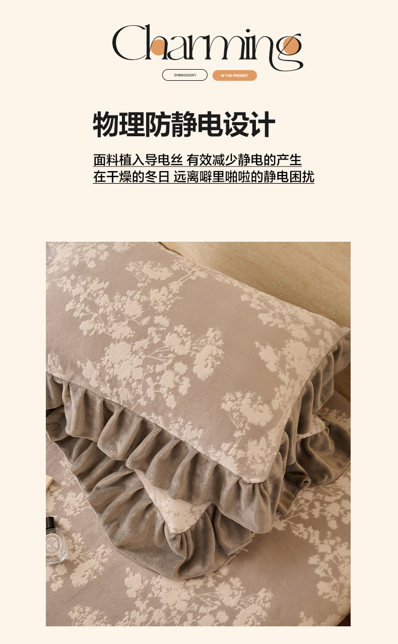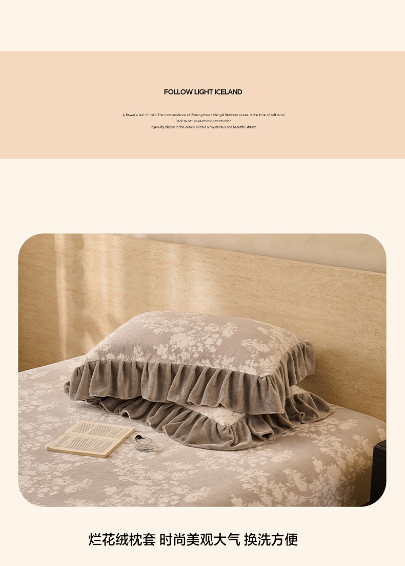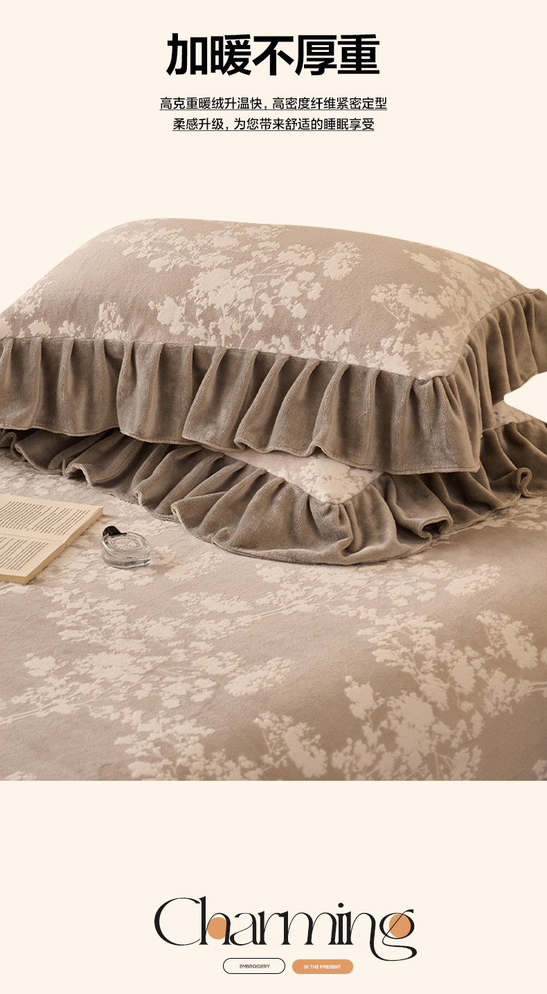 商品名称:早晨家纺 2025新款高克重牛奶绒烂花枕套 花眠灰
