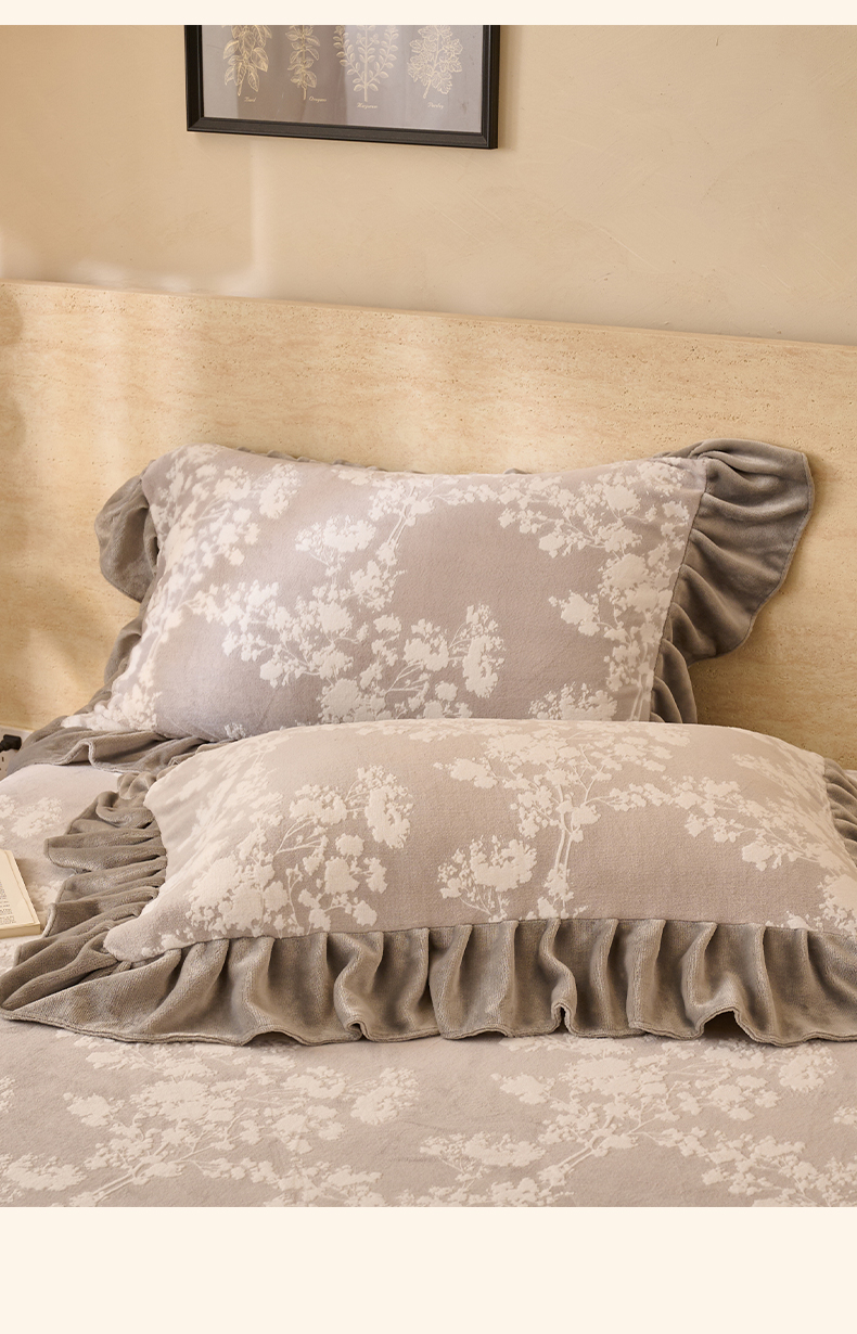 早晨家纺 2025新款高克重牛奶绒烂花枕套 花眠灰