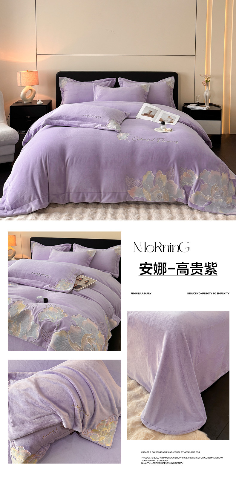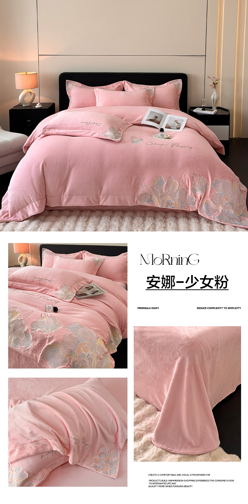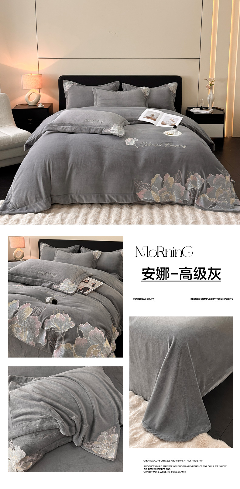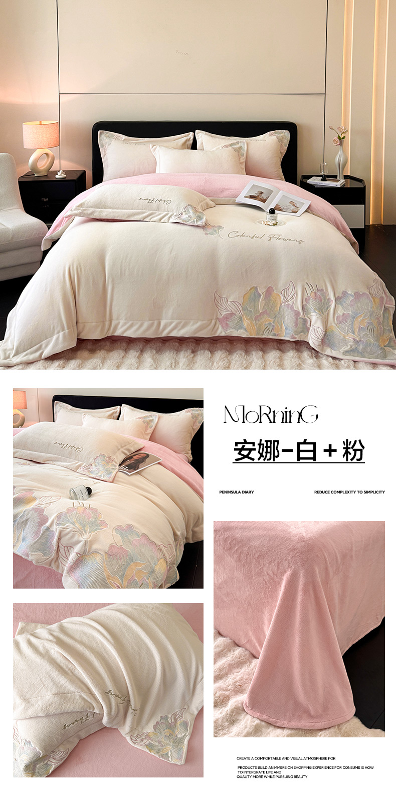 (总)2025新款牛奶绒刺绣工艺高克重四件套-安娜系列
