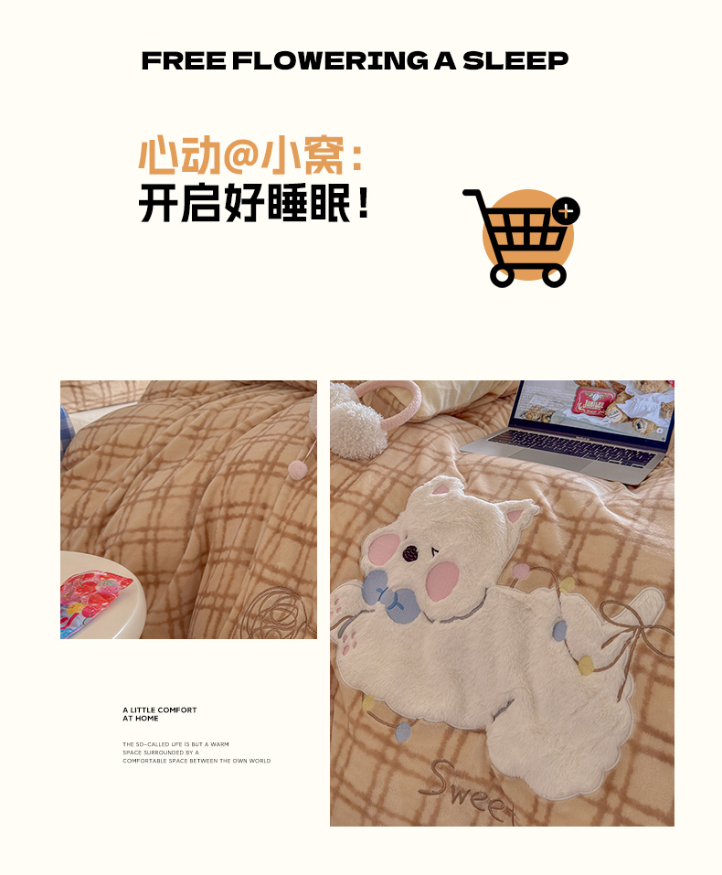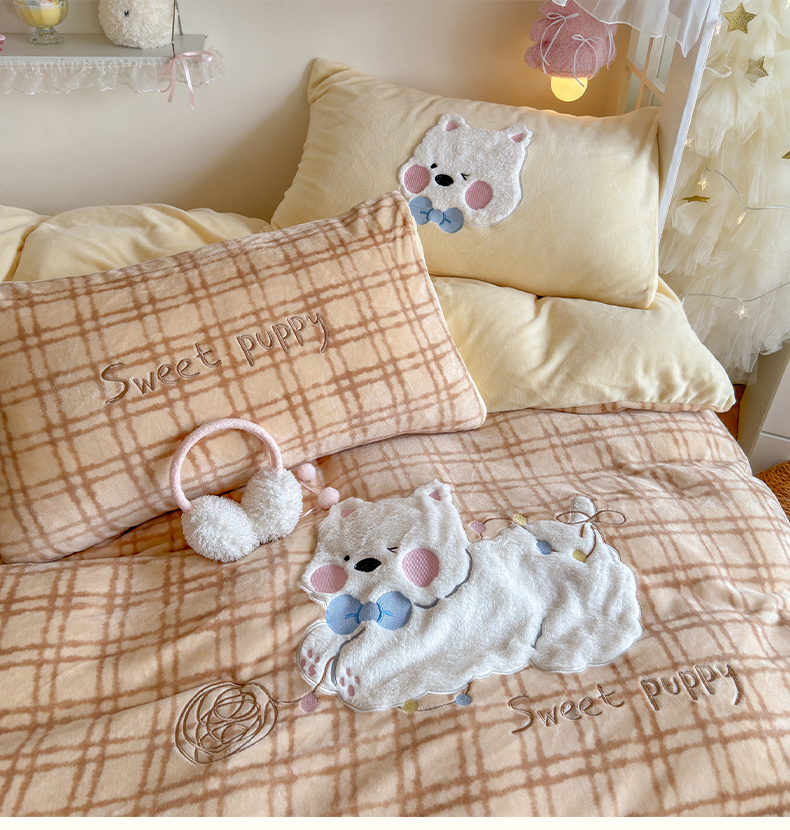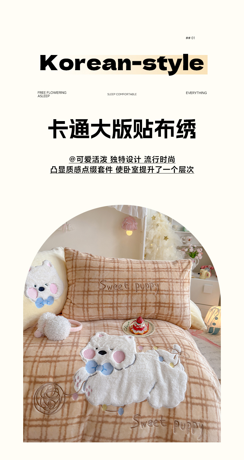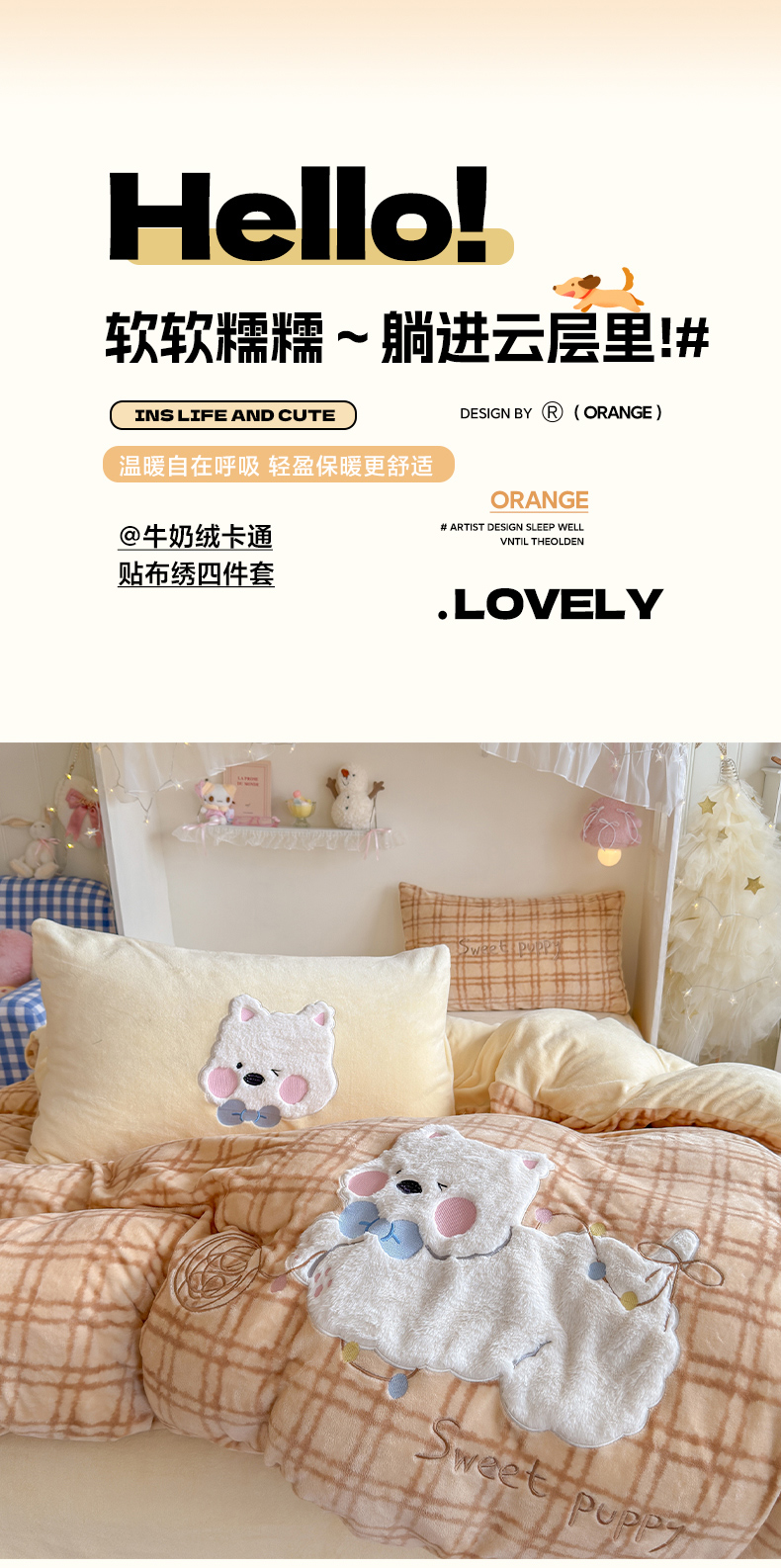 当前位置: 91家纺网 > 商品网购 > 床品套件 > 四件套 > 牛奶绒四件套 > 罗亿家纺 2025新款A类兔毛贴布绣刺绣牛奶绒四件套-小红书推荐(提供买家秀) 毛线球西高地