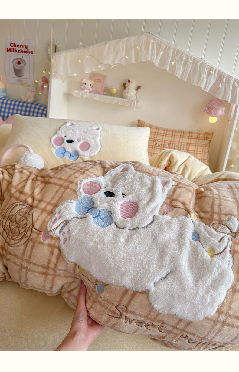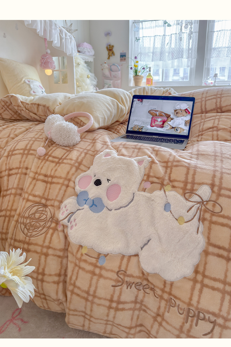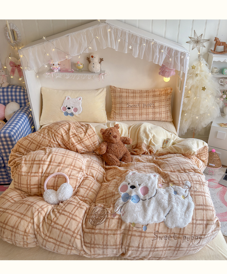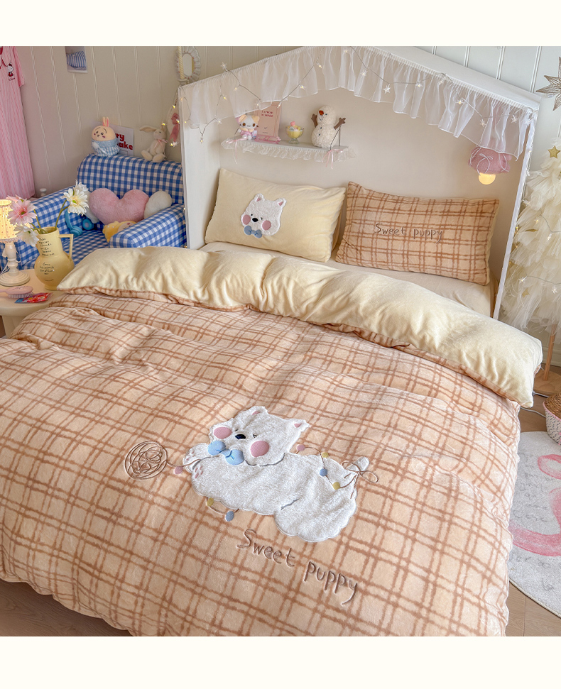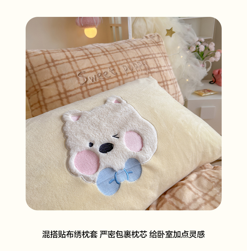 当前位置: 91家纺网 > 商品网购 > 床品套件 > 四件套 > 牛奶绒四件套 > 罗亿家纺 2025新款A类兔毛贴布绣刺绣牛奶绒四件套-小红书推荐(提供买家秀) 毛线球西高地
