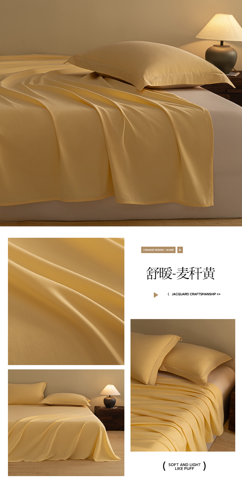 商品名称:秀色家纺 2025冬季微绒感精梳全棉加厚碳素轻磨毛纯棉床单三件套被单单件A类 舒暖-麦秆黄