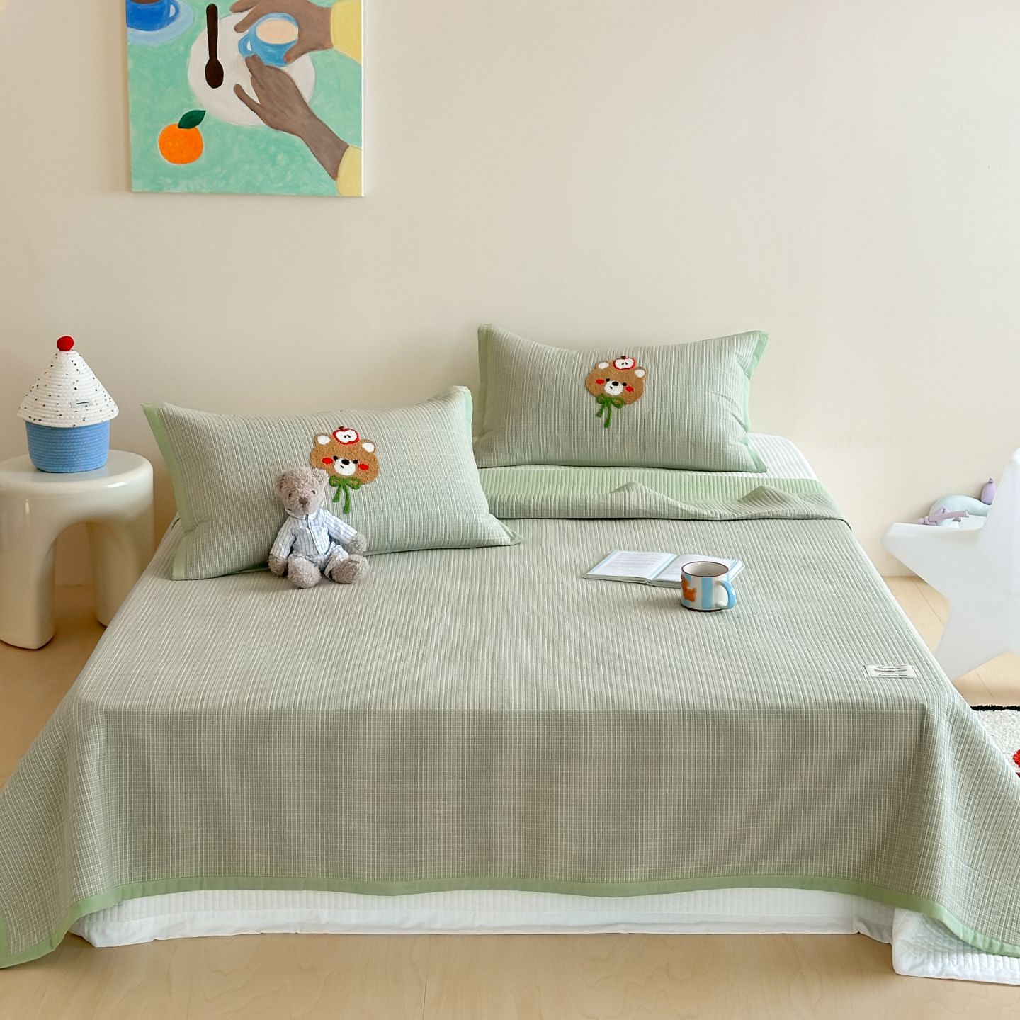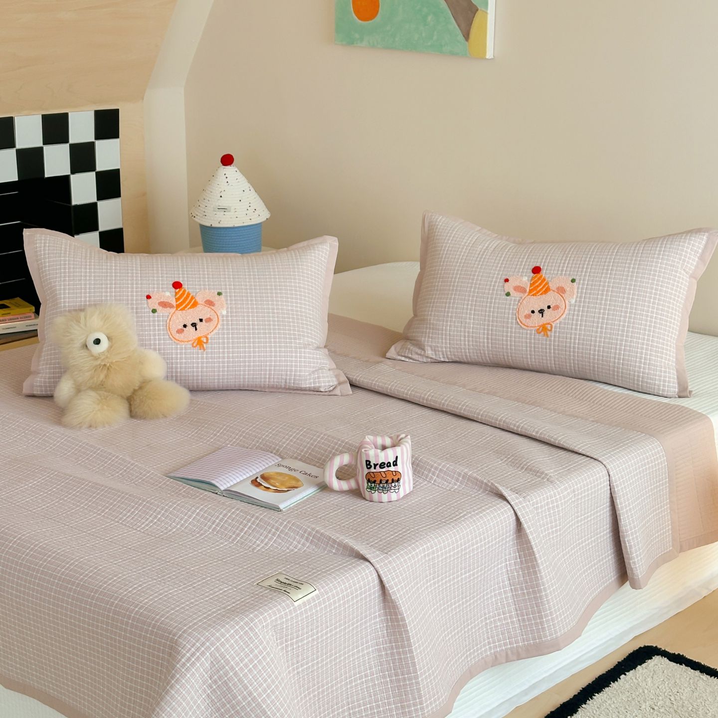 觅糖家纺 2025新款色织水洗棉毛巾绣床盖四件套 礼物兔